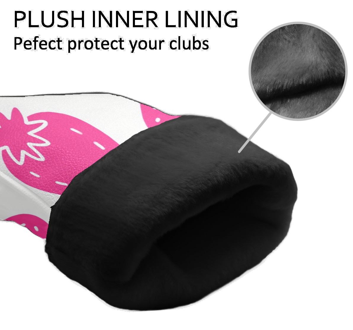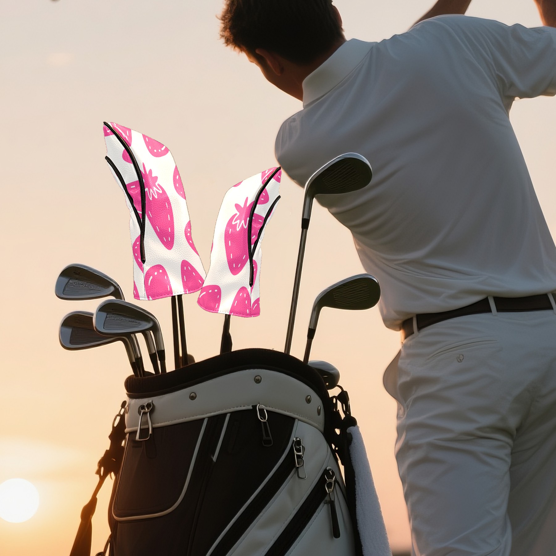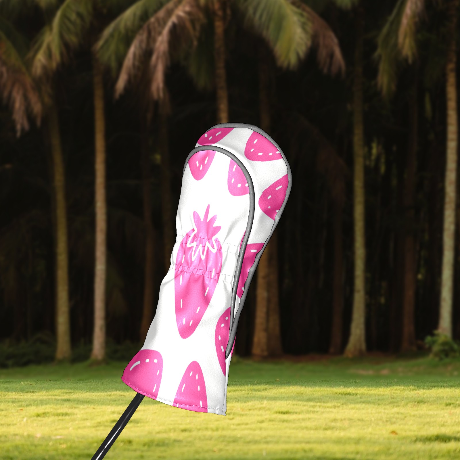 Golf Club Head Cover Waterproof Leather Golf Club Cover Driver Headcover for Women Men Strawberry