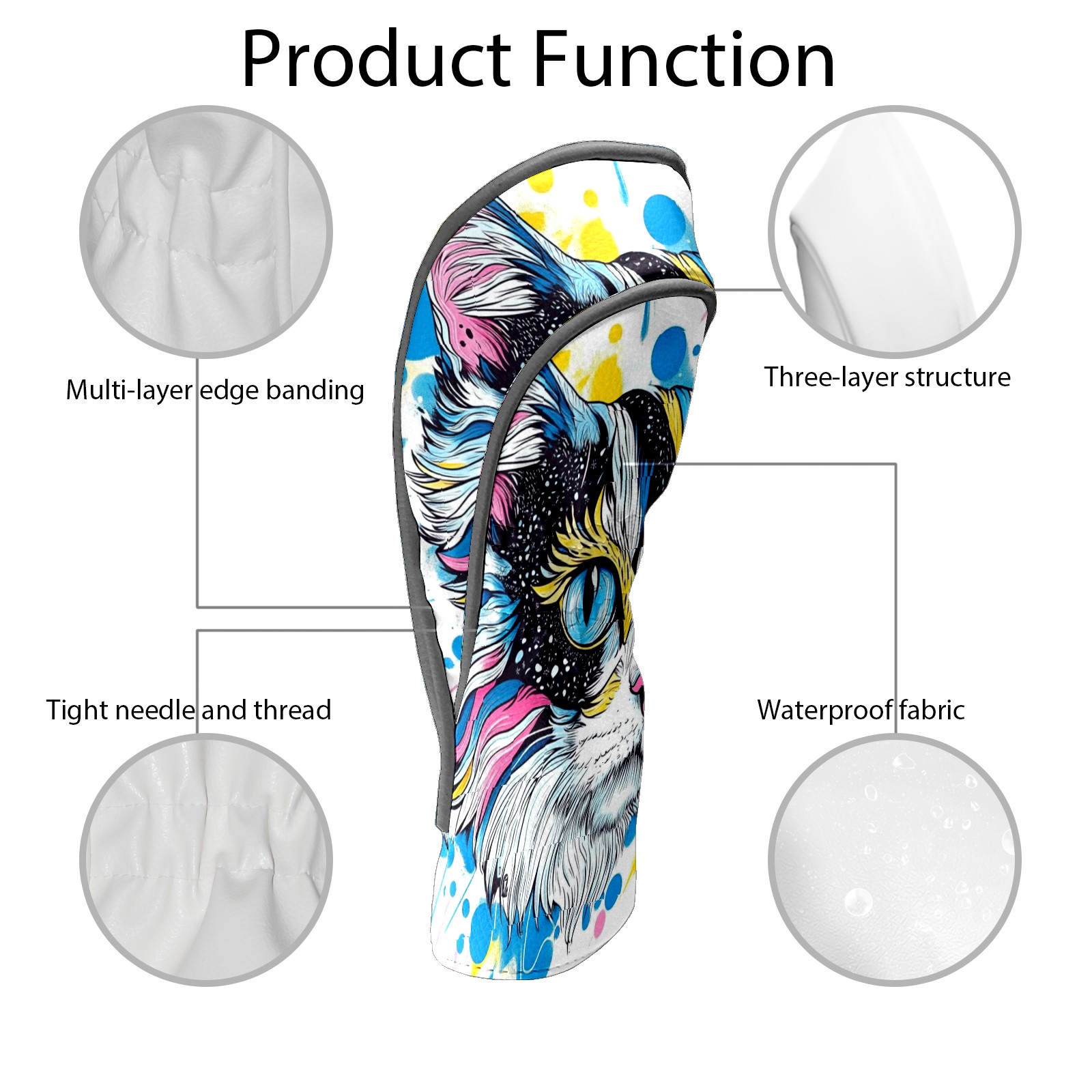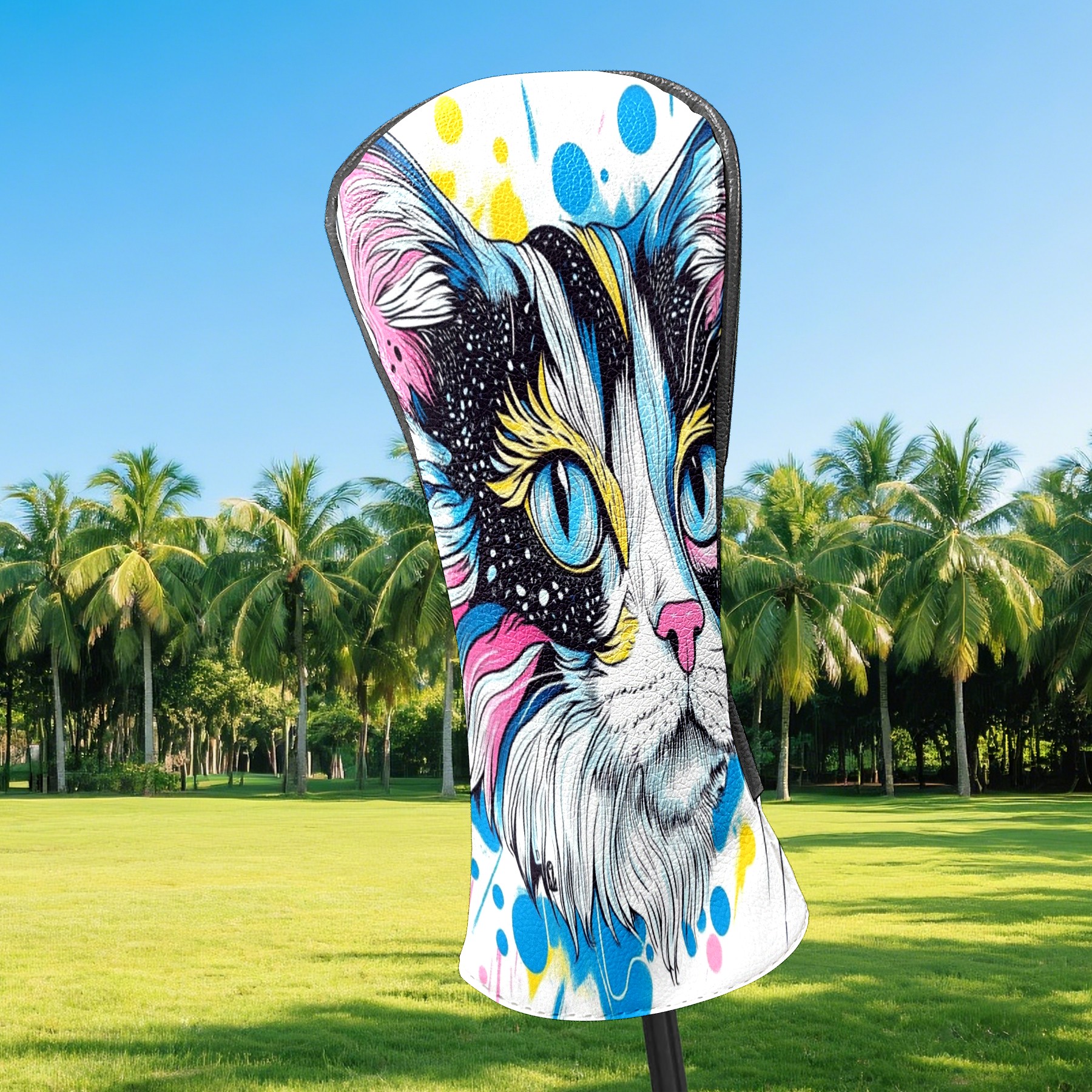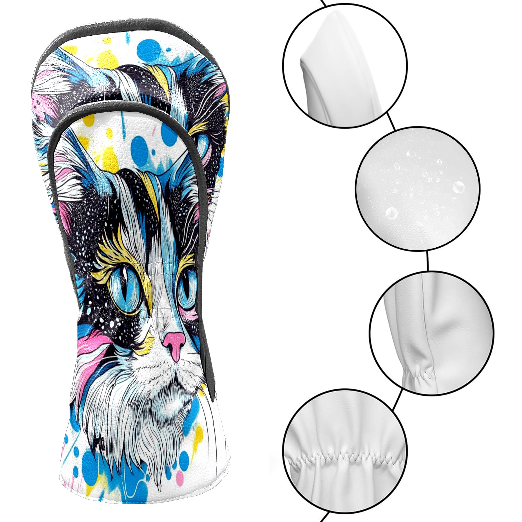 Golf Club Head Cover Waterproof Leather Golf Club Cover Driver Headcover for Women Men Colorful Cat2