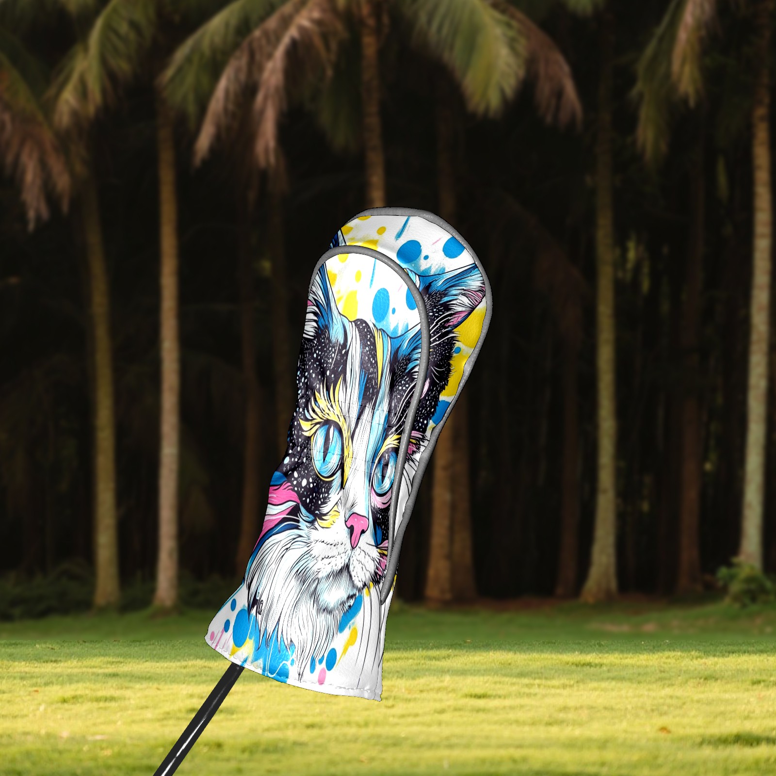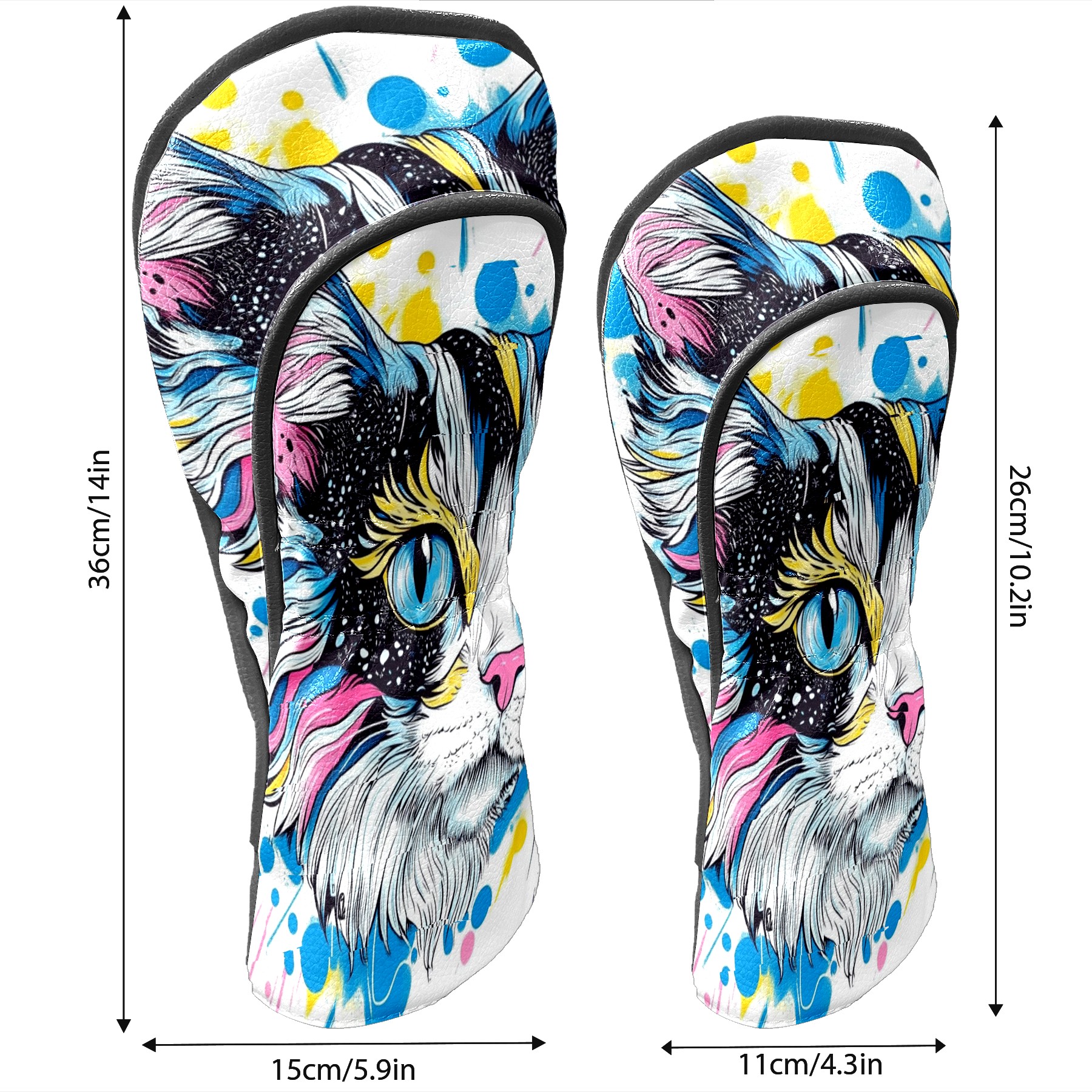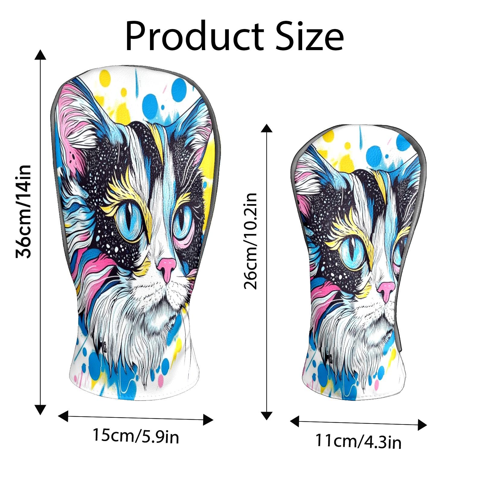 Golf Club Head Cover Waterproof Leather Golf Club Cover Driver Headcover for Women Men Colorful Cat2