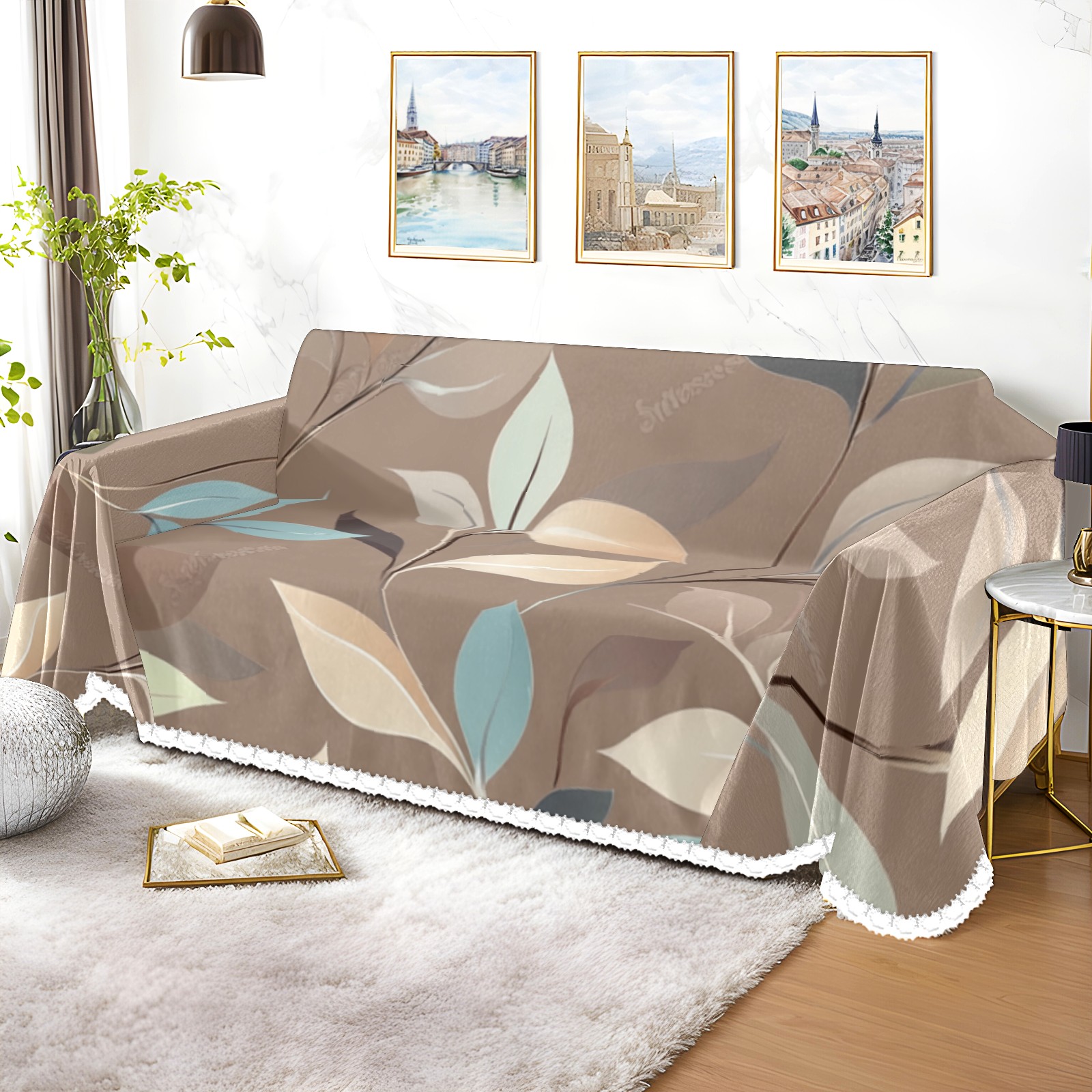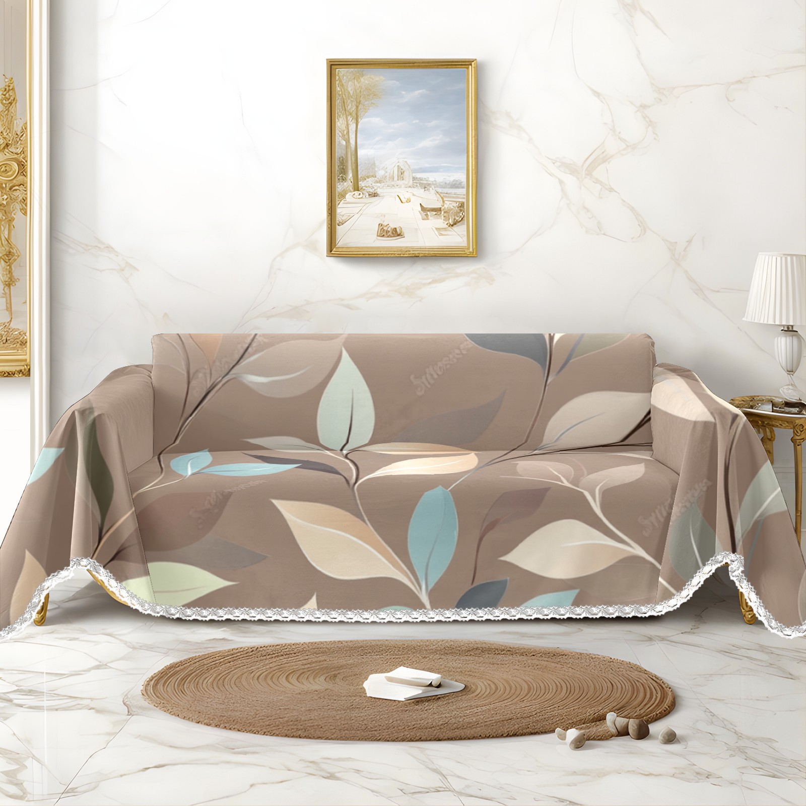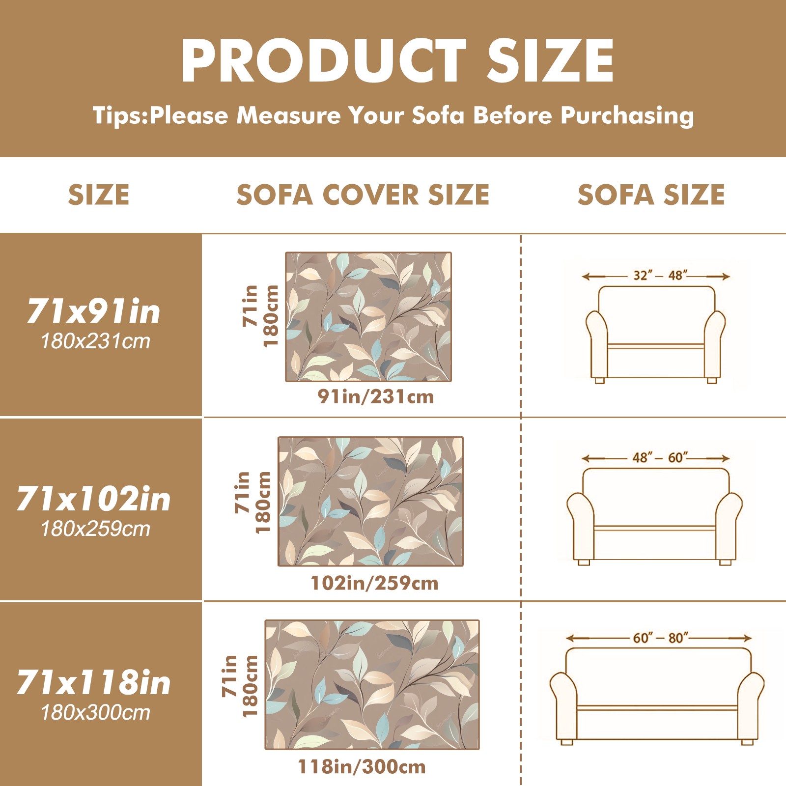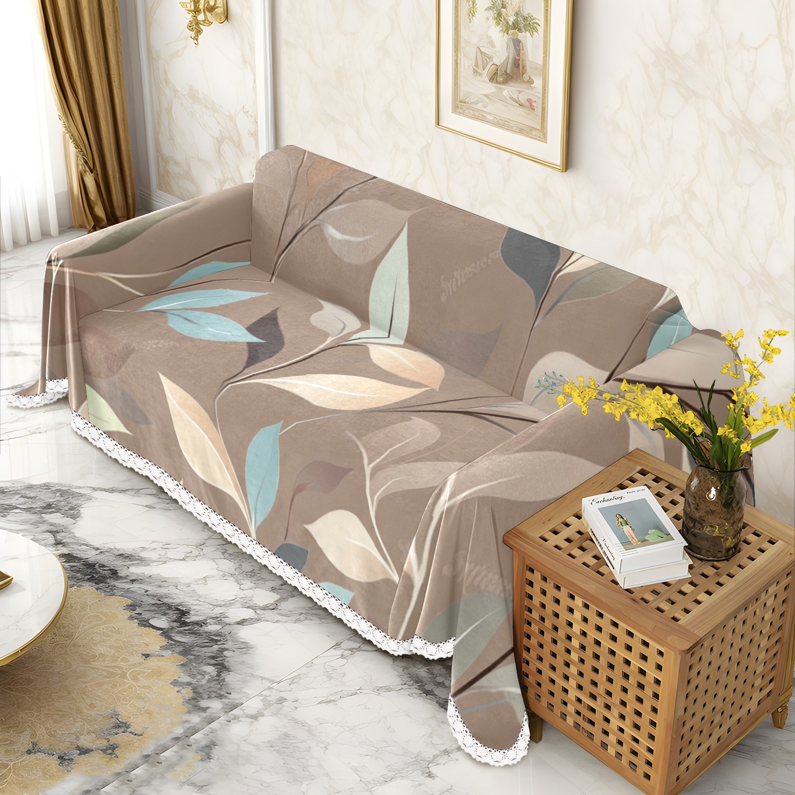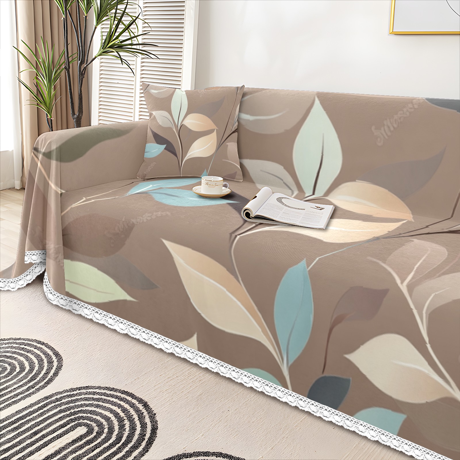 Leaves Sofa Cover-Soft Poly-Cotton Blend, Machine Washable Couch Protector for Home Decor - 71x91 in Couch Covers