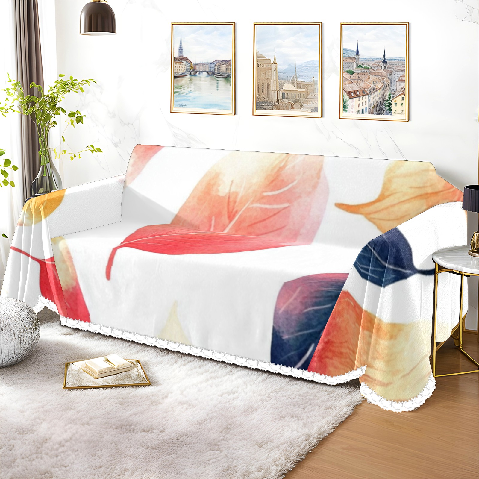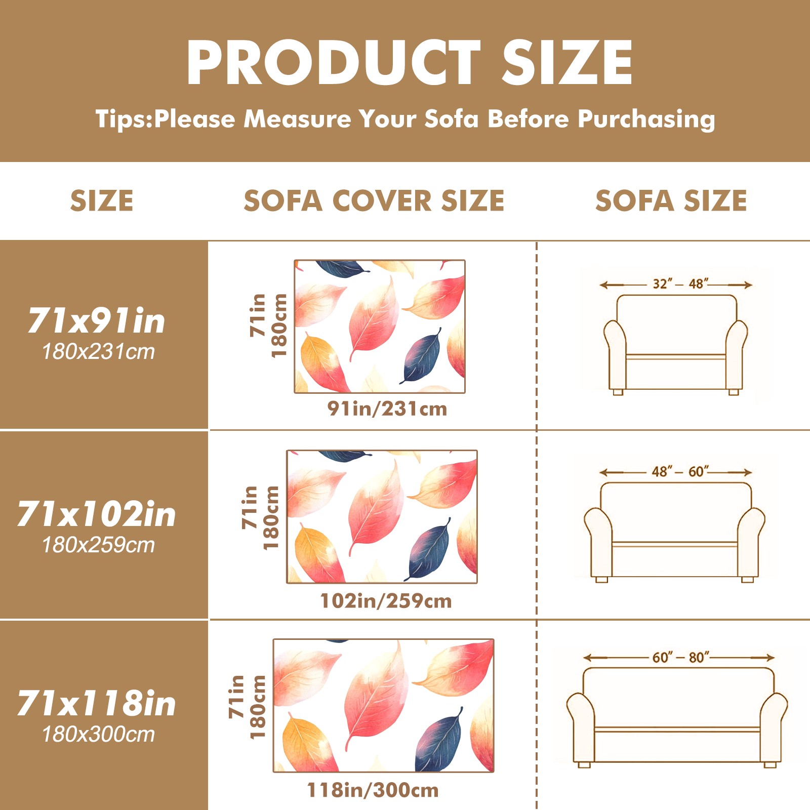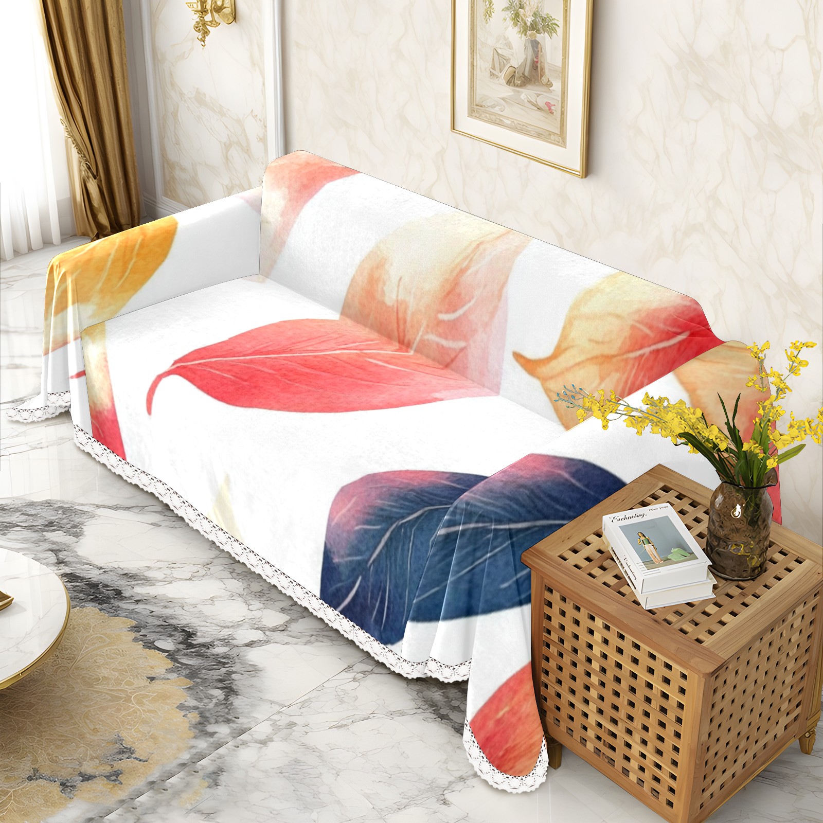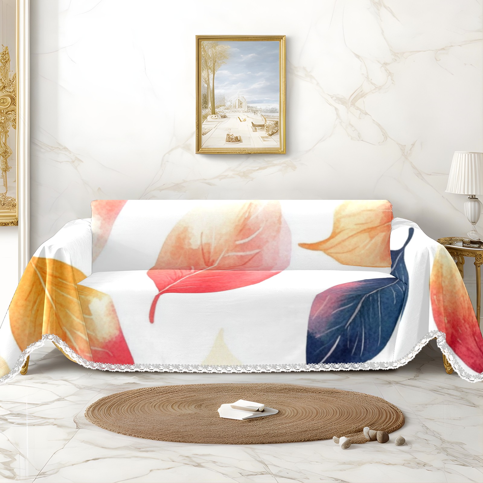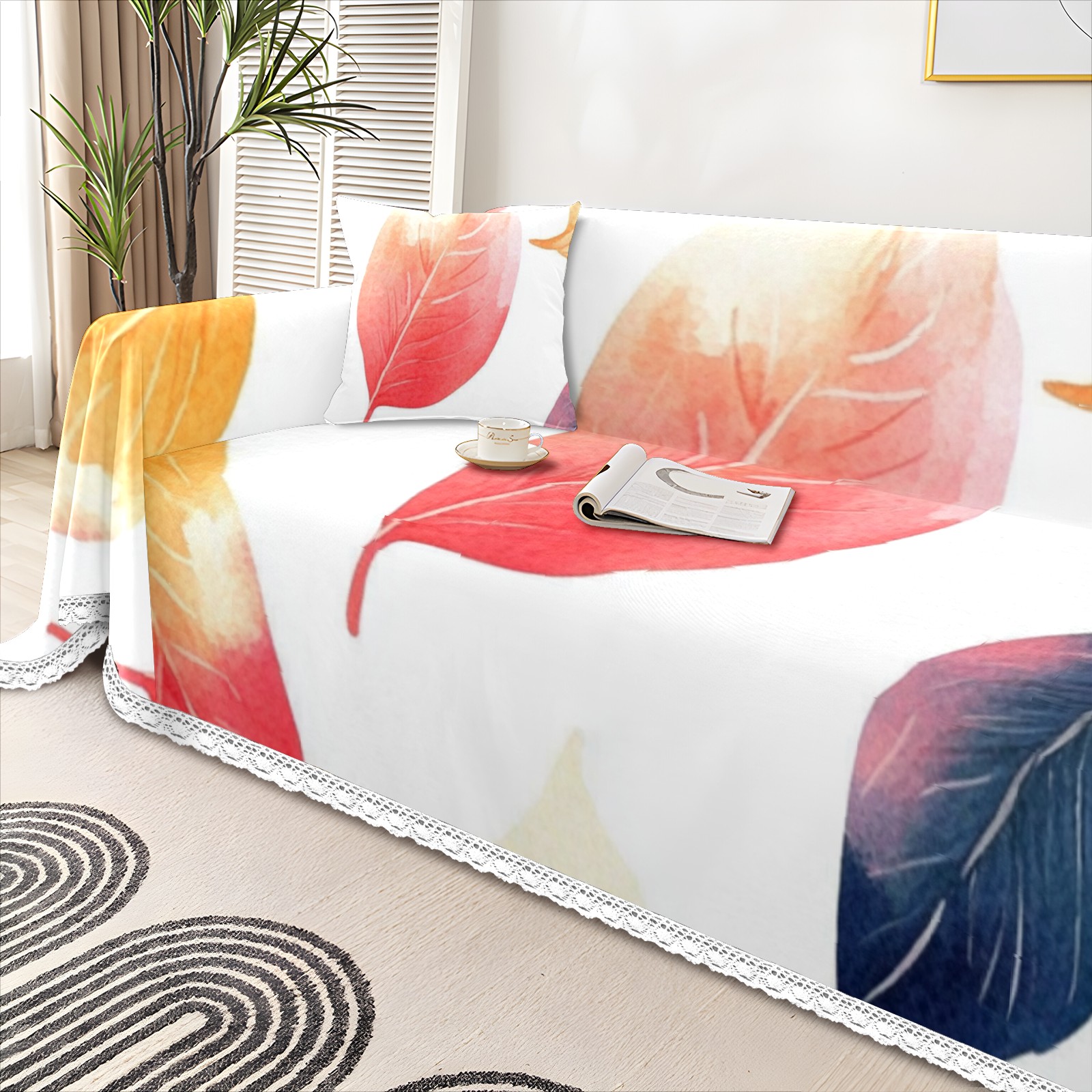 Leaves4 Sofa Cover-Soft Poly-Cotton Blend, Machine Washable Couch Protector for Home Decor - 71x91 in Couch Covers