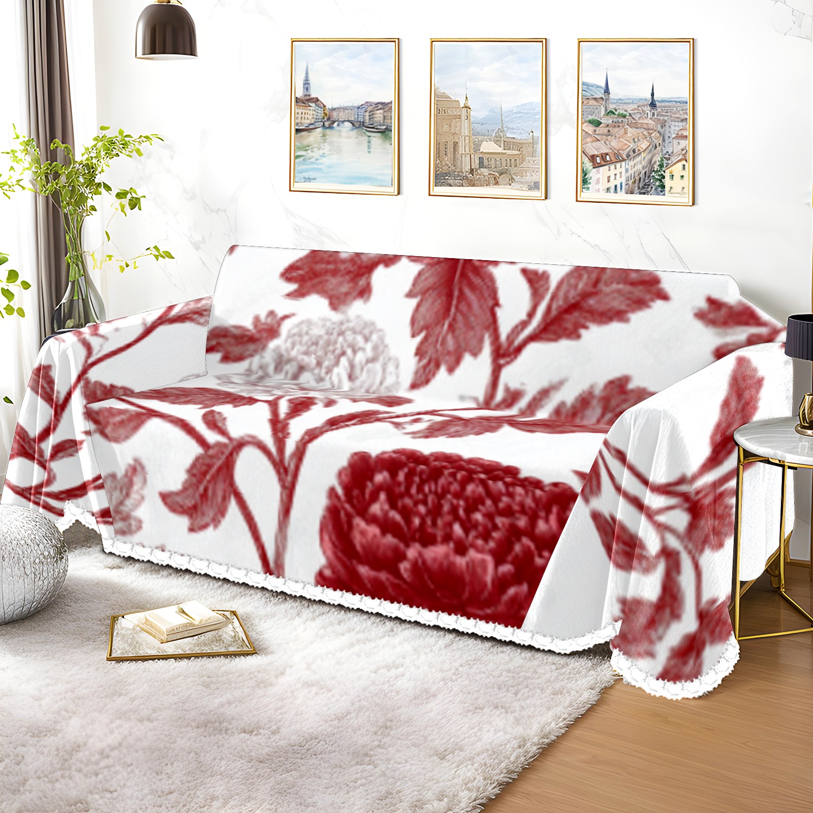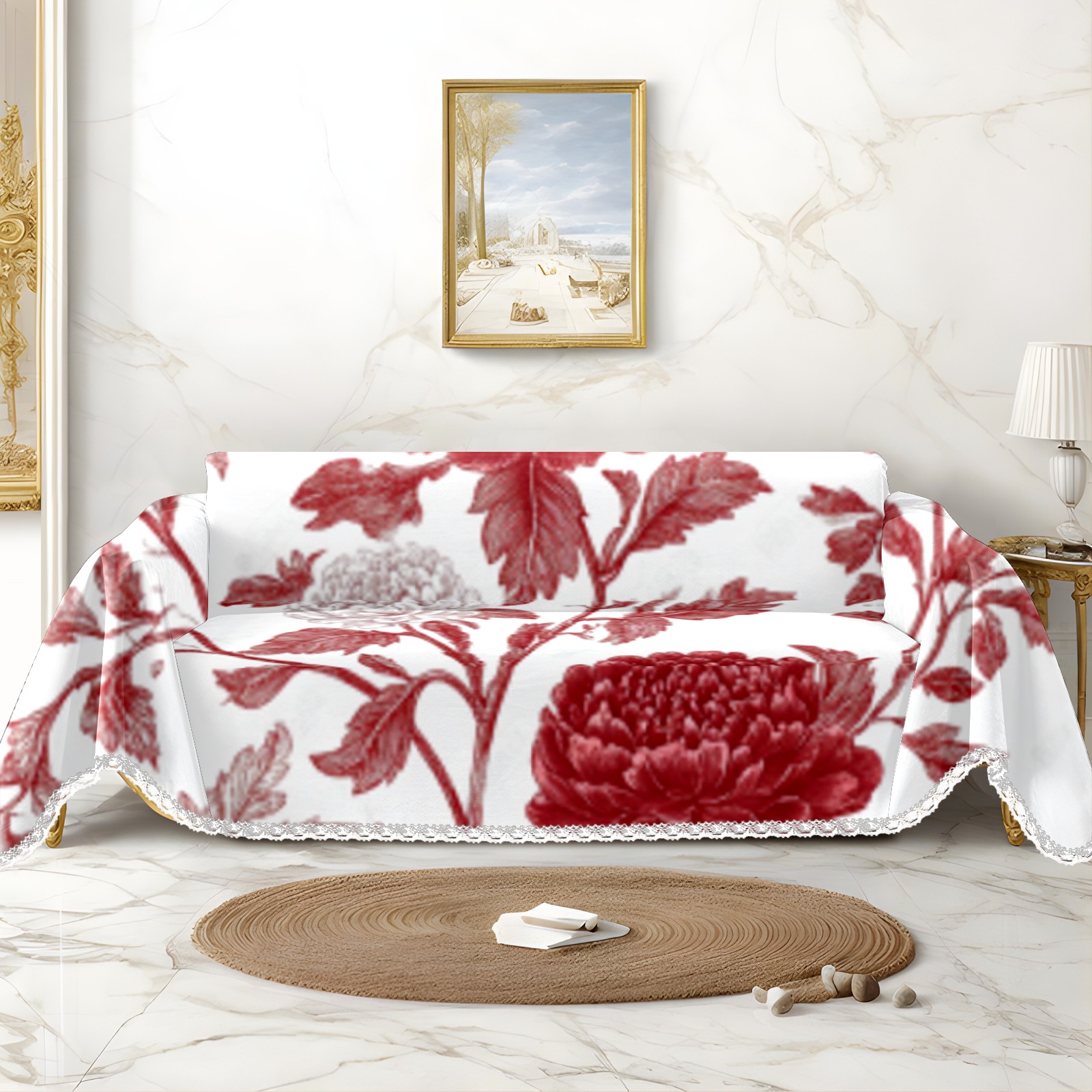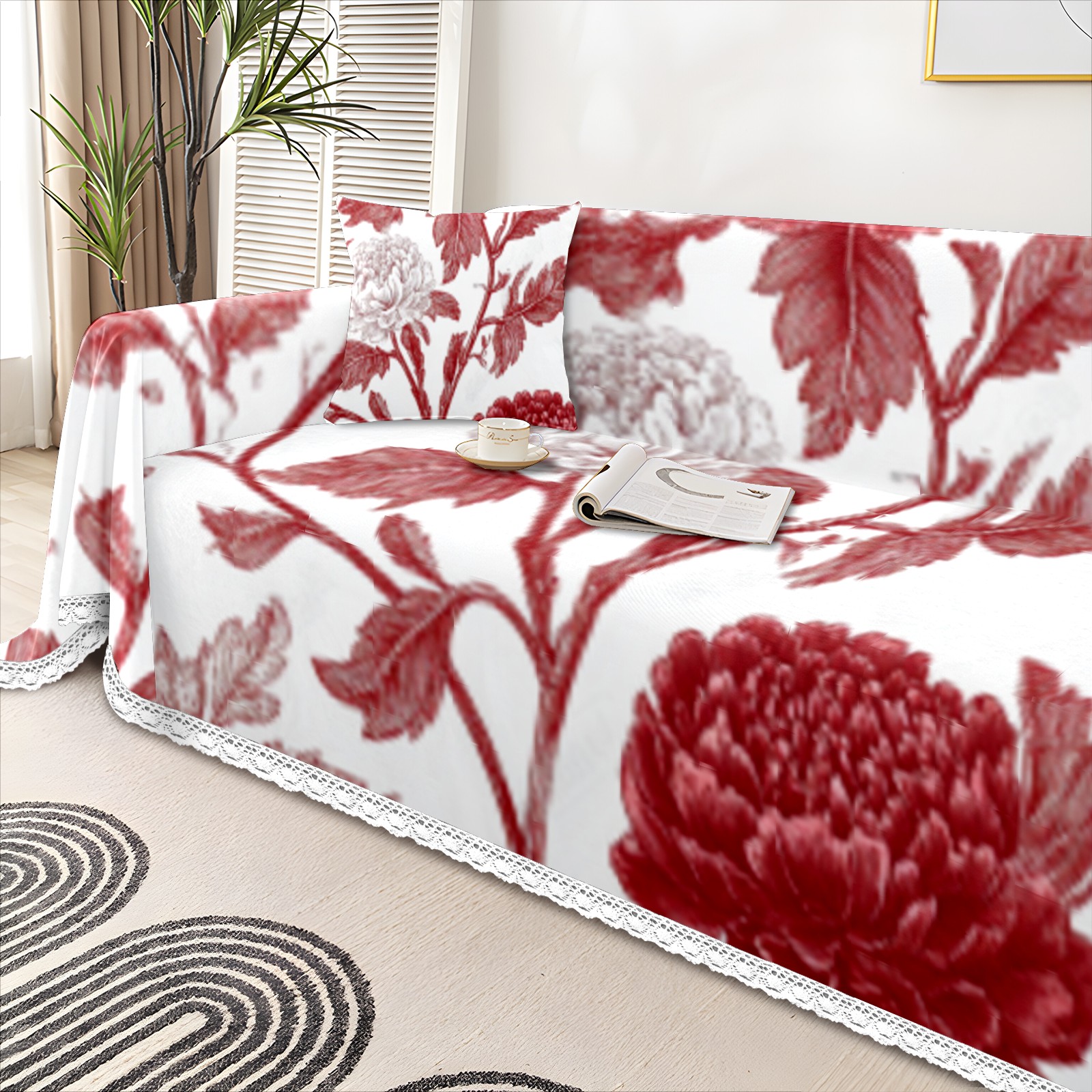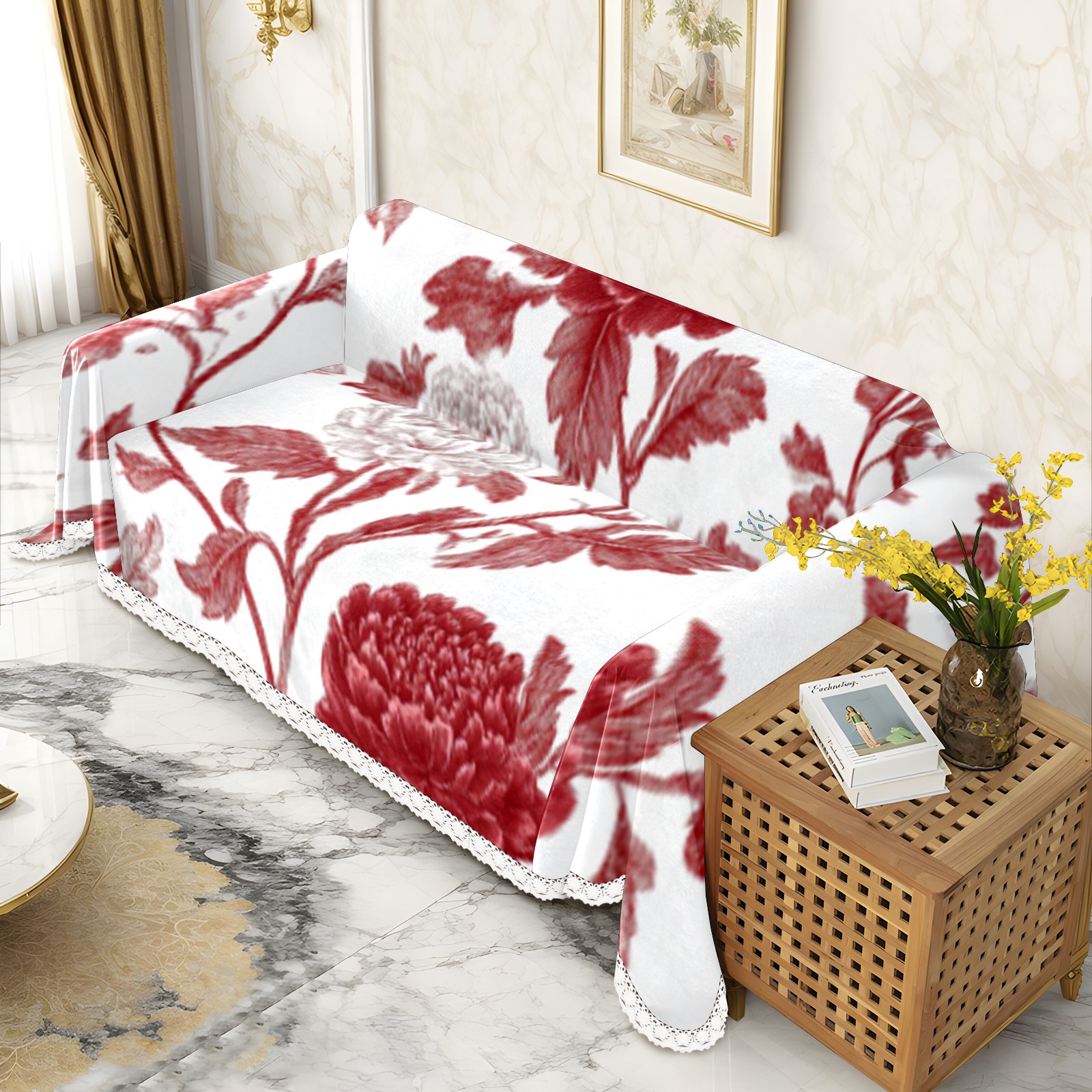 Red Flowe1 Sofa Cover-Soft Poly-Cotton Blend, Machine Washable Couch Protector for Home Decor - 71x91 in Couch Covers