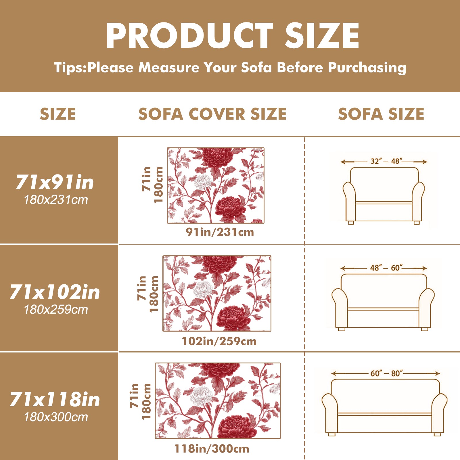 <p>Where Comfort Meets Everyday Elegance</p> <p>Engineered with a breakthrough polyester-cotton blend, these 4-size sofa covers deliver plush protection while enhancing your living space aesthetics.Precision-Crafted Details</p> <p>65% heavy-duty polyester + 35% combed cotton, brushed to create a velvety layer ideal for bare-skin contact during relaxation.</p> <p>Dimensions: 71x91/102/118/134in (±2cm). Elastic hemming + corner straps maintain smooth coverage on L-shaped curves and high-back designs.</p> <p>Dust Defense: Tight plain weave minimizes particle accumulation; easy shake-off maintenance</p> <p>Easy Maintenance: Machine washable at 86°F (30°C) without fading or shrinkage</p> <p>From quiet afternoon naps to lively gatherings, experience lasting softness and reliable protection that evolves with your lifestyle.</p>