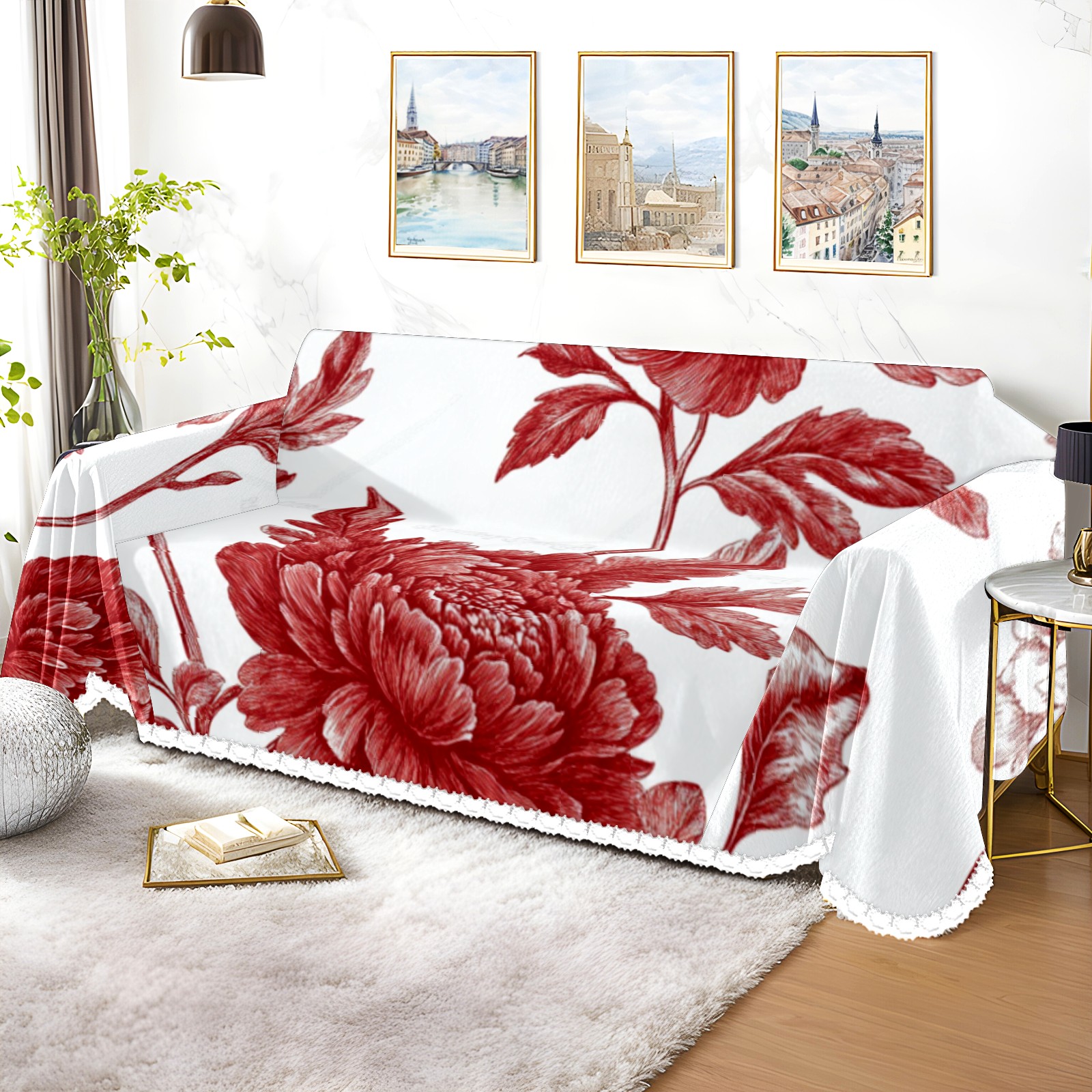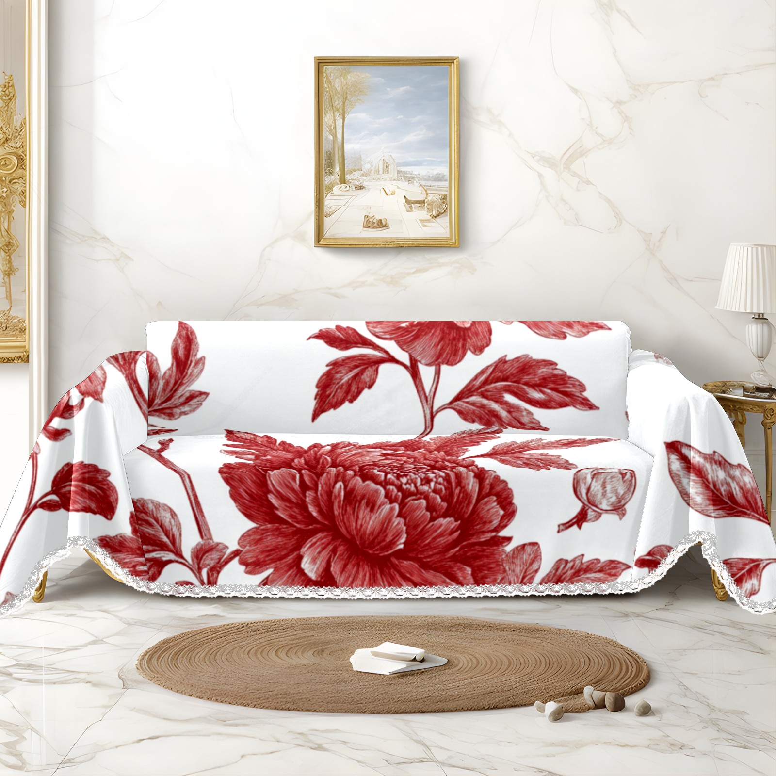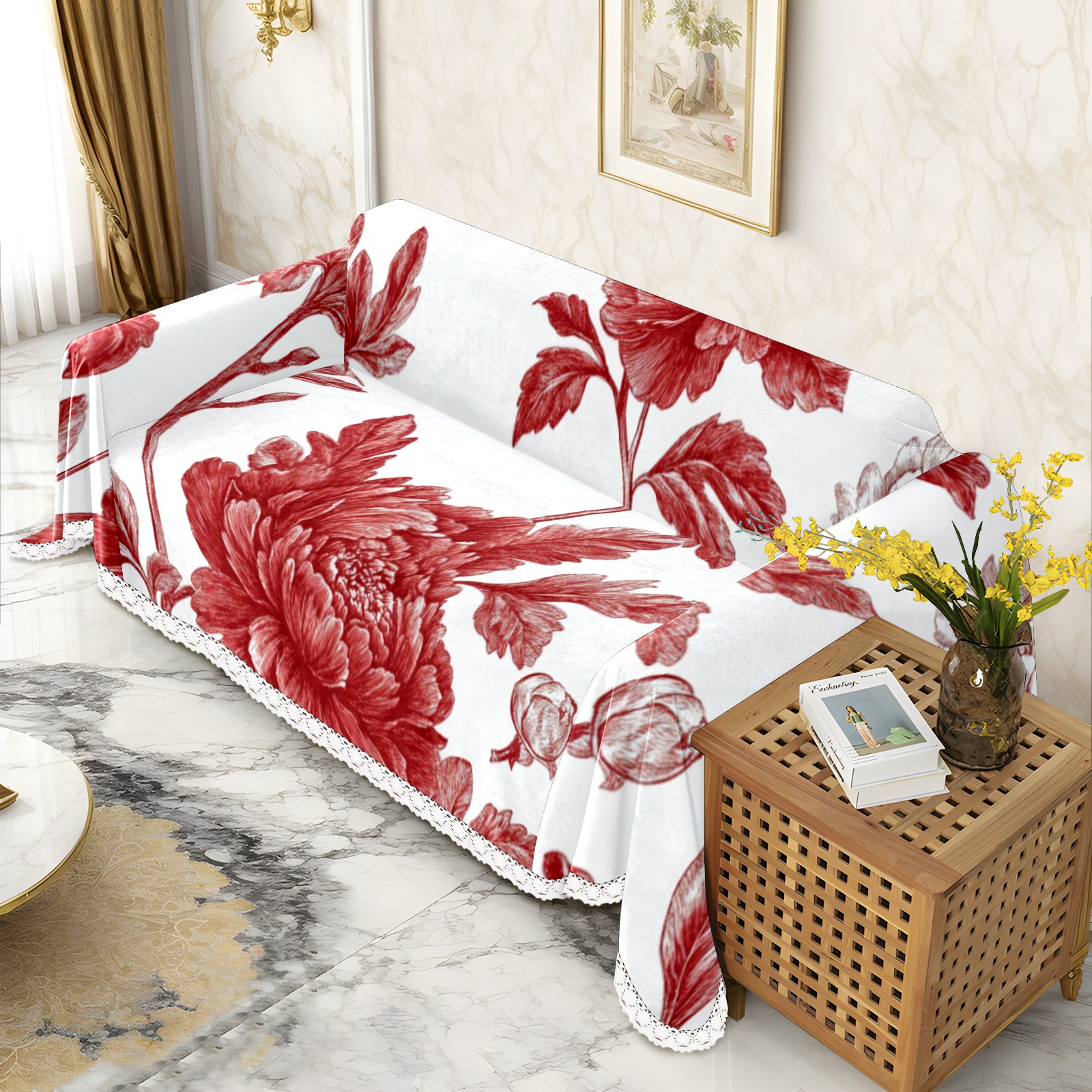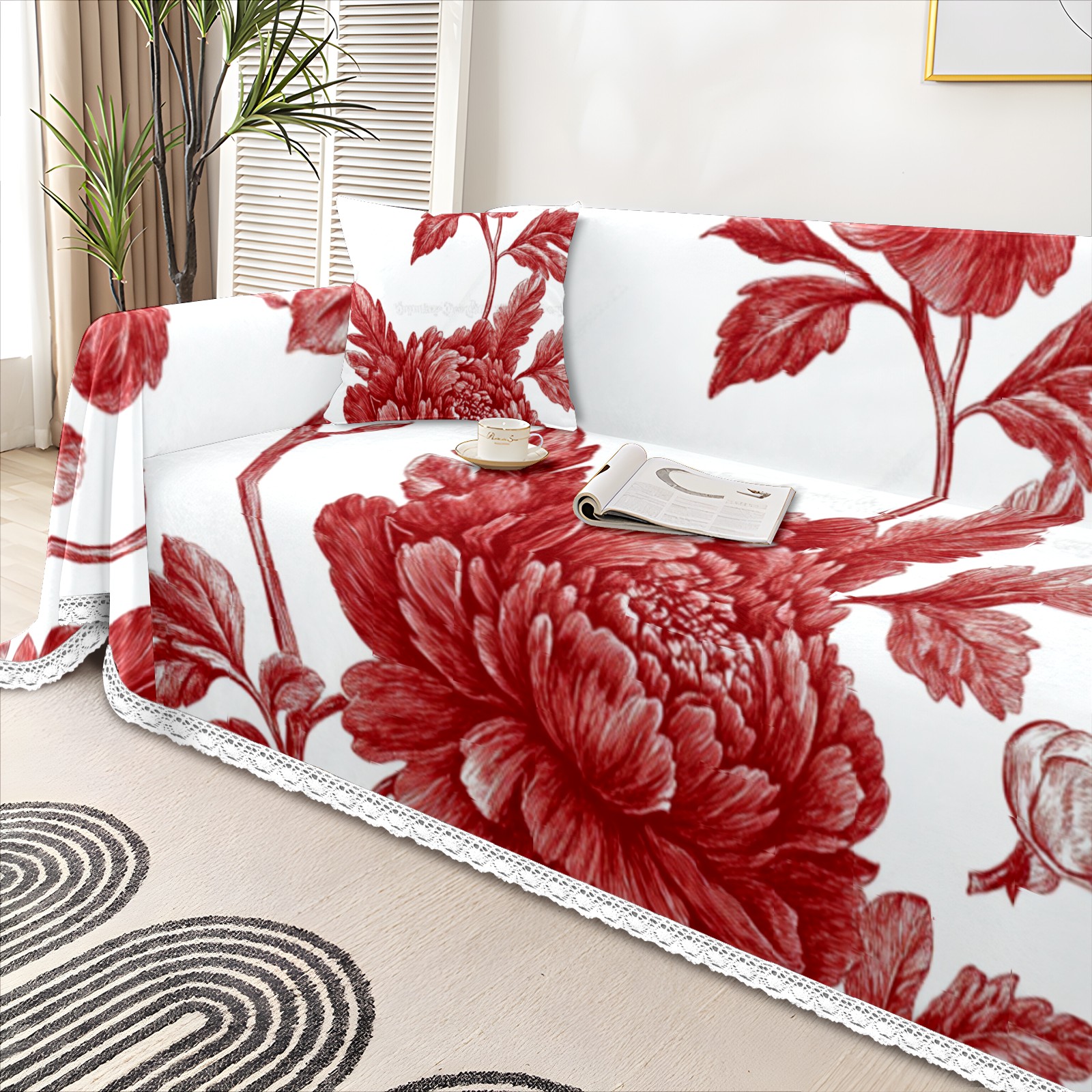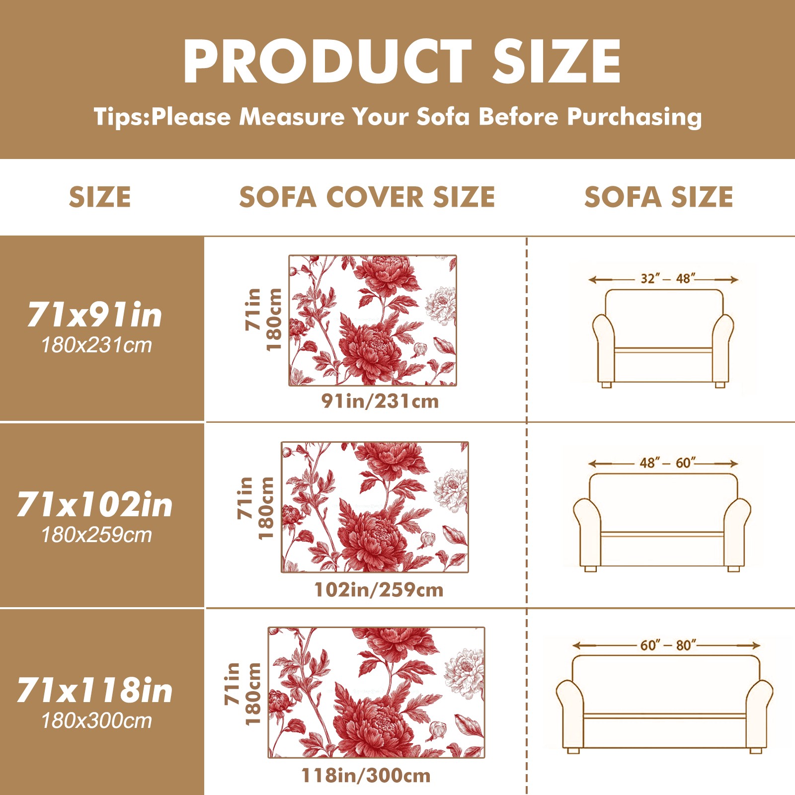 Red Flowe3 Sofa Cover-Soft Poly-Cotton Blend, Machine Washable Couch Protector for Home Decor - 71x91 in Couch Covers