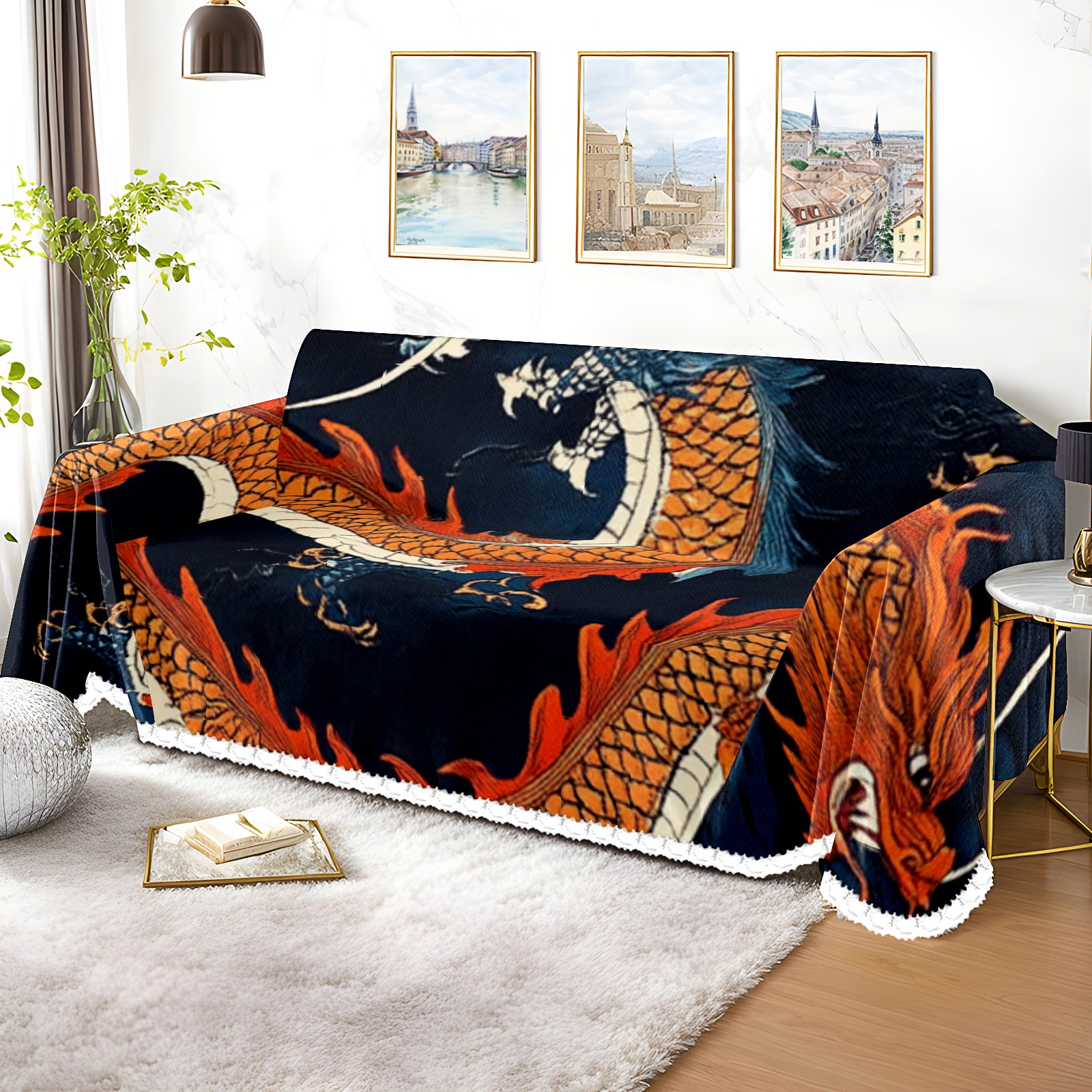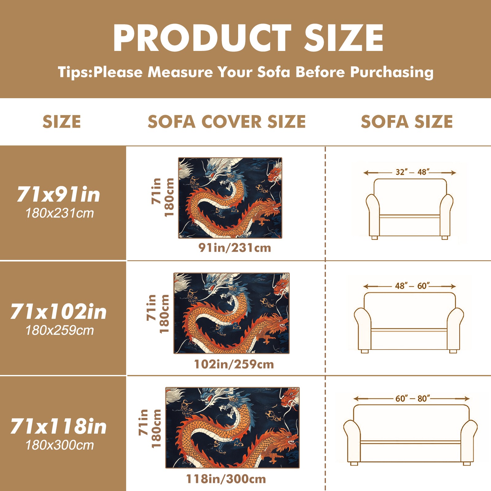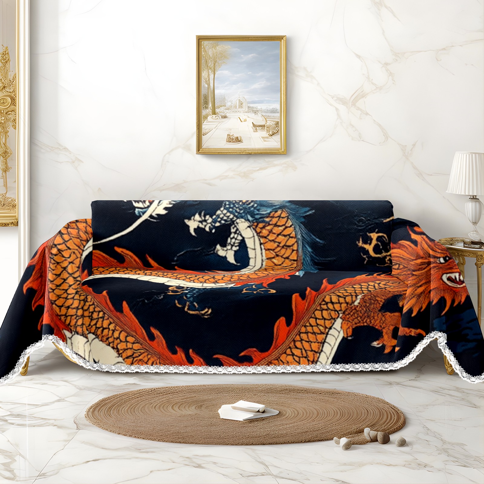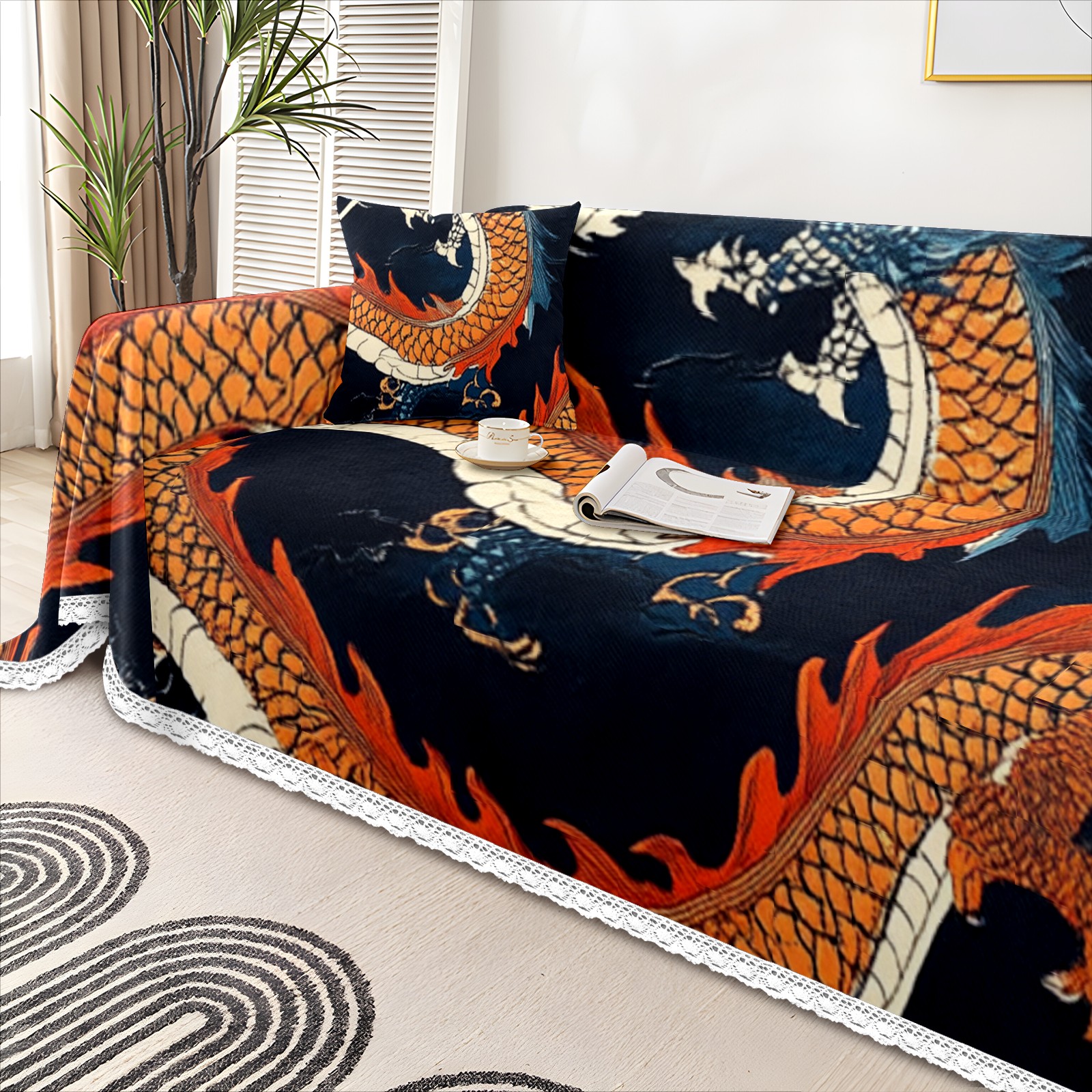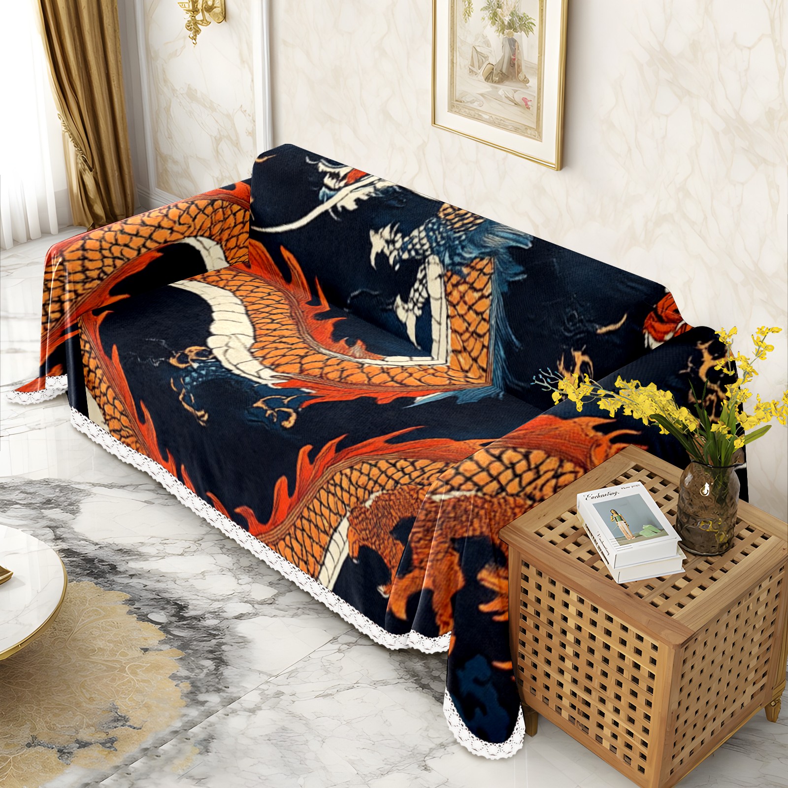 Dragons Sofa Cover-Soft Poly-Cotton Blend, Machine Washable Couch Protector for Home Decor - 71x91 in Couch Covers