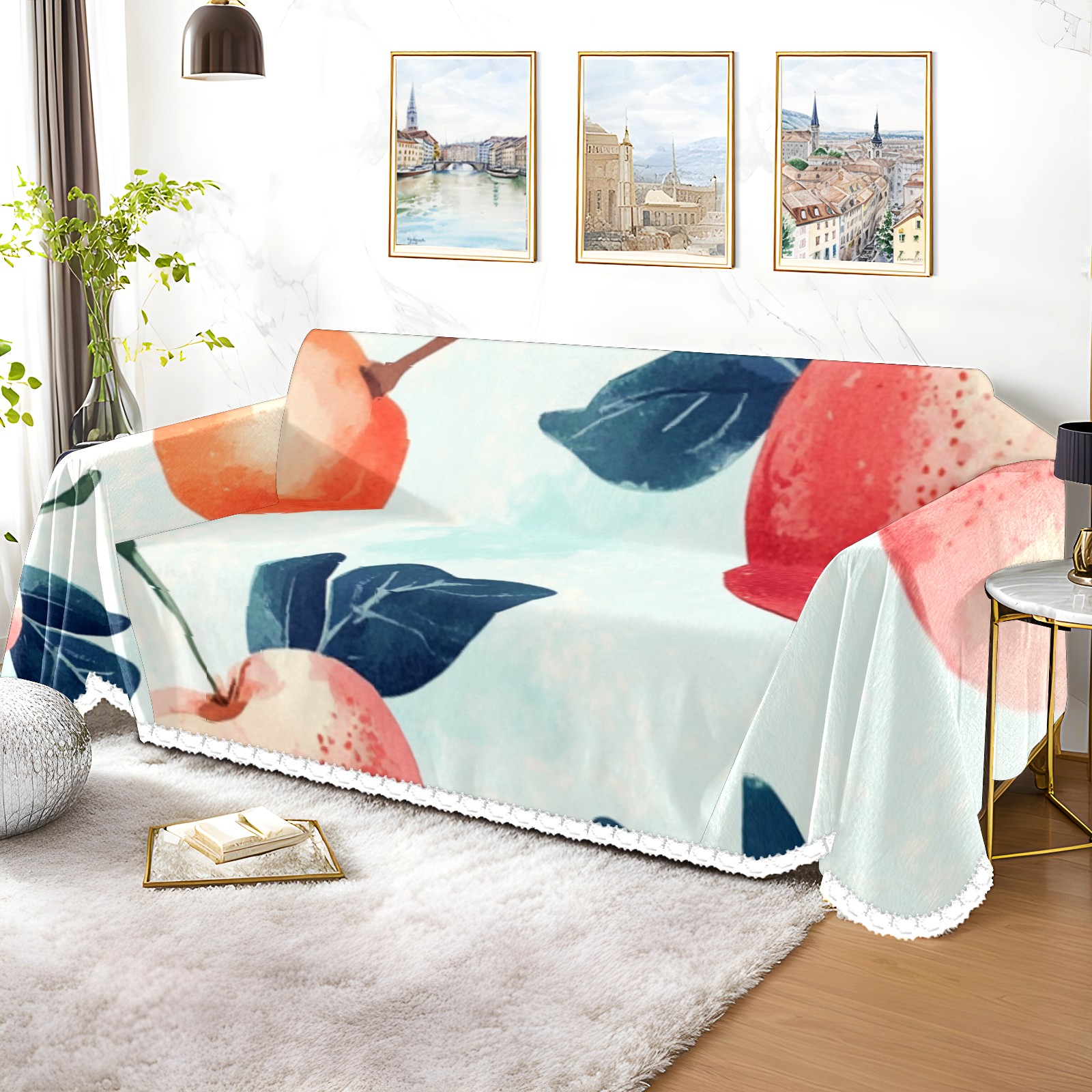 Fruit Sofa Cover-Soft Poly-Cotton Blend, Machine Washable Couch Protector for Home Decor - 71x91 in Couch Covers