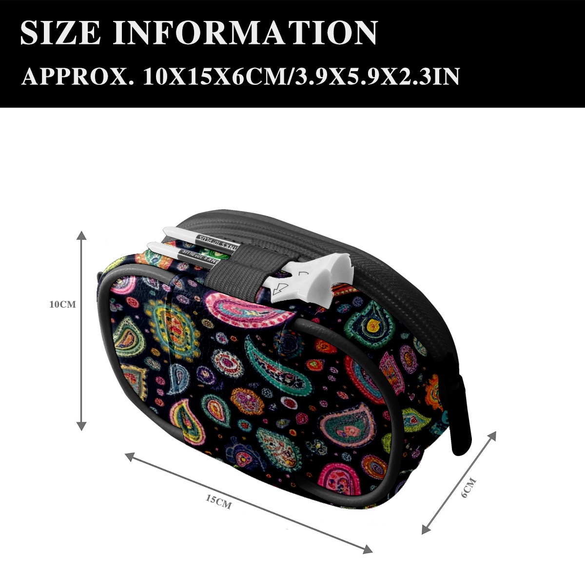 Golf Ball Waist Bag PU Leather Golf Ball Pouch with Belt Clip, Portable Golf Tee Holder & Golf Accessories for Men Women, Golfing Fanny Pack for Balls Tees Valuables (Colorful Paisley Designs)