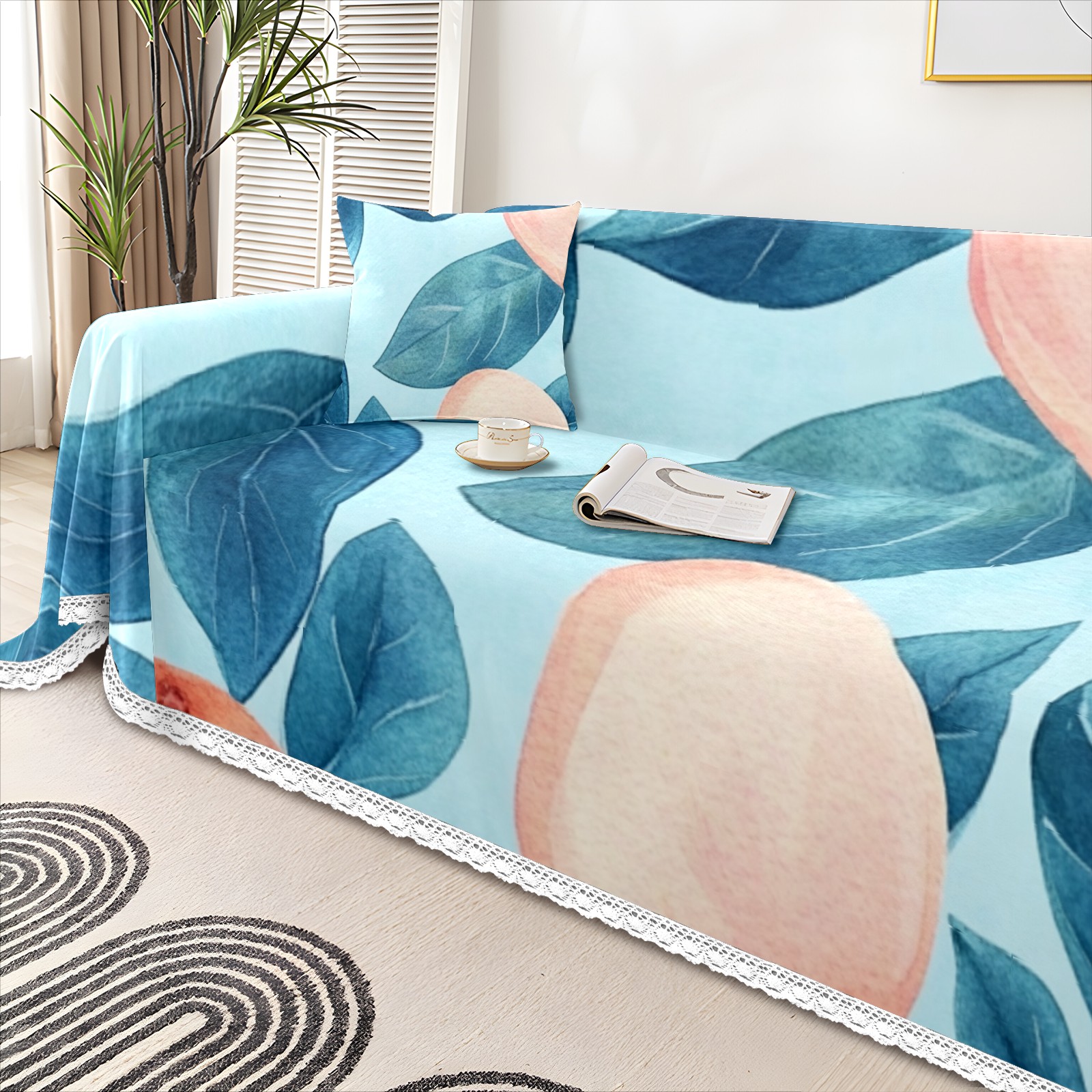 Peach Sofa Cover-Soft Poly-Cotton Blend, Machine Washable Couch Protector for Home Decor - 71x91 in Couch Covers