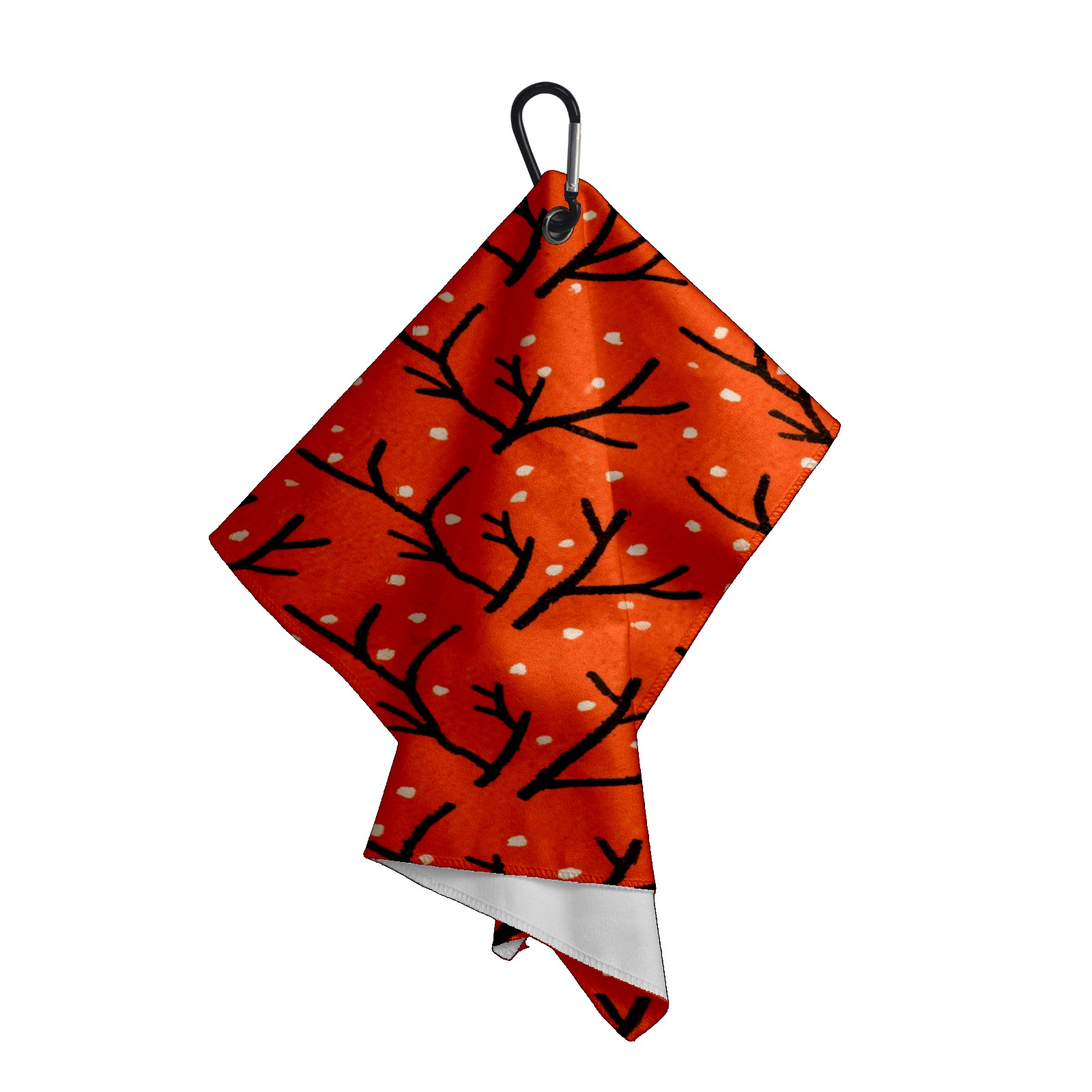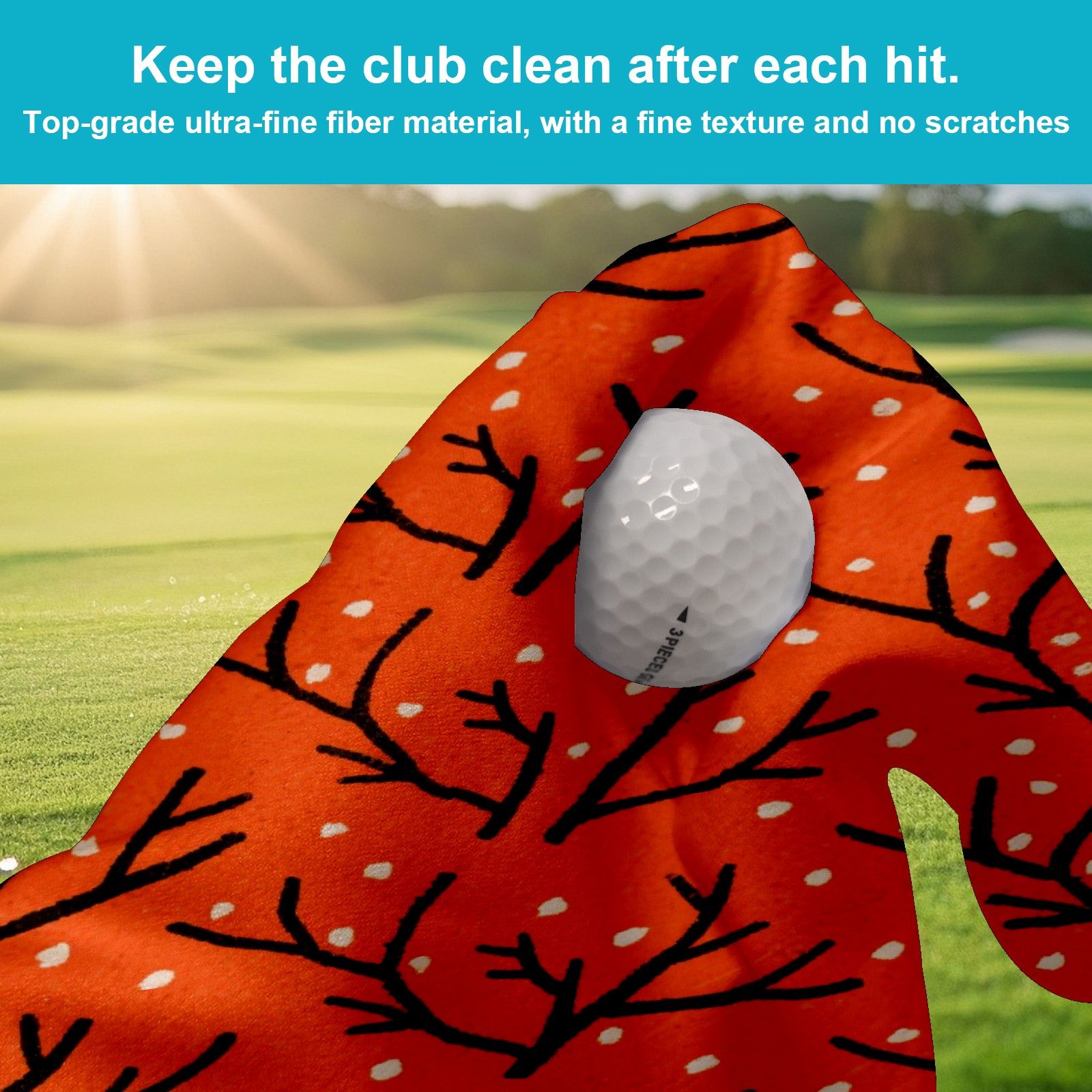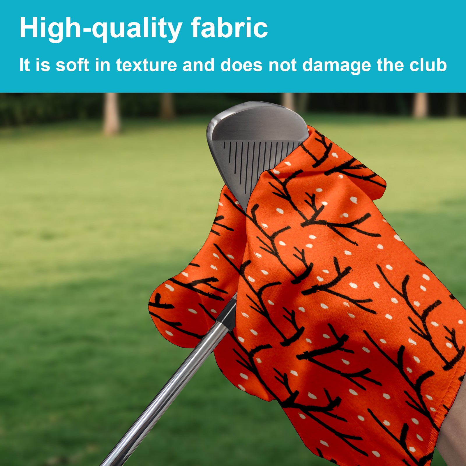 Golf Towel, Absorbent and Fast Drying, Portable and Easy to Store, for Cleaning Club Heads and Balls Orange Tree Branch