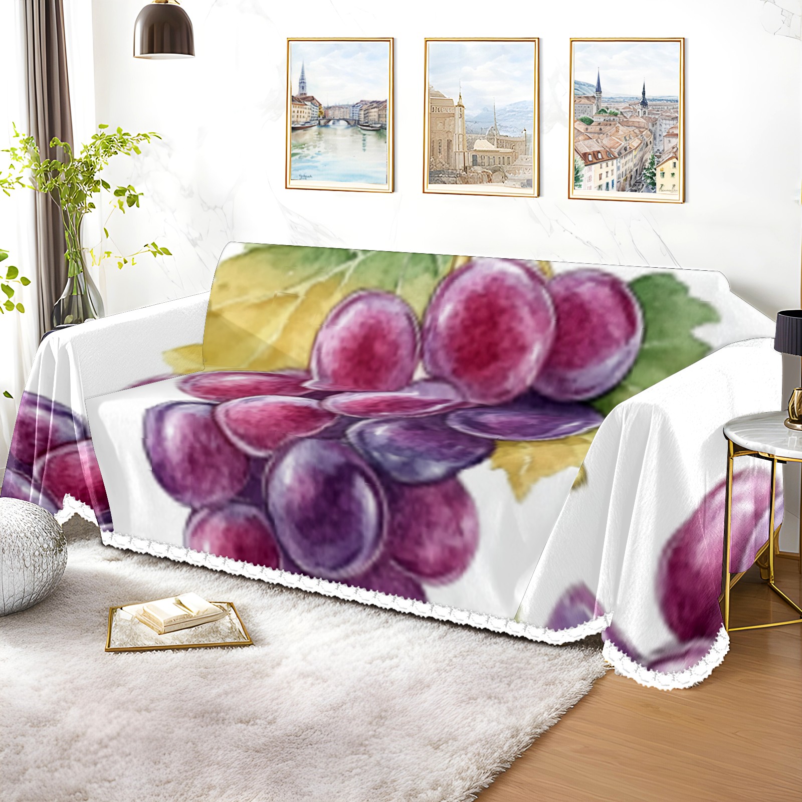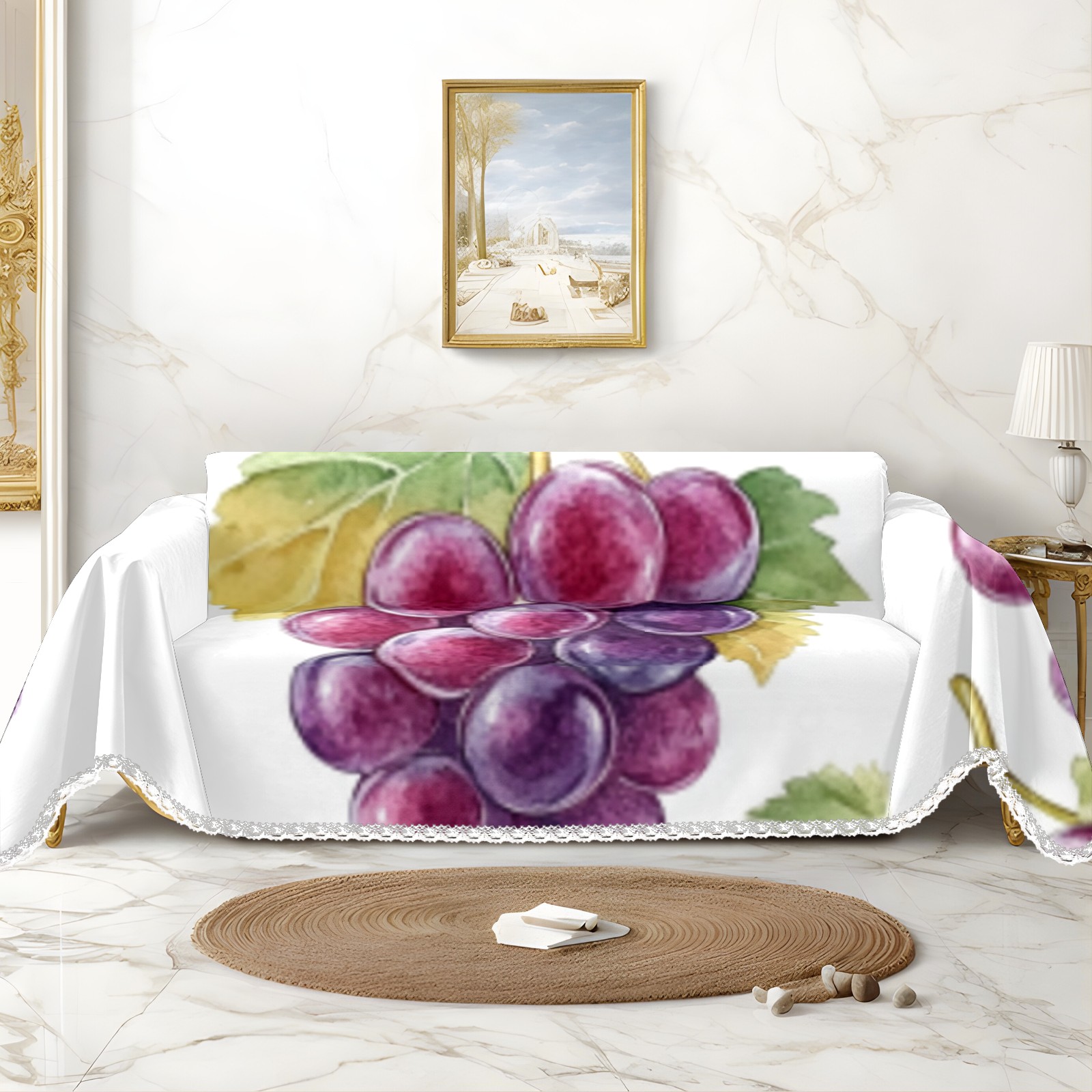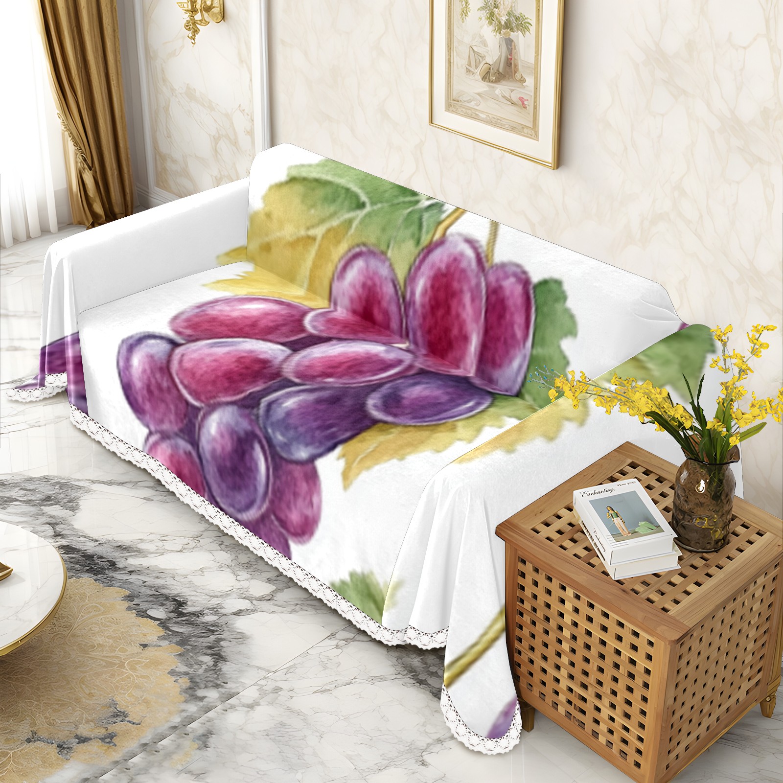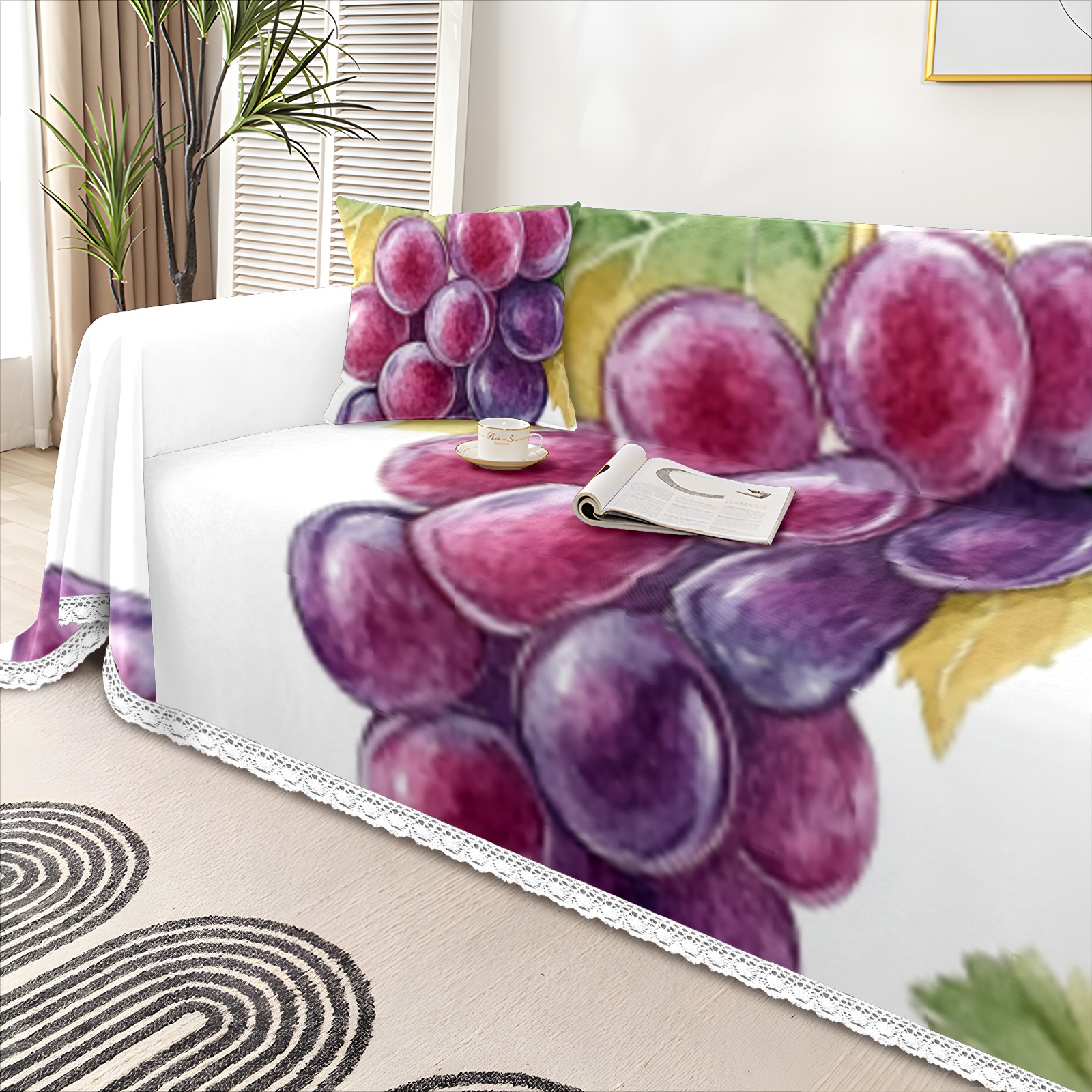 Grape1 Sofa Cover-Soft Poly-Cotton Blend, Machine Washable Couch Protector for Home Decor - 71x91 in Couch Covers