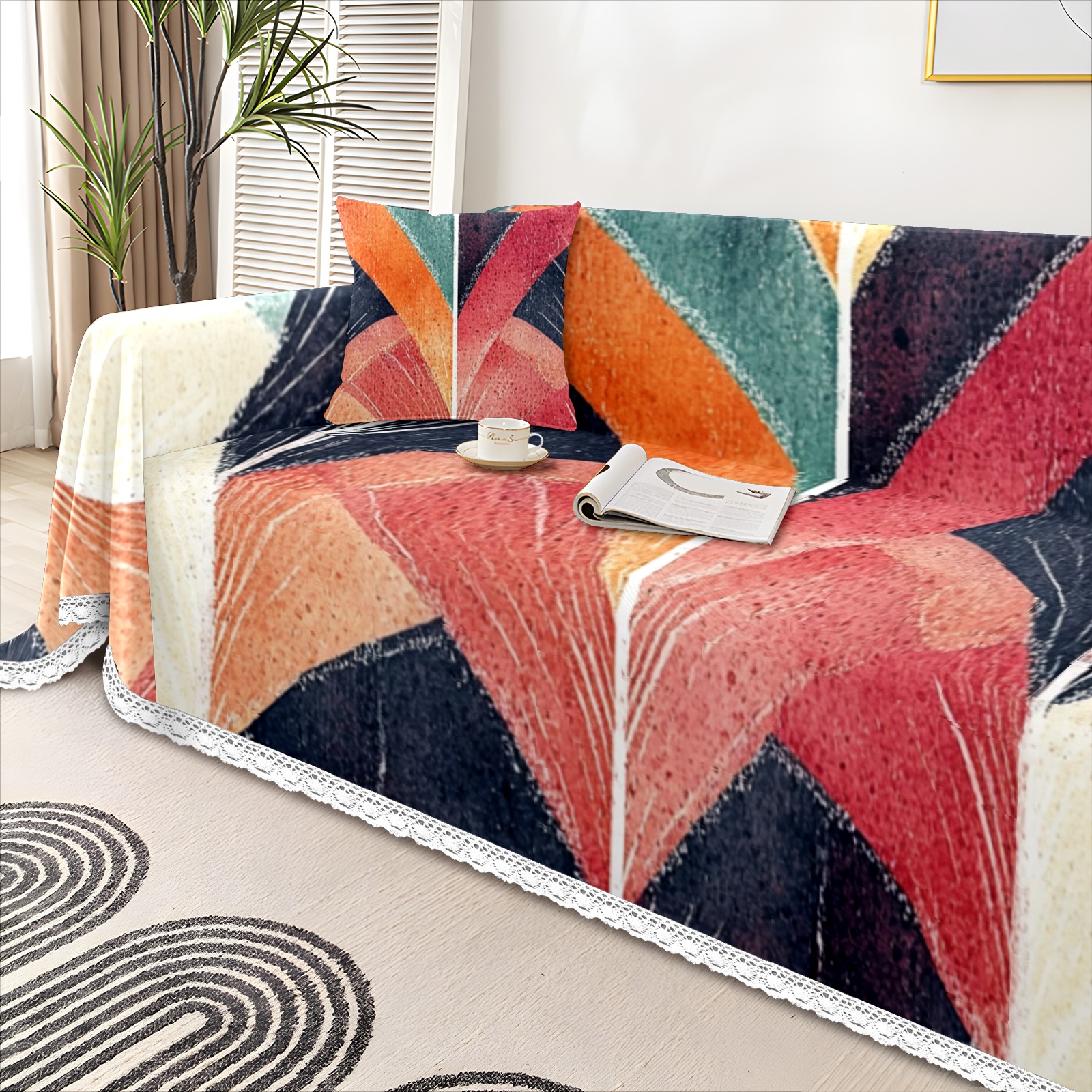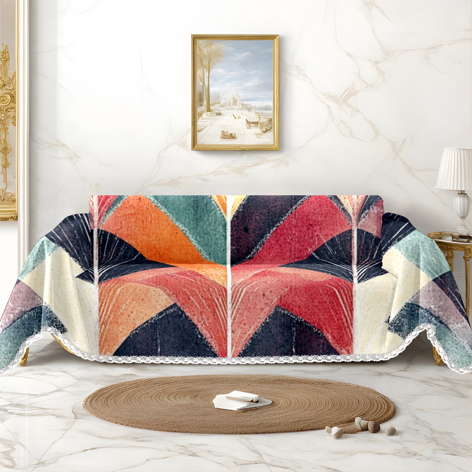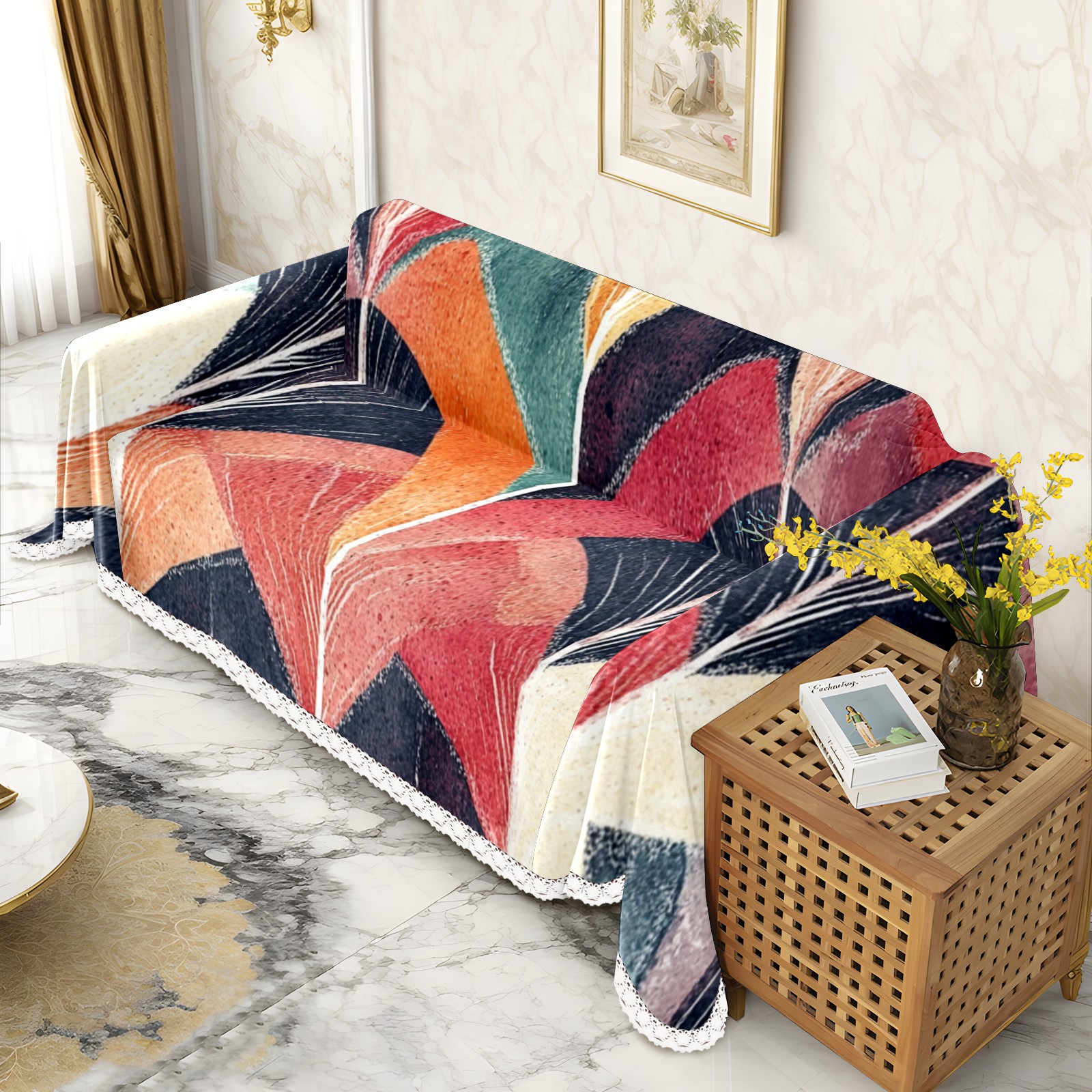 Colorful1 Sofa Cover-Soft Poly-Cotton Blend, Machine Washable Couch Protector for Home Decor - 71x91 in Couch Covers