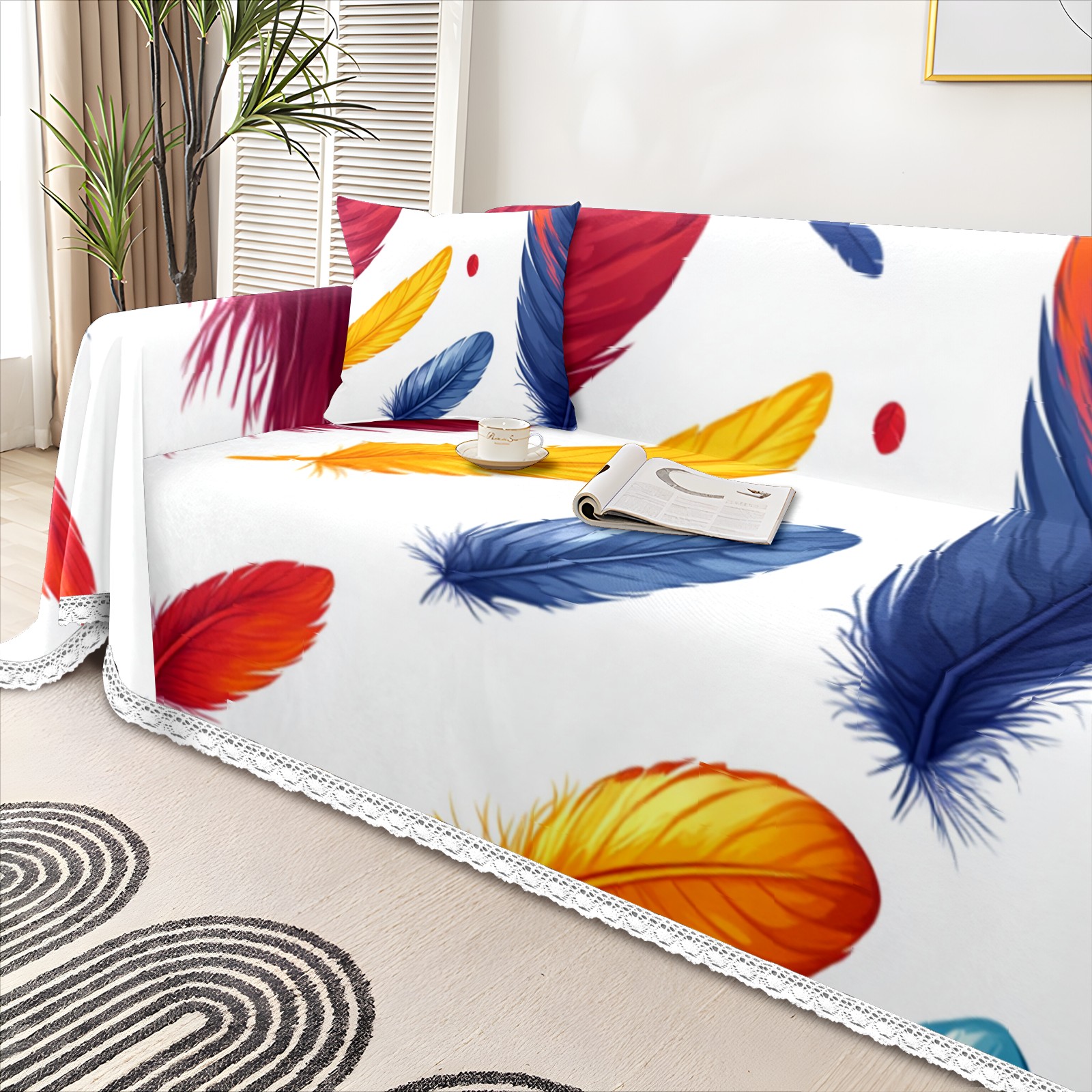 13 Sofa Cover-Soft Poly-Cotton Blend, Machine Washable Couch Protector for Home Decor - 71x91 in Couch Covers