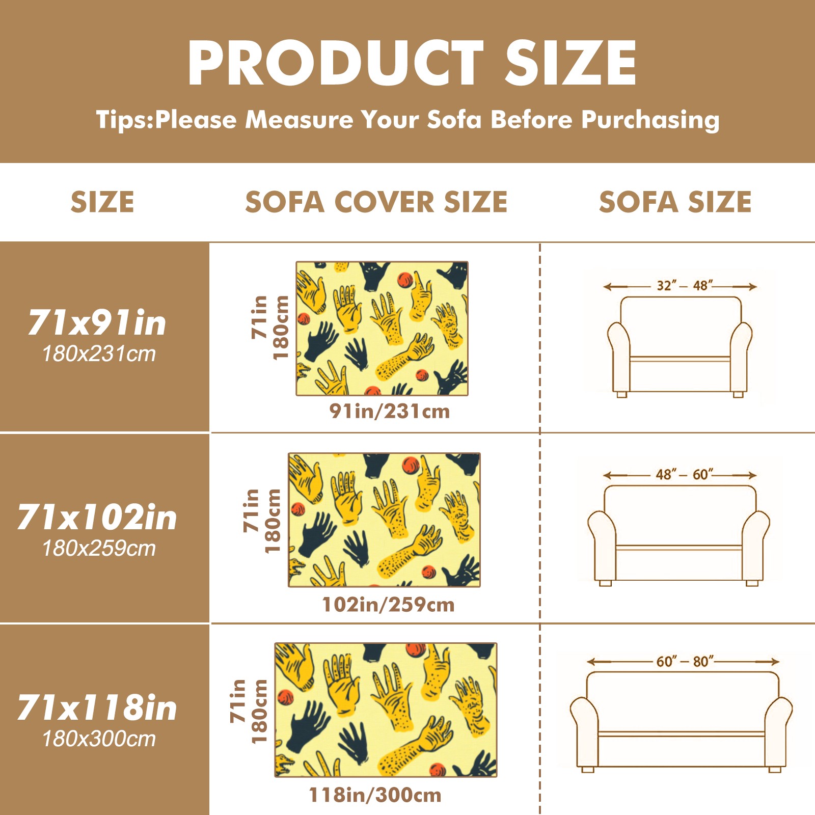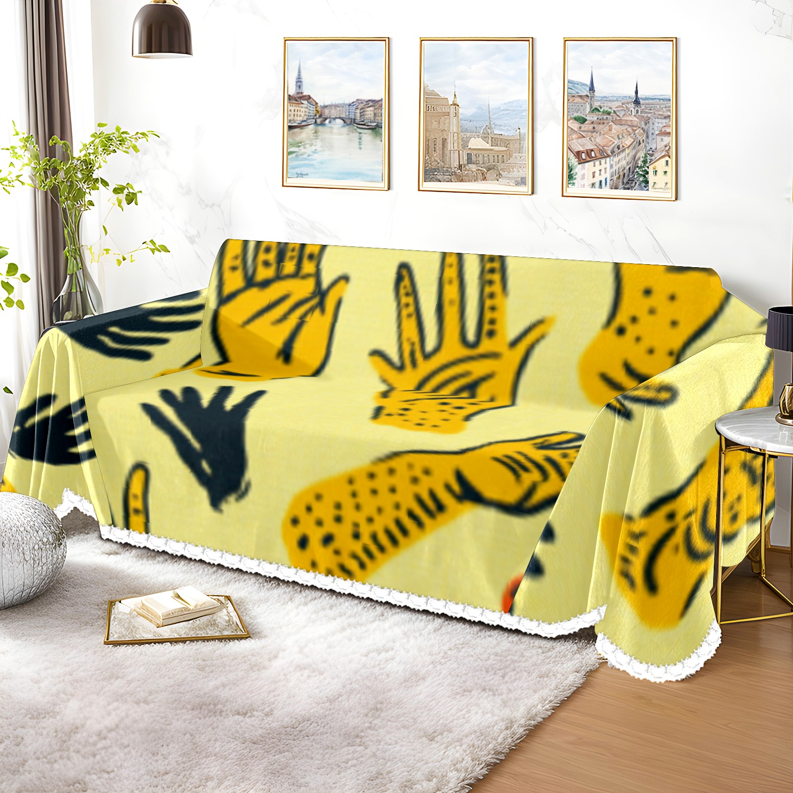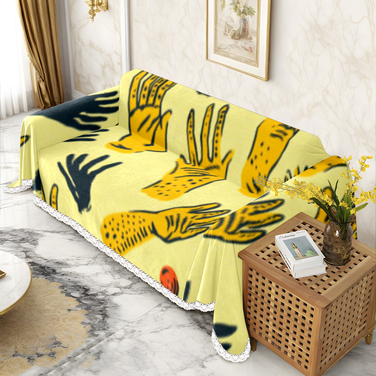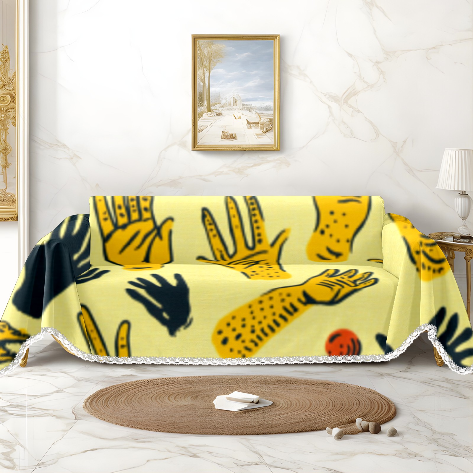 Hands Sofa Cover-Soft Poly-Cotton Blend, Machine Washable Couch Protector for Home Decor - 71x91 in Couch Covers