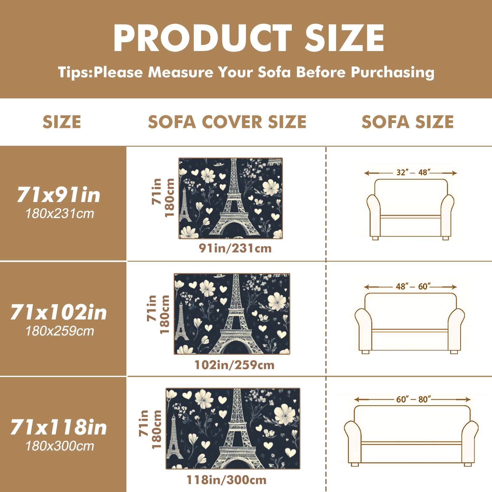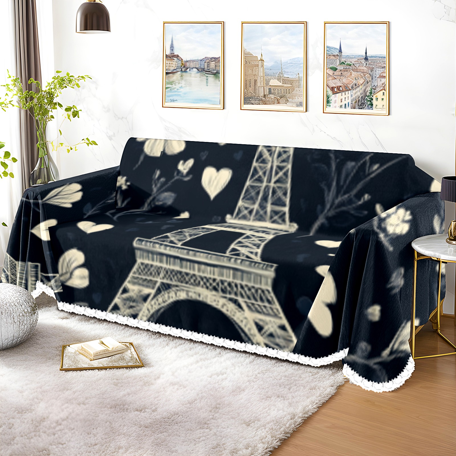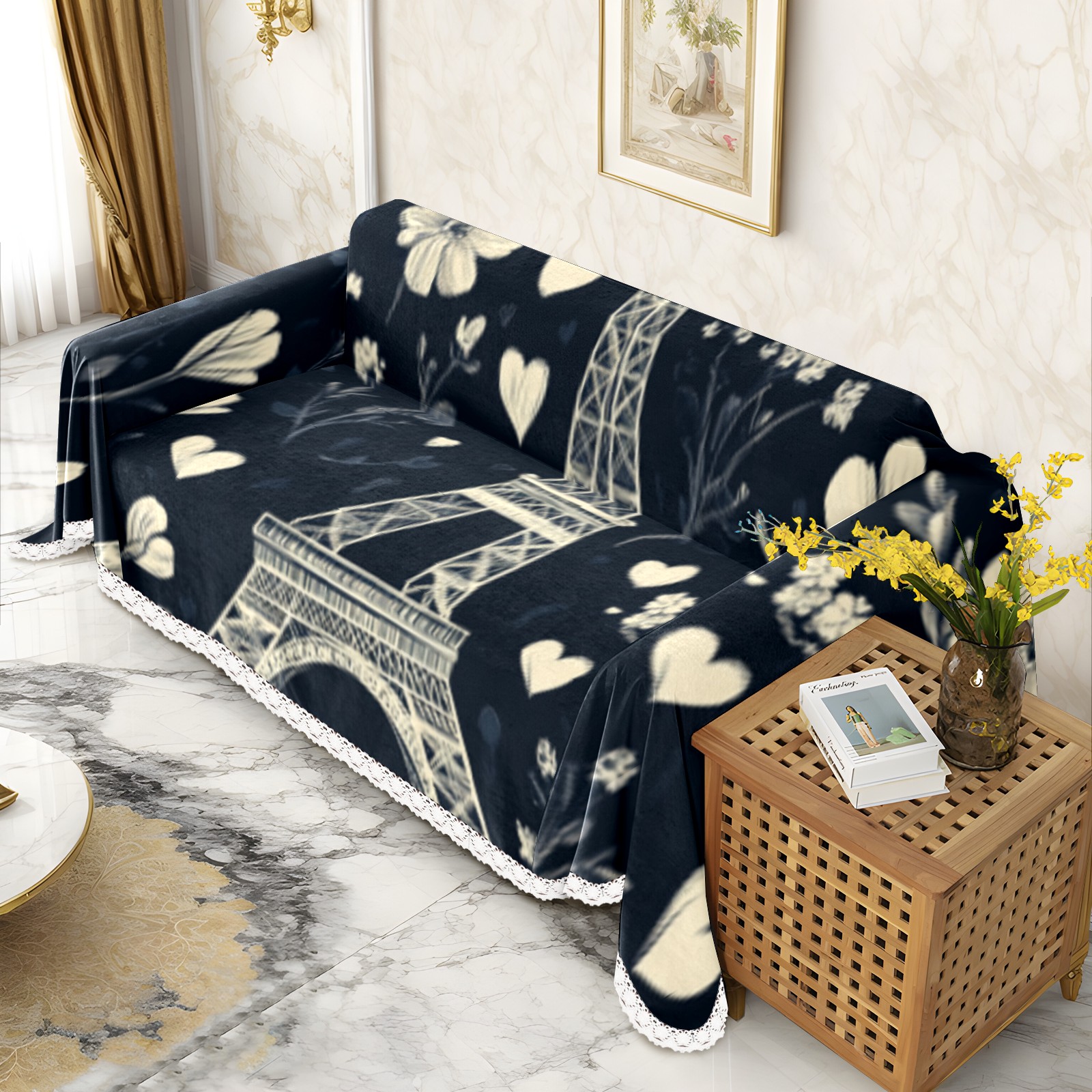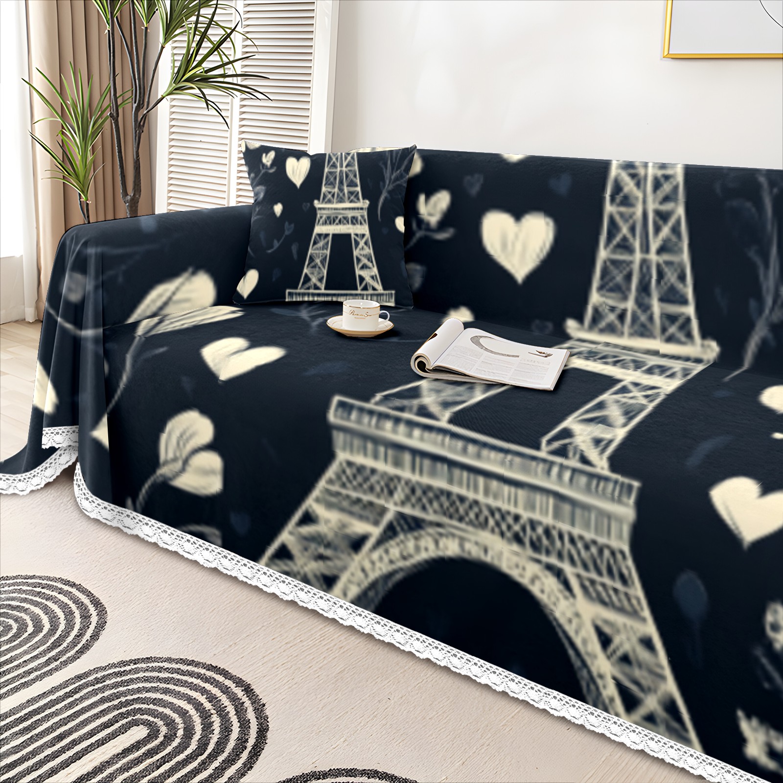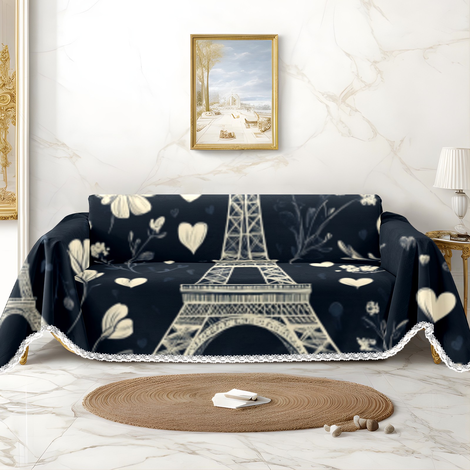 Paris Sofa Cover-Soft Poly-Cotton Blend, Machine Washable Couch Protector for Home Decor - 71x91 in Couch Covers
