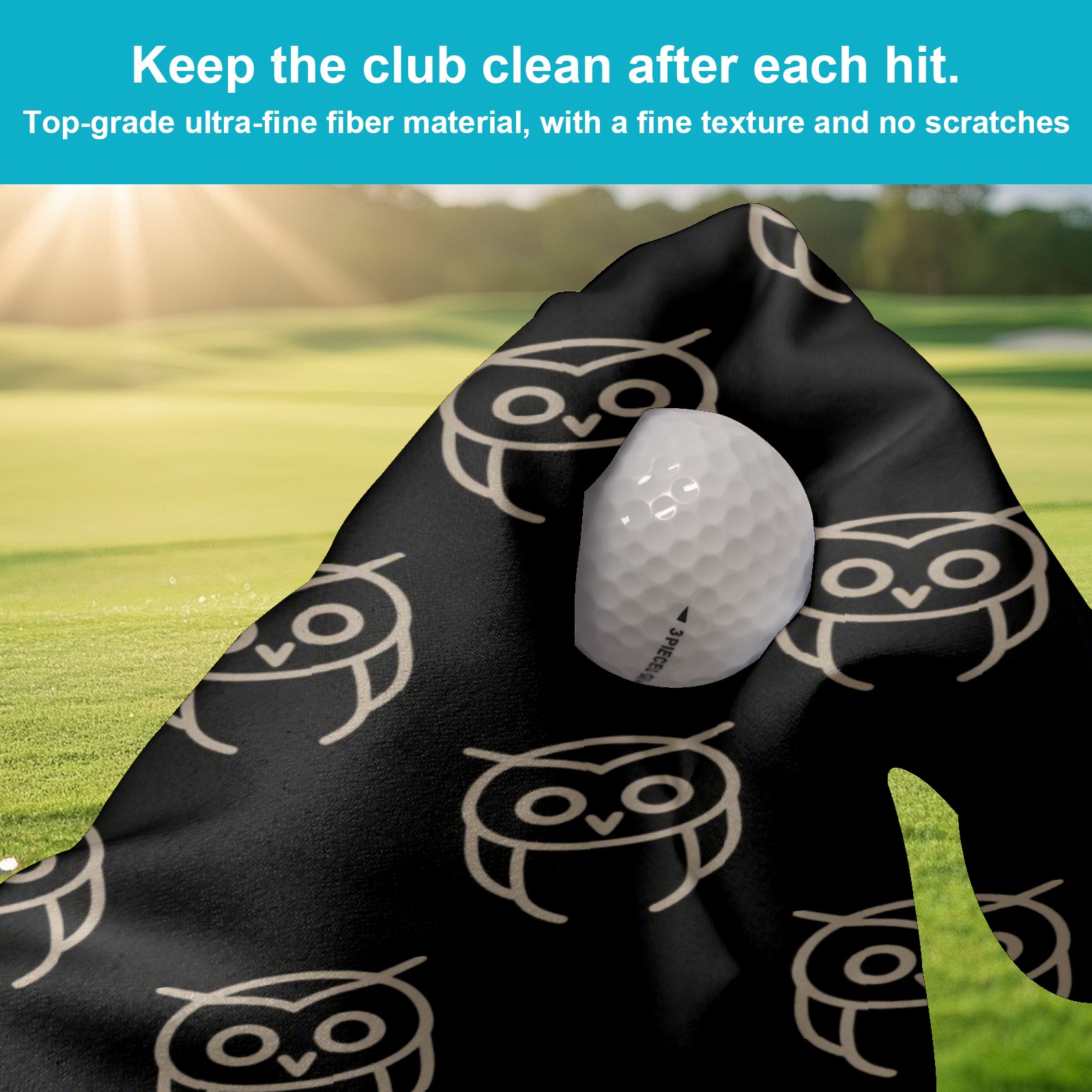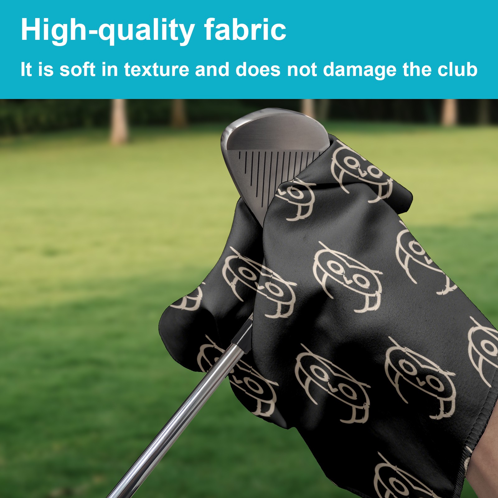 Golf Towel, Absorbent and Fast Drying, Portable and Easy to Store, for Cleaning Club Heads and Balls Gray Owl Pattern