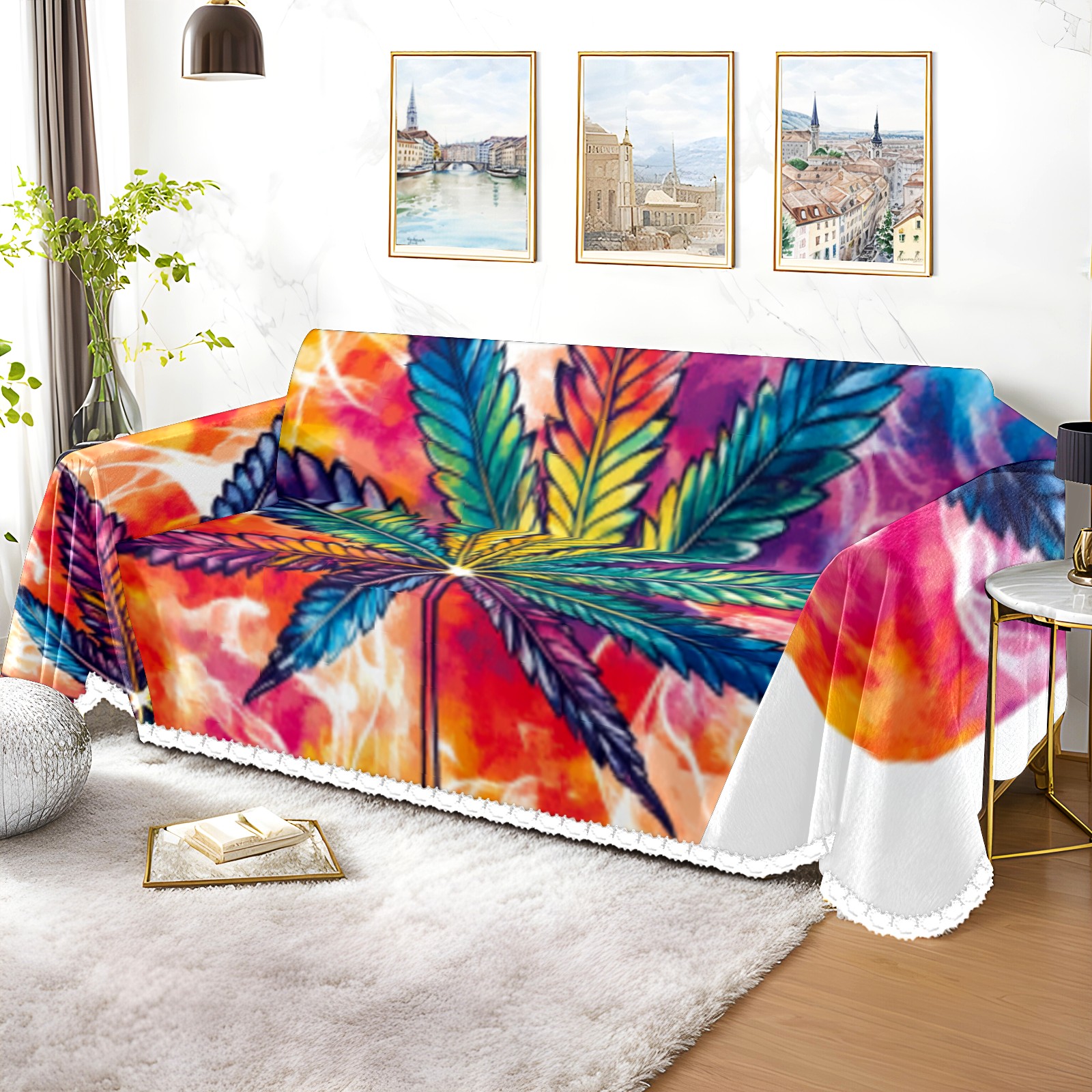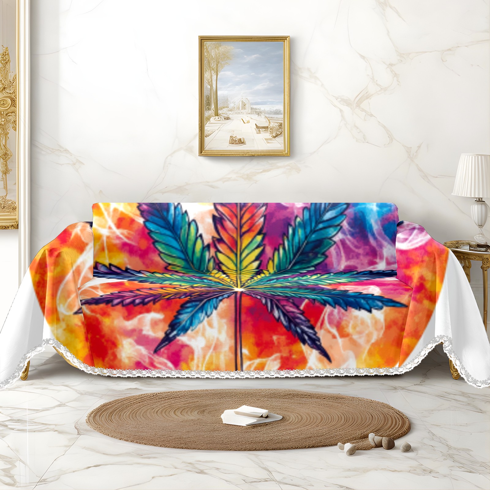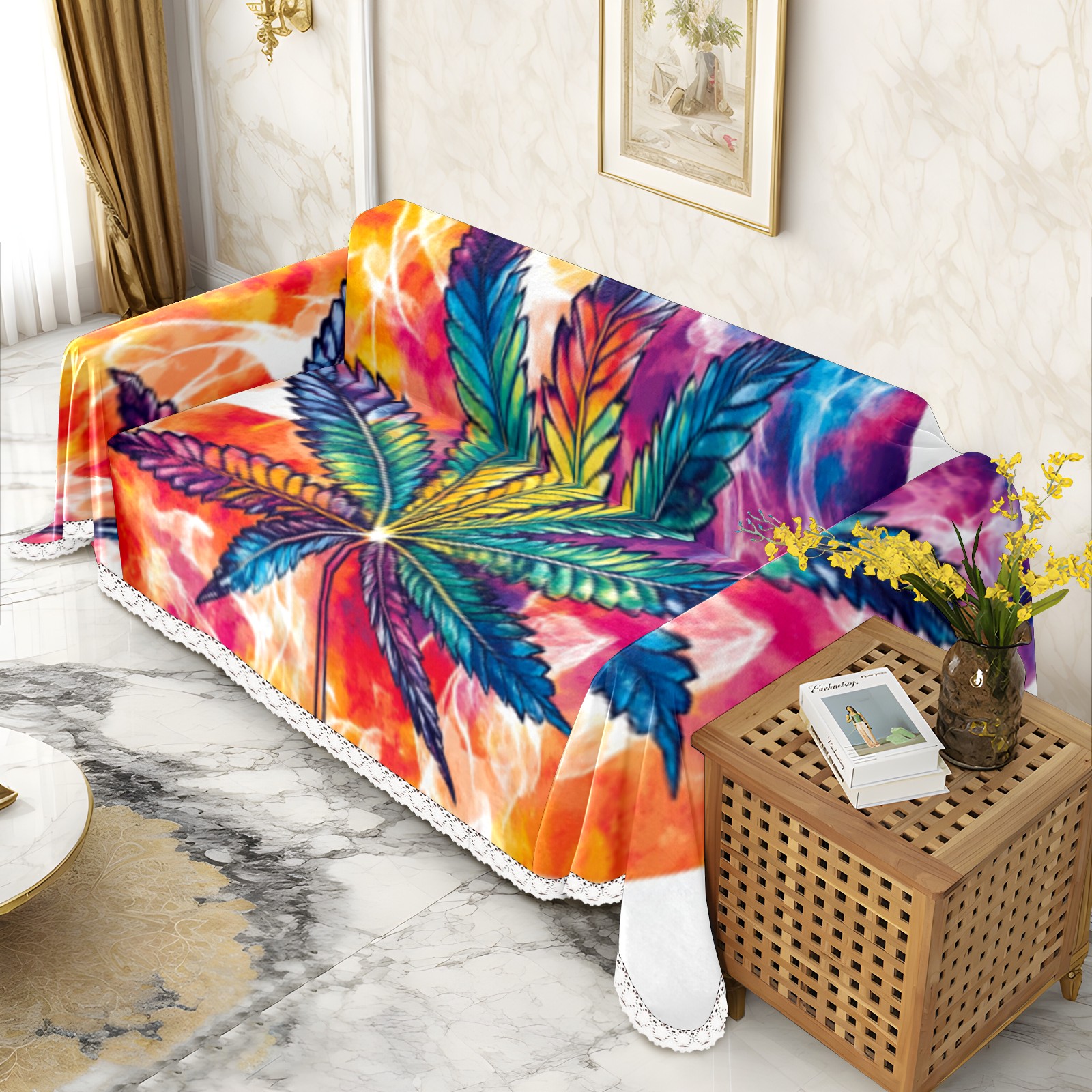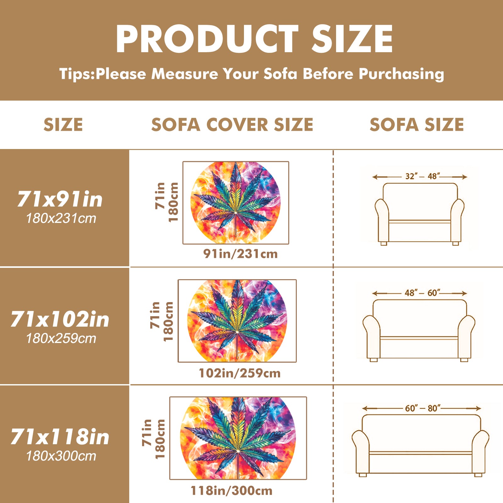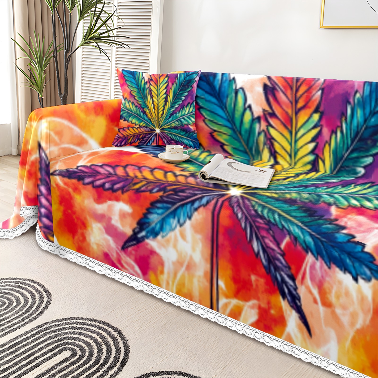 Leaf Sofa Cover-Soft Poly-Cotton Blend, Machine Washable Couch Protector for Home Decor - 71x91 in Couch Covers