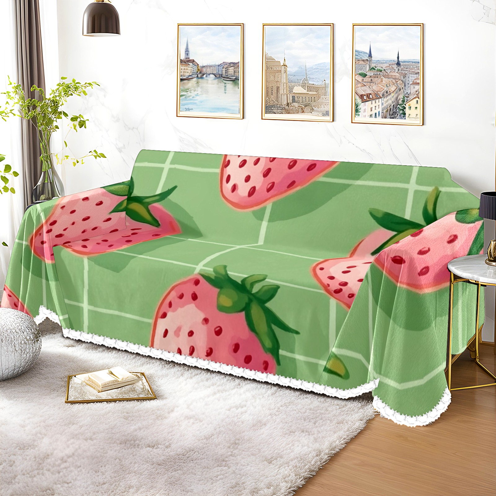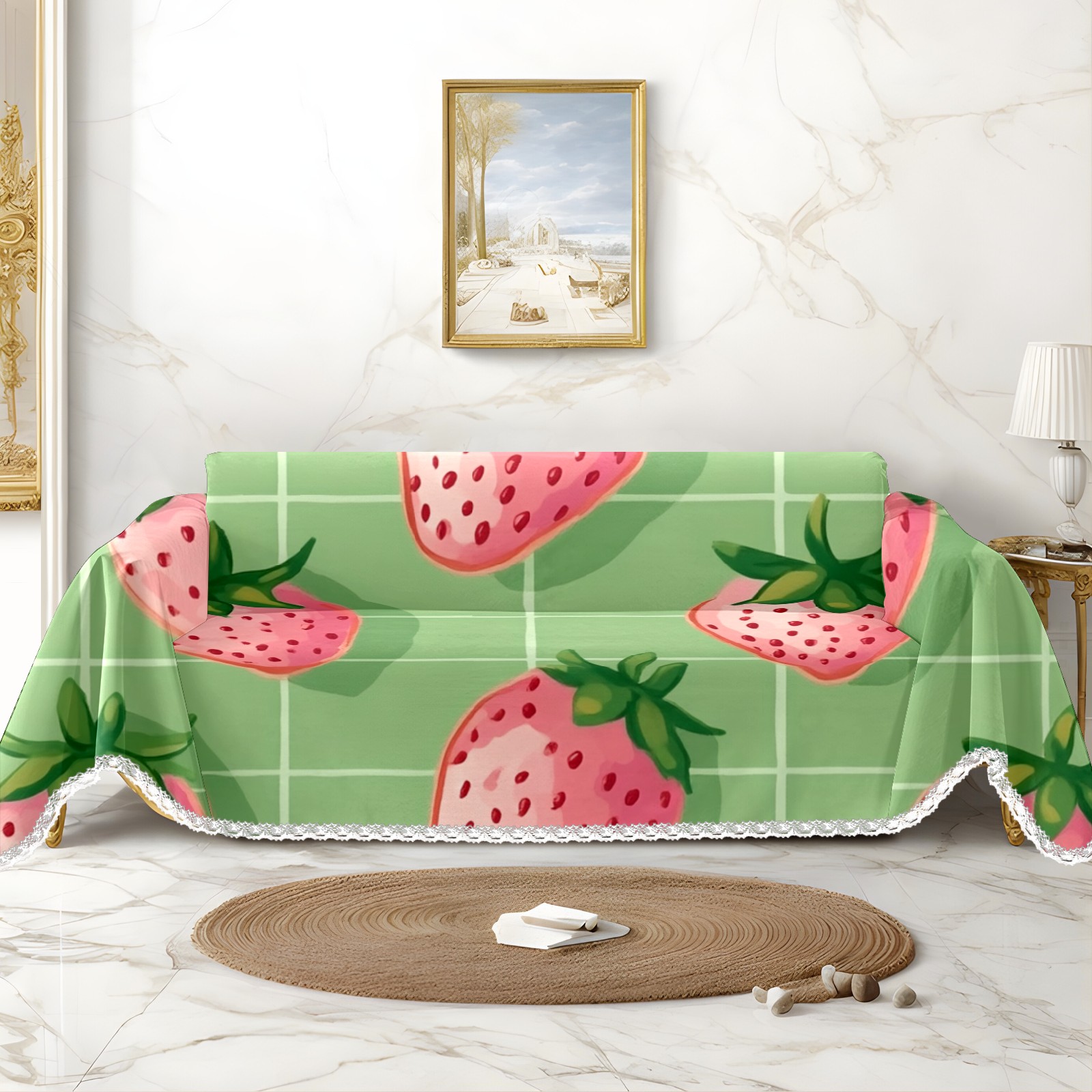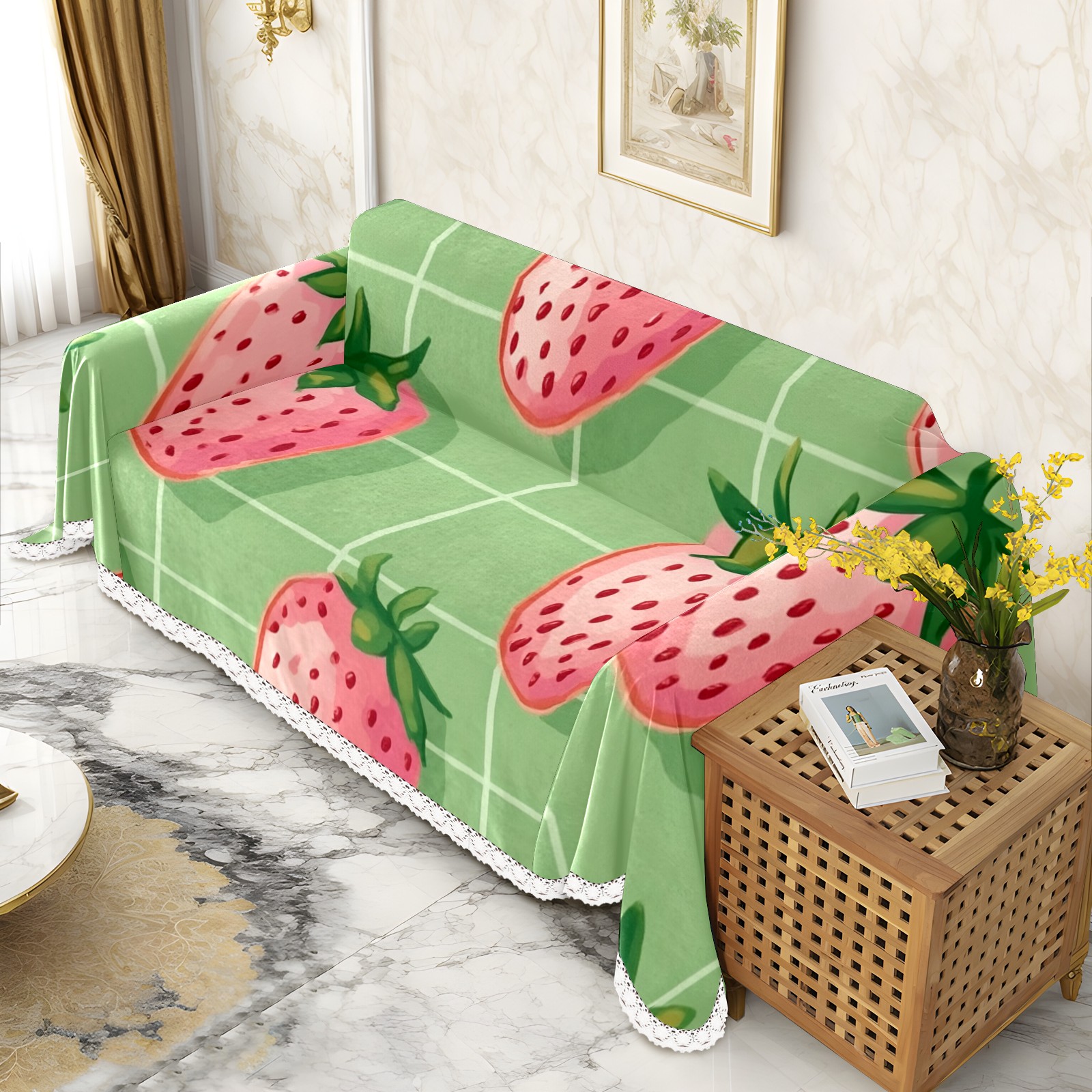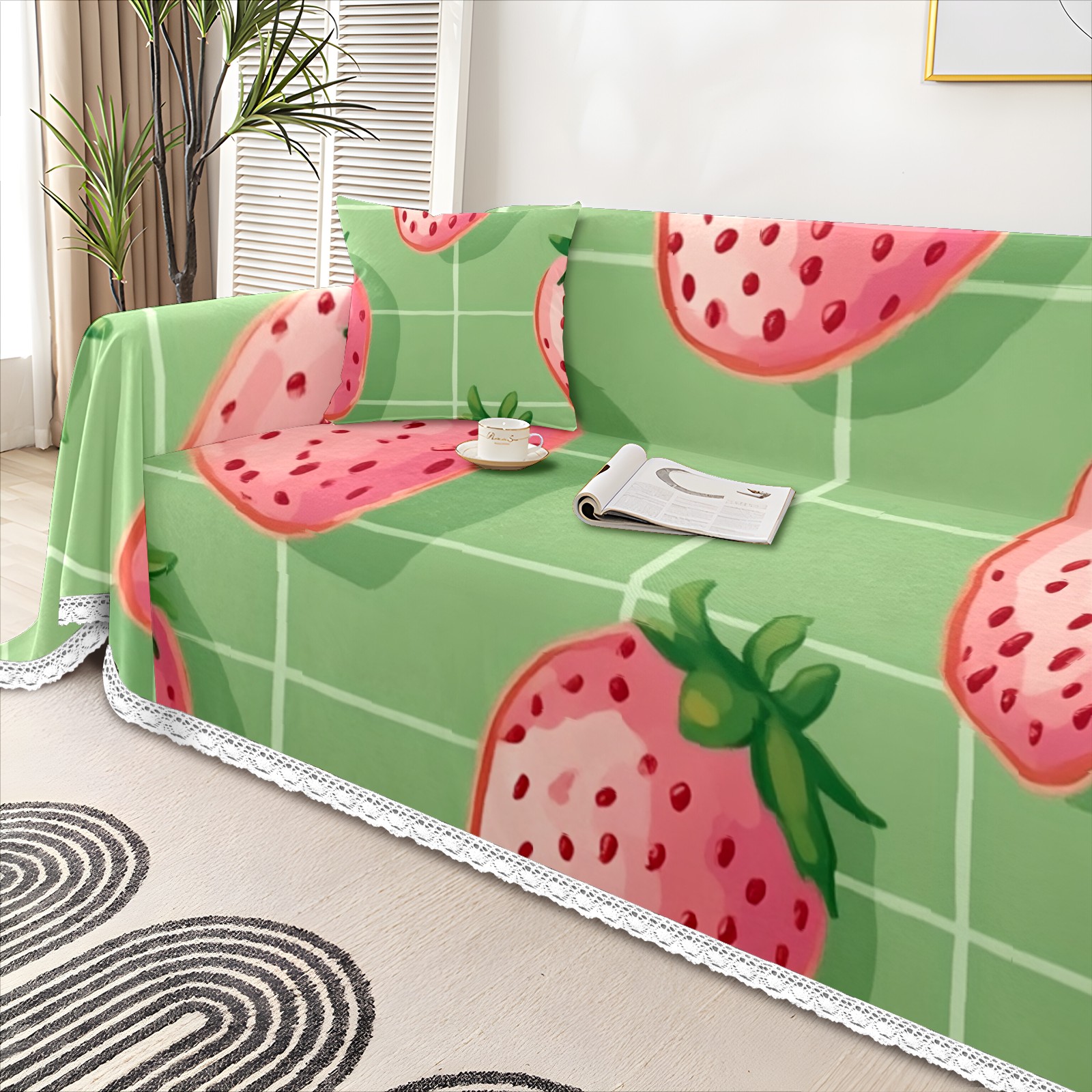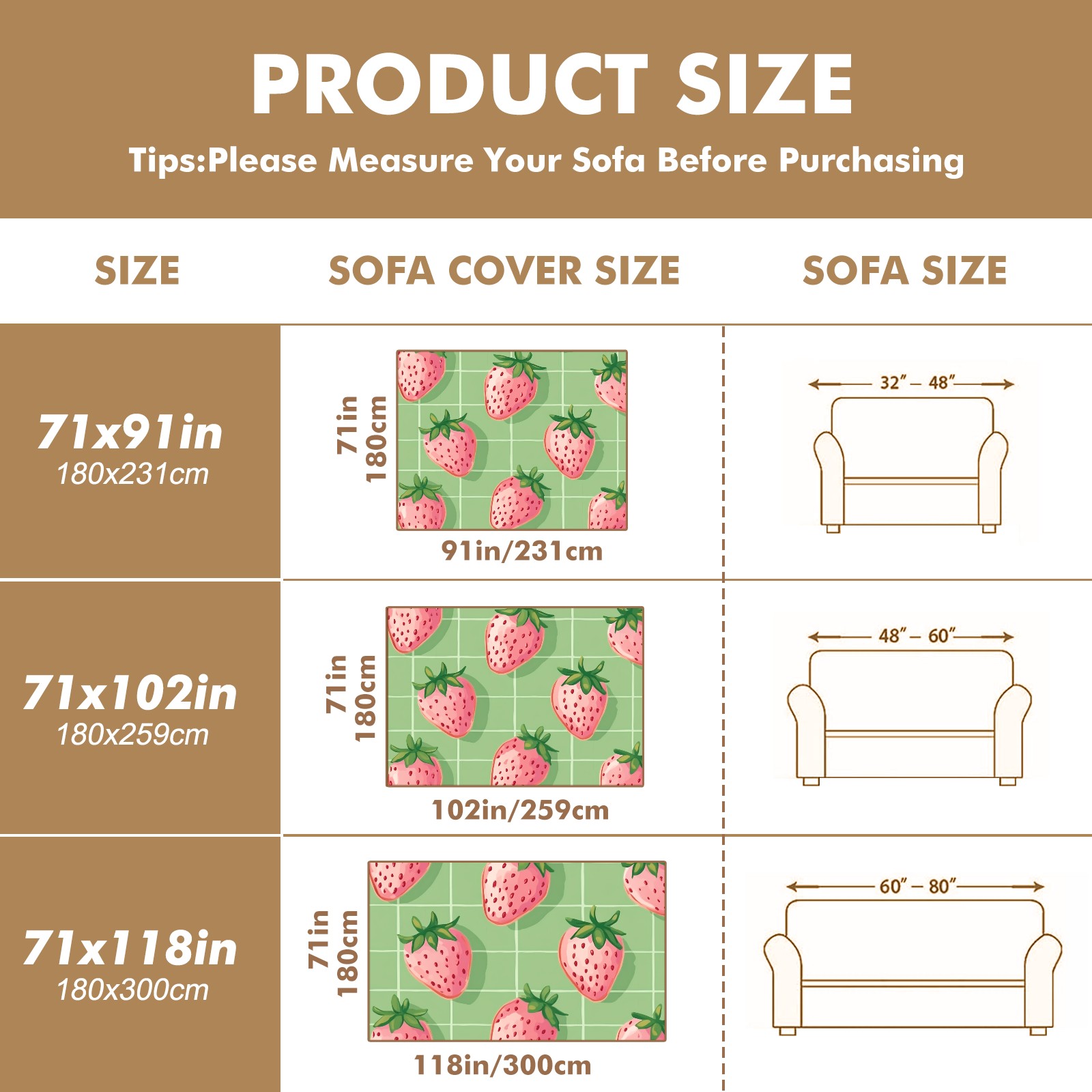 Pink Strawberries Sofa Cover-Soft Poly-Cotton Blend, Machine Washable Couch Protector for Home Decor - 71x91 in Couch Covers