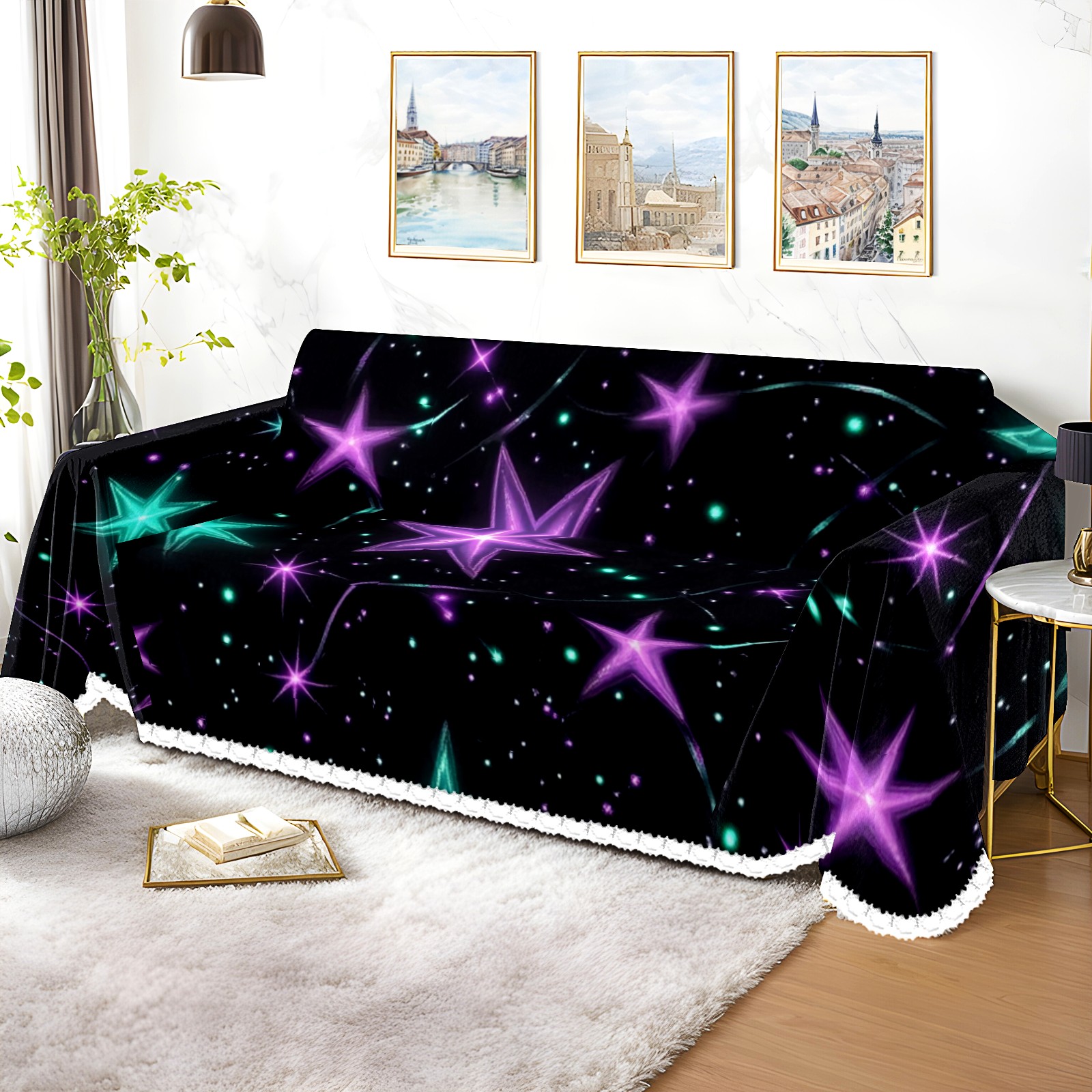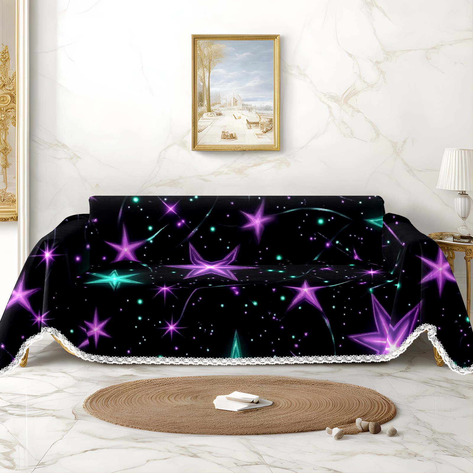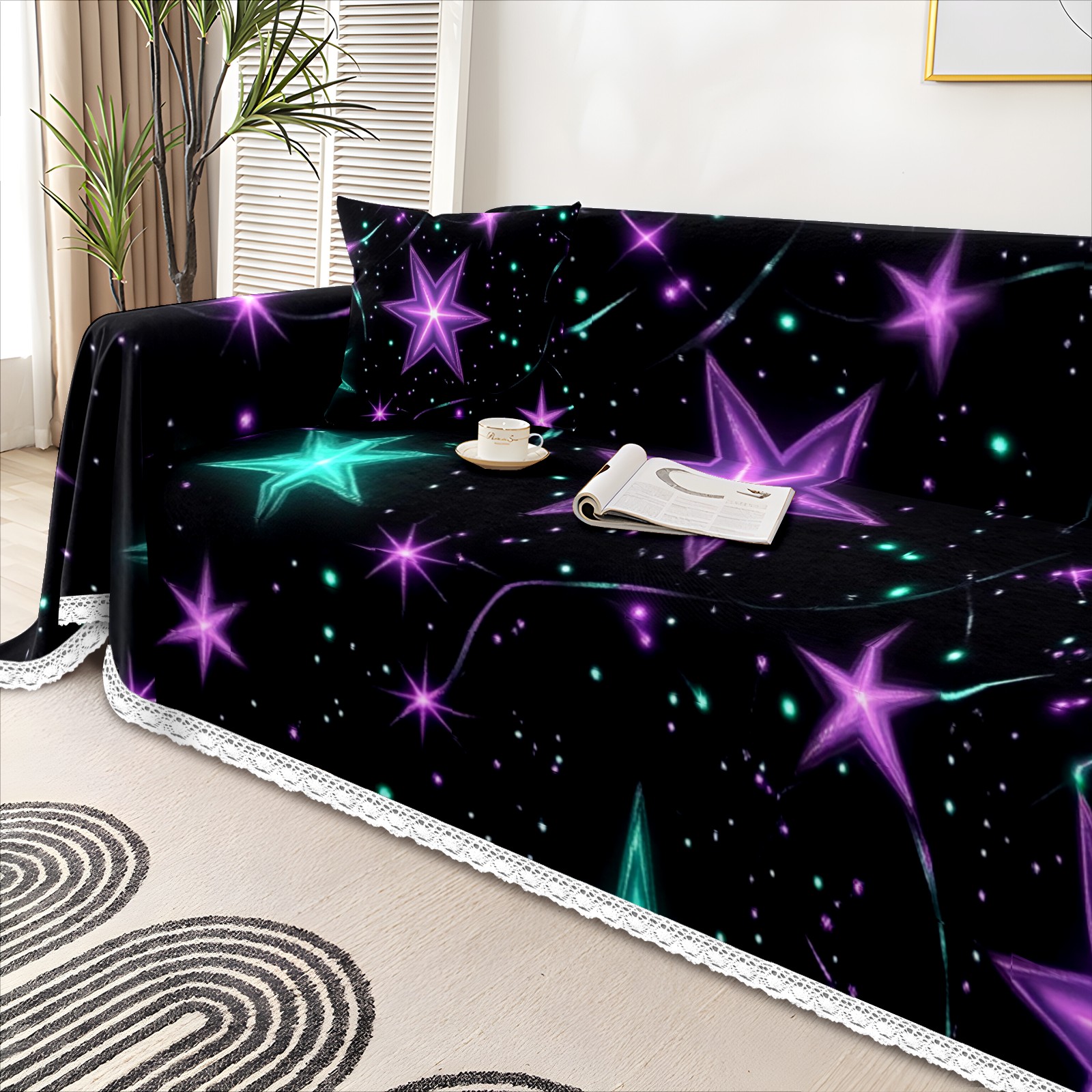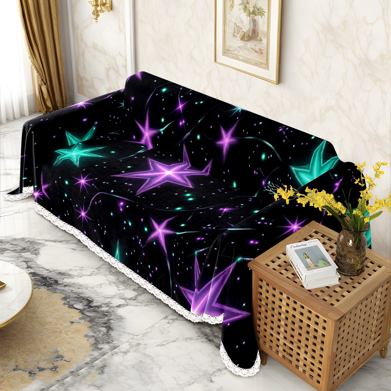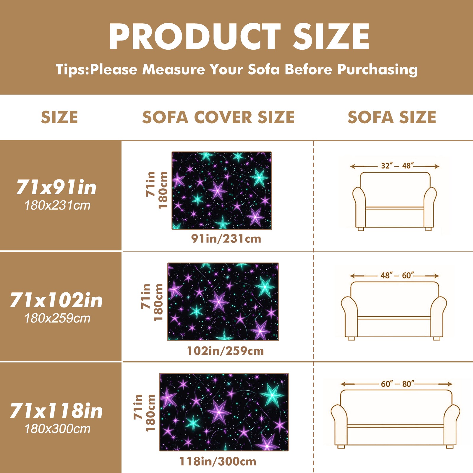 Glowing Purple And Teal Stars Sofa Cover-Soft Poly-Cotton Blend, Machine Washable Couch Protector for Home Decor - 71x91 in Couch Covers
