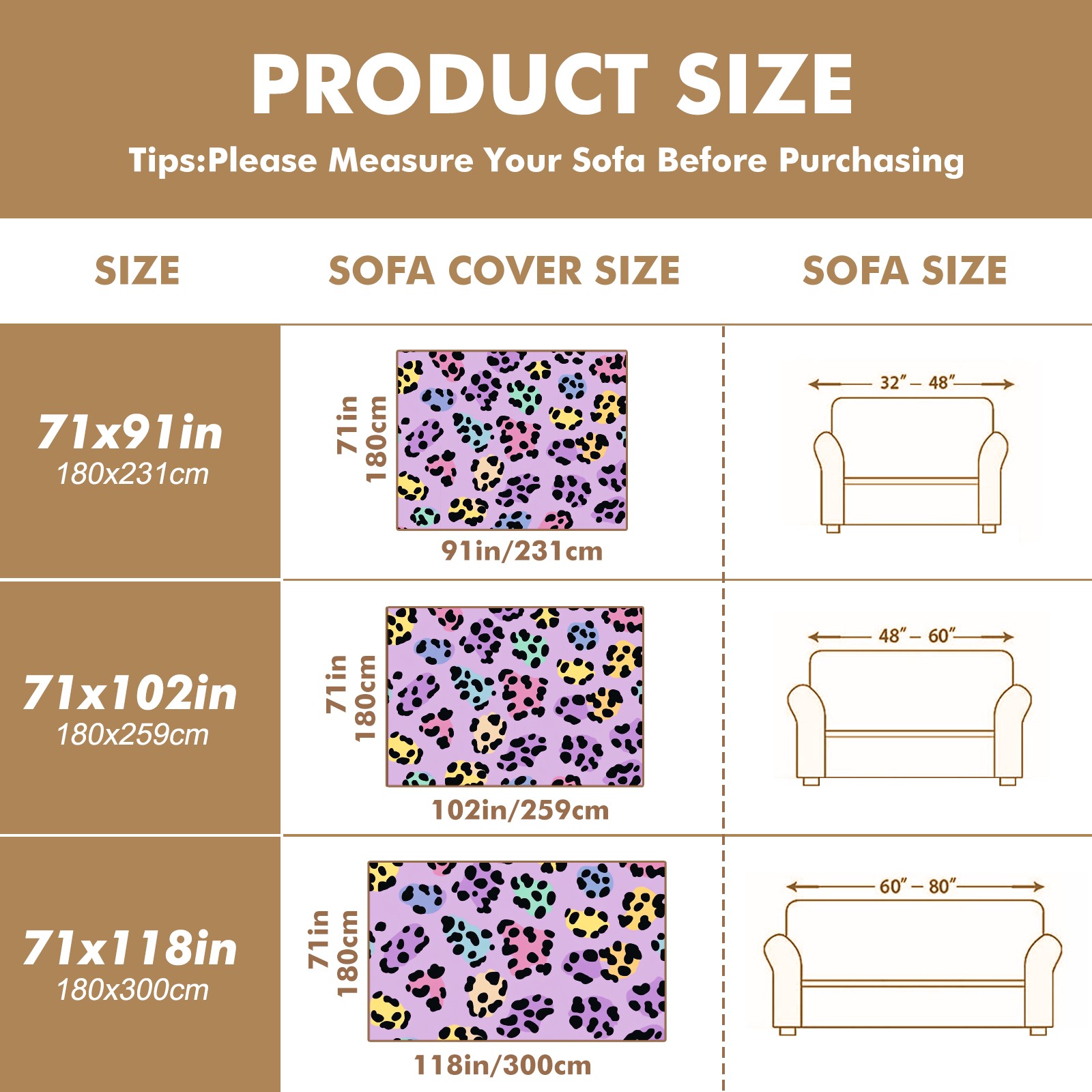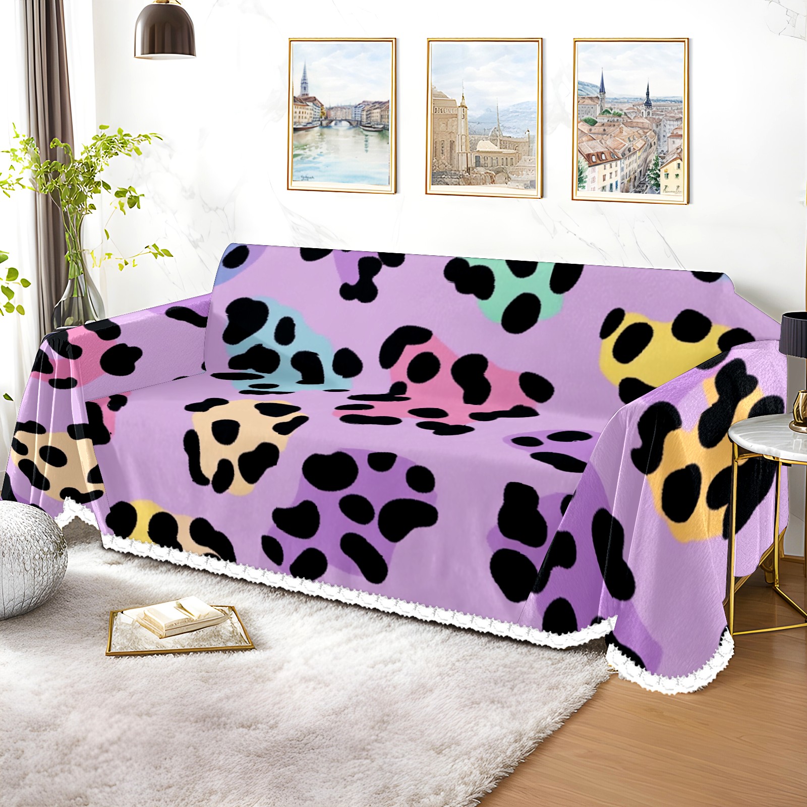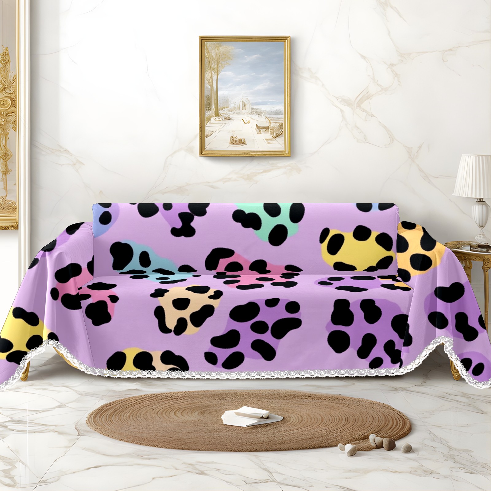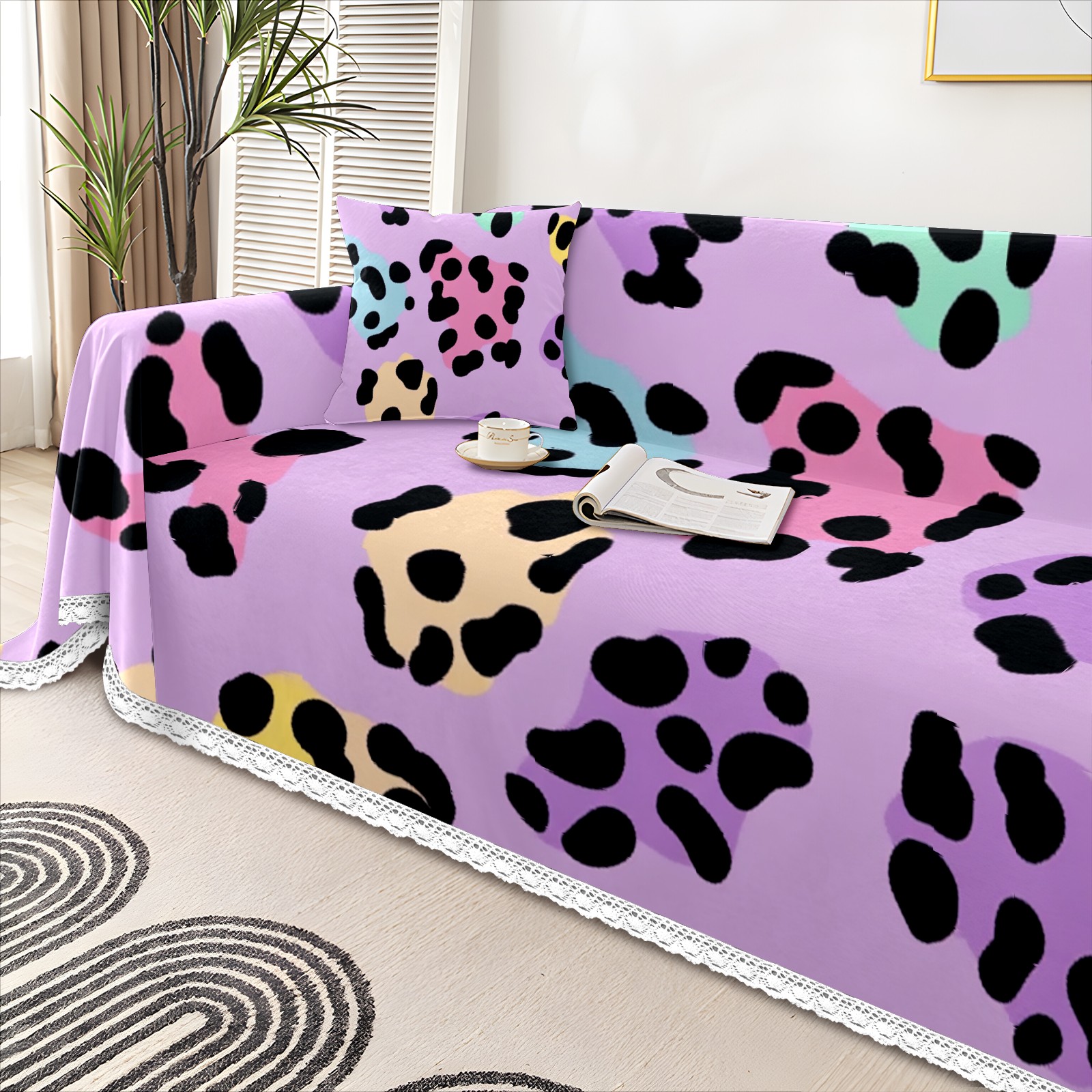 Holographic Leopard Print Sofa Cover-Soft Poly-Cotton Blend, Machine Washable Couch Protector for Home Decor - 71x91 in Couch Covers