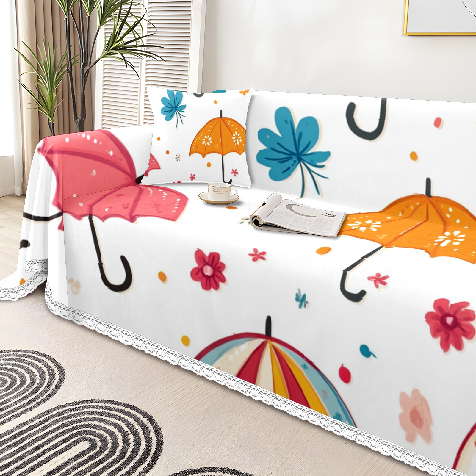 Umbrellas Pattern Sofa Cover-Soft Poly-Cotton Blend, Machine Washable Couch Protector for Home Decor - 71x91 in Couch Covers