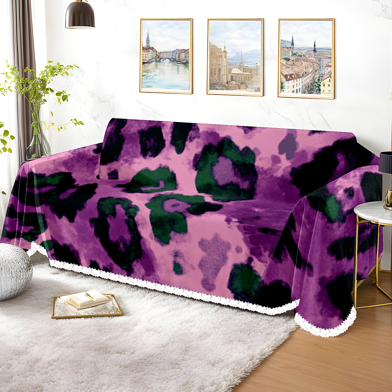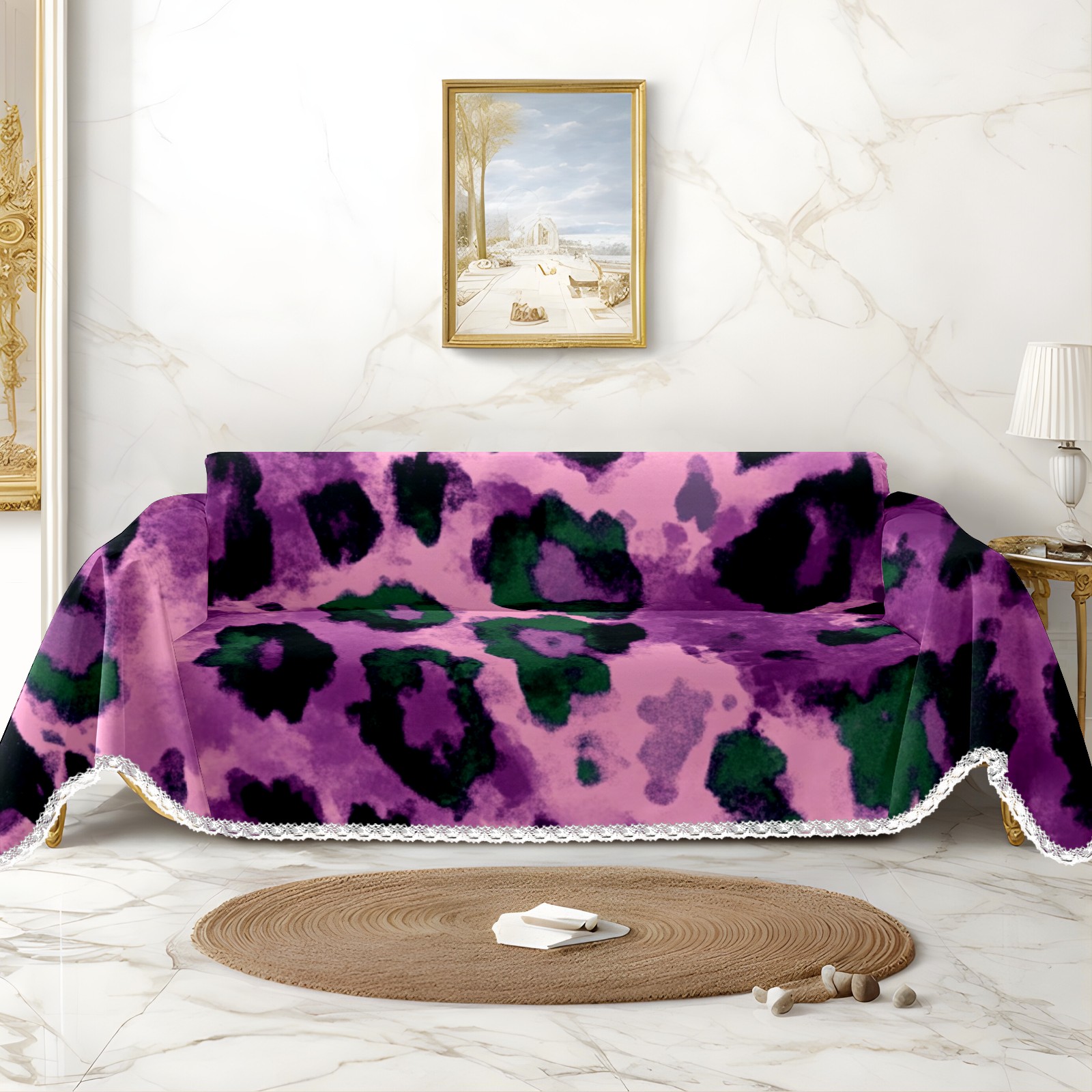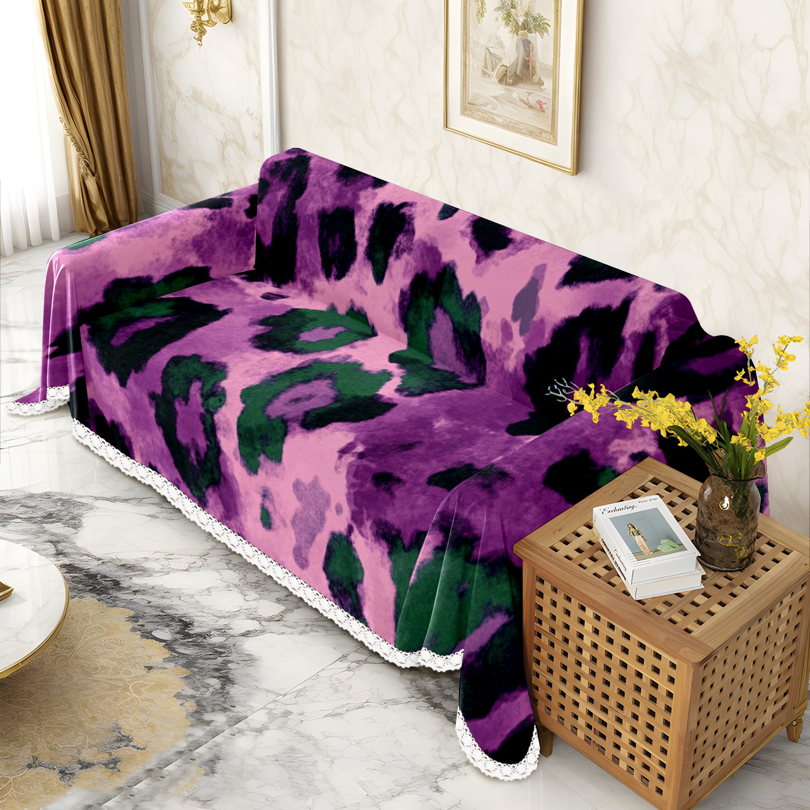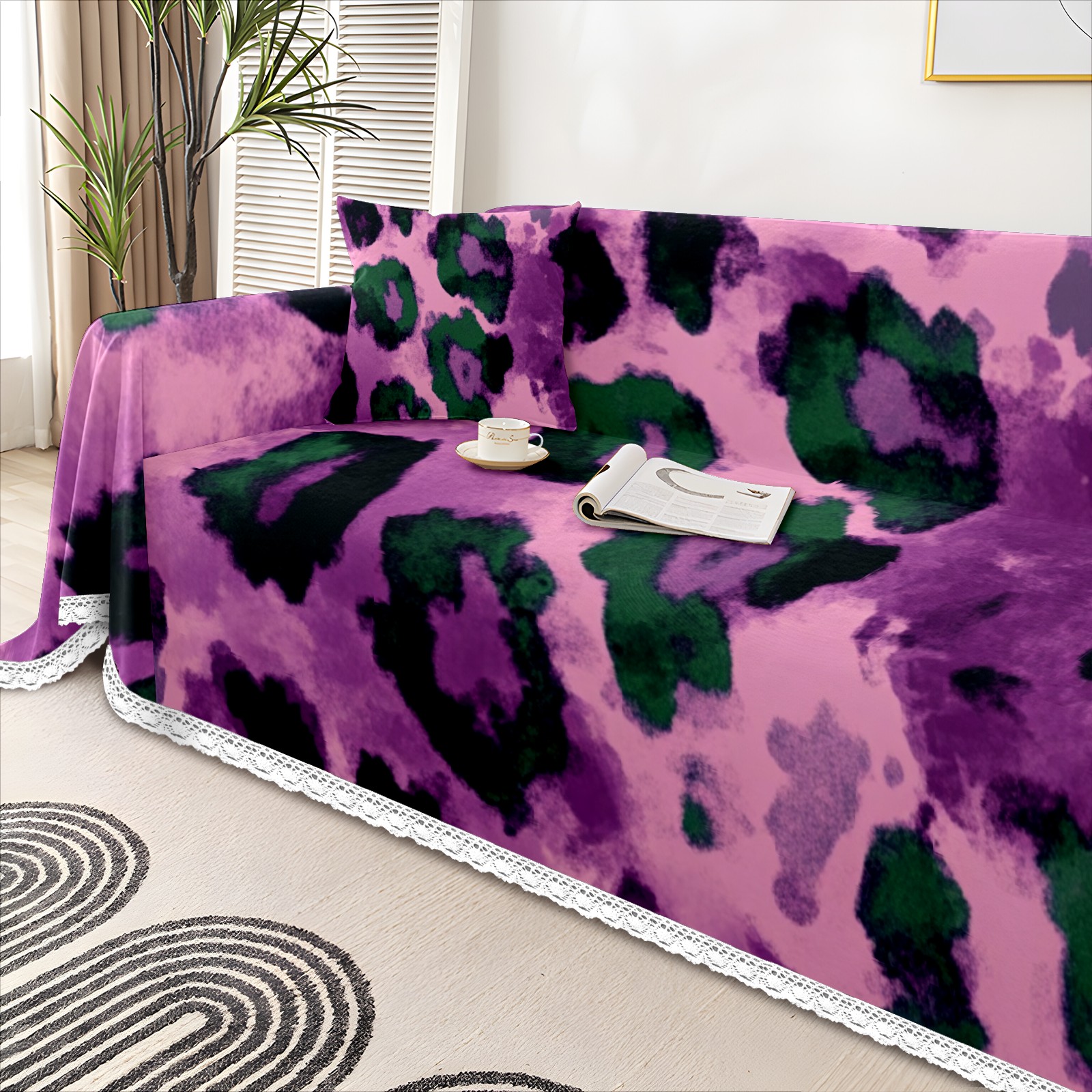 Purple And Green Leopard Print Sofa Cover-Soft Poly-Cotton Blend, Machine Washable Couch Protector for Home Decor - 71x91 in Couch Covers