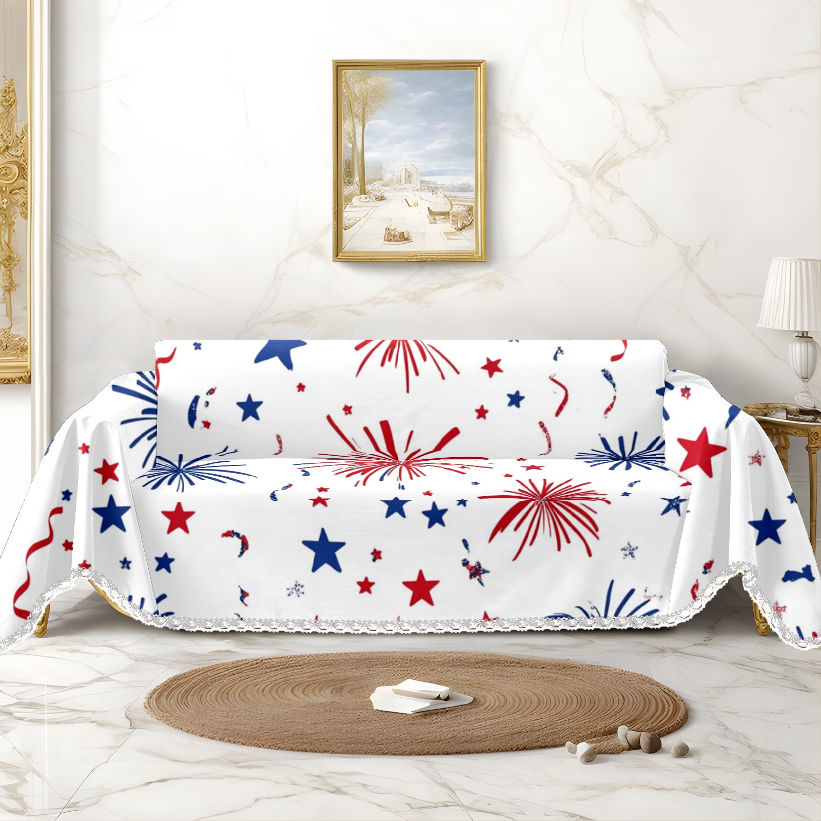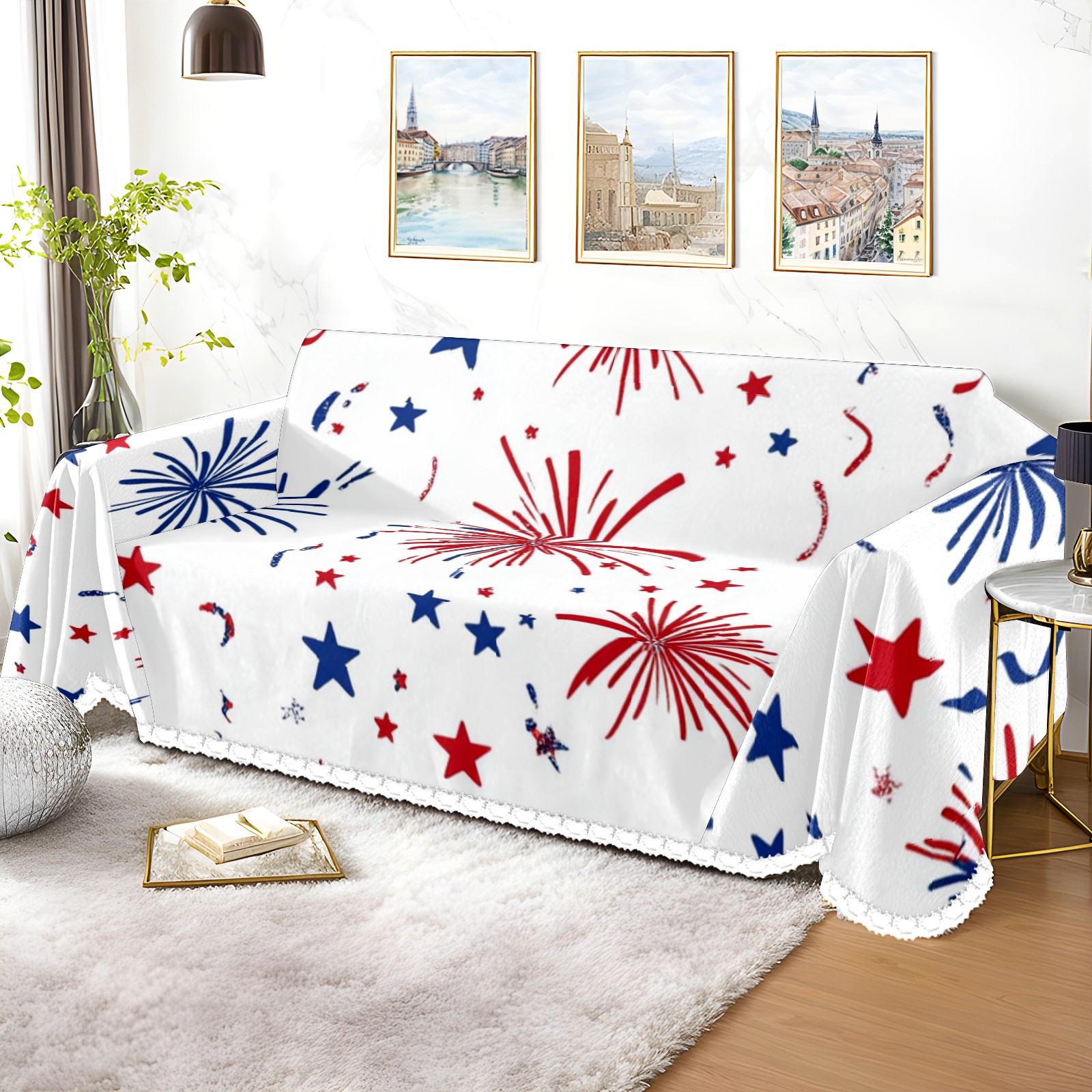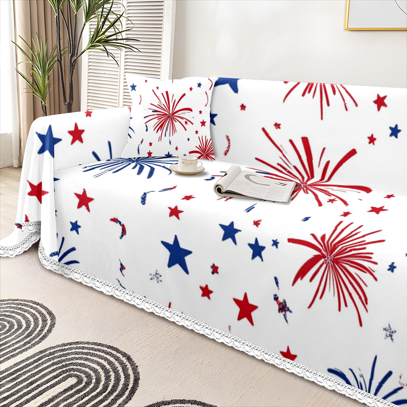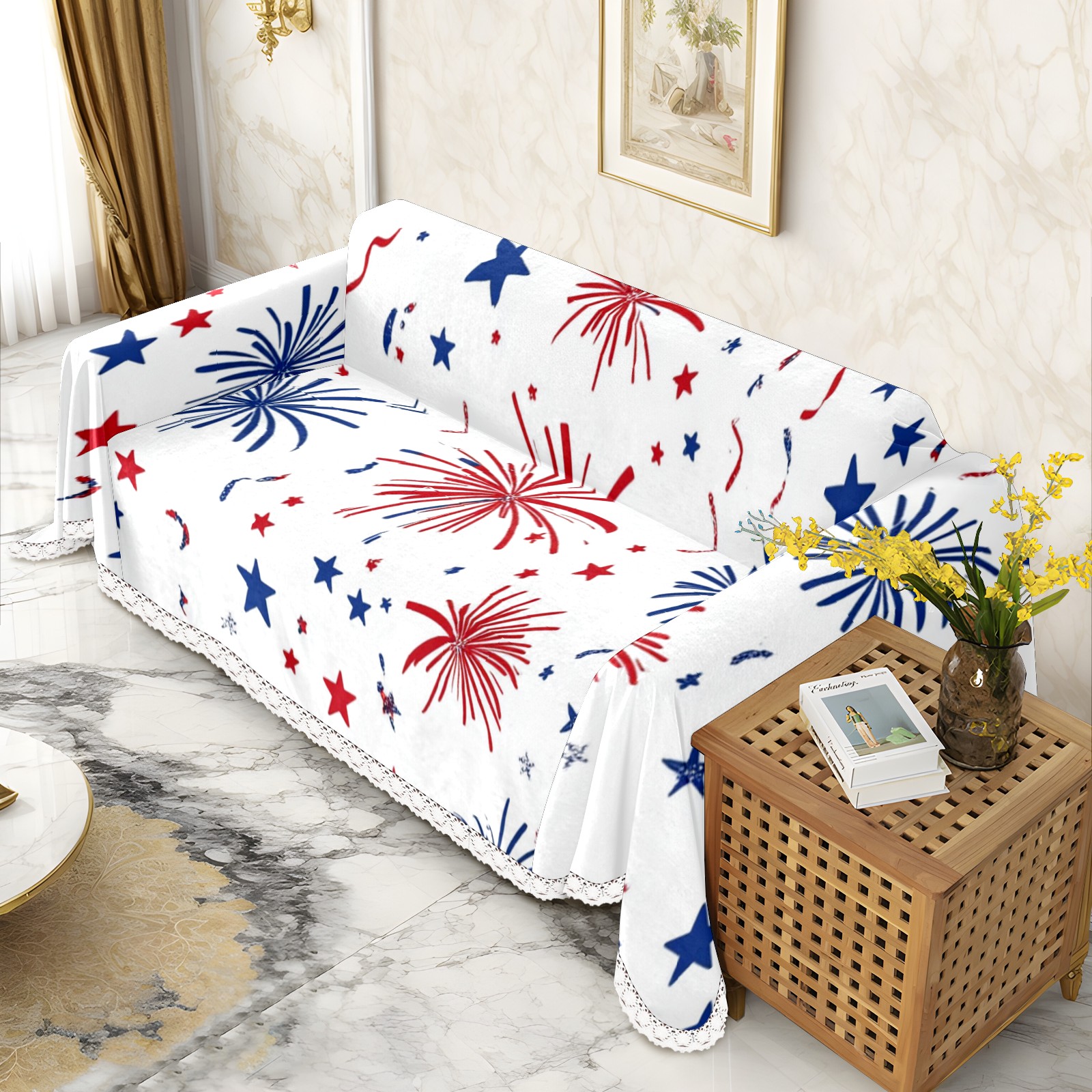 Red And Blue Firework Sofa Cover-Soft Poly-Cotton Blend, Machine Washable Couch Protector for Home Decor - 71x91 in Couch Covers