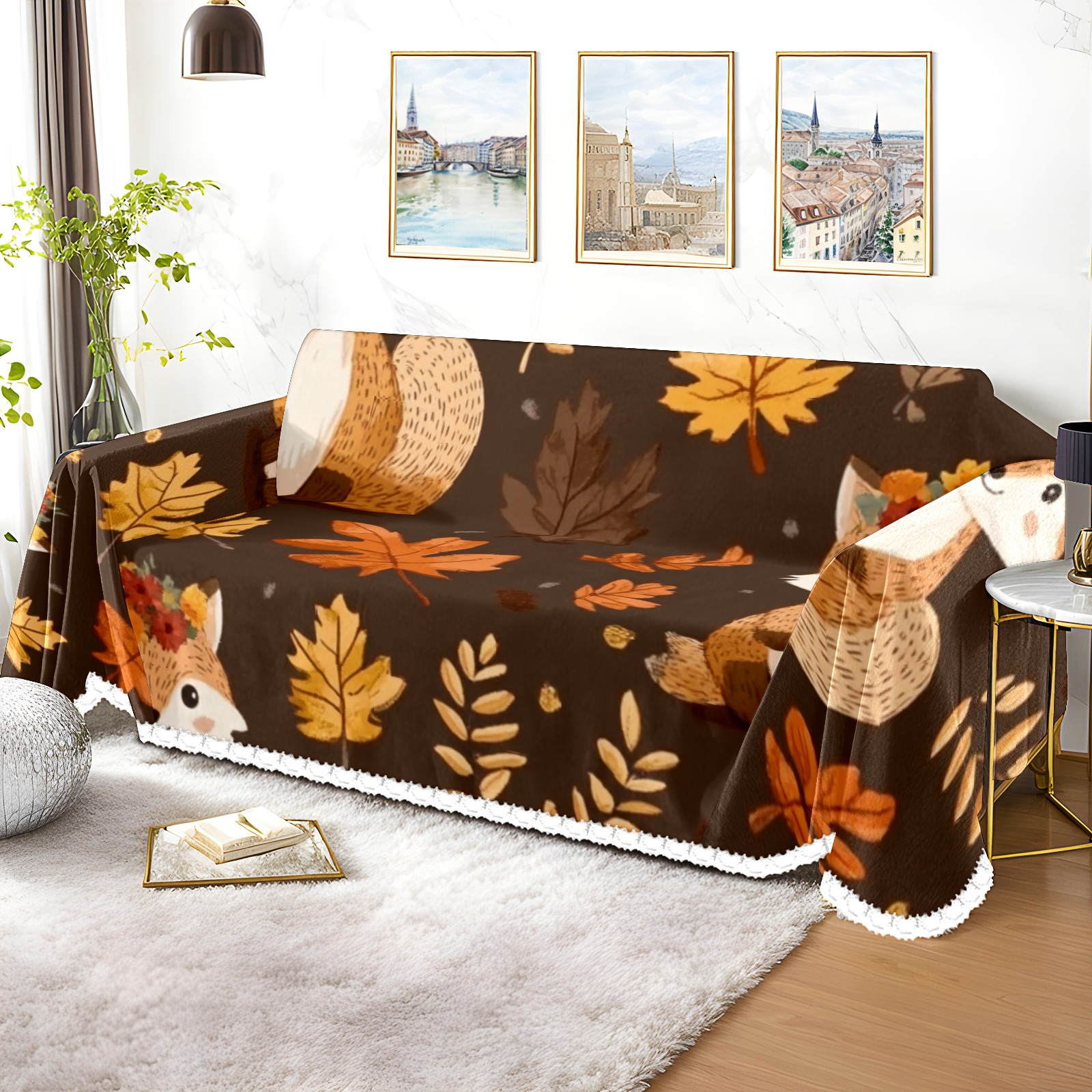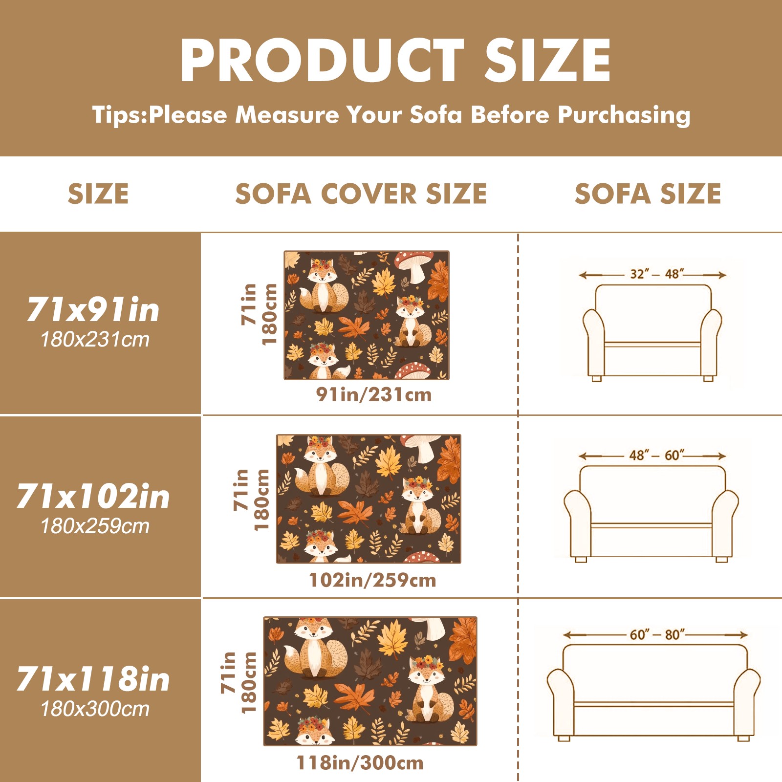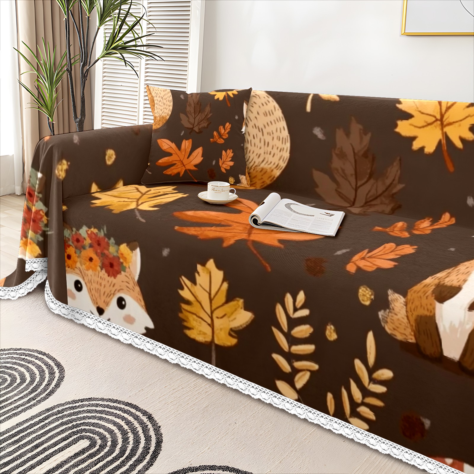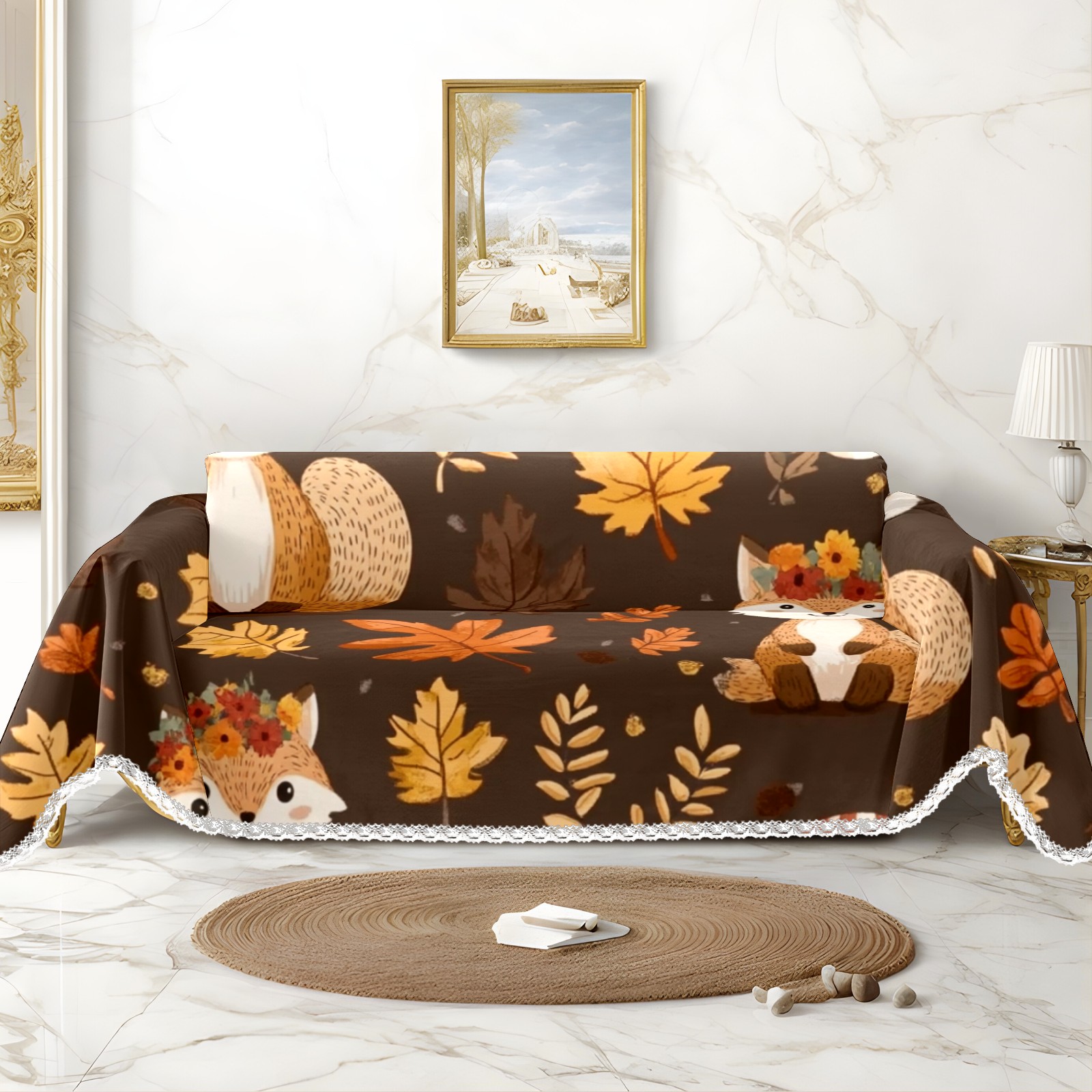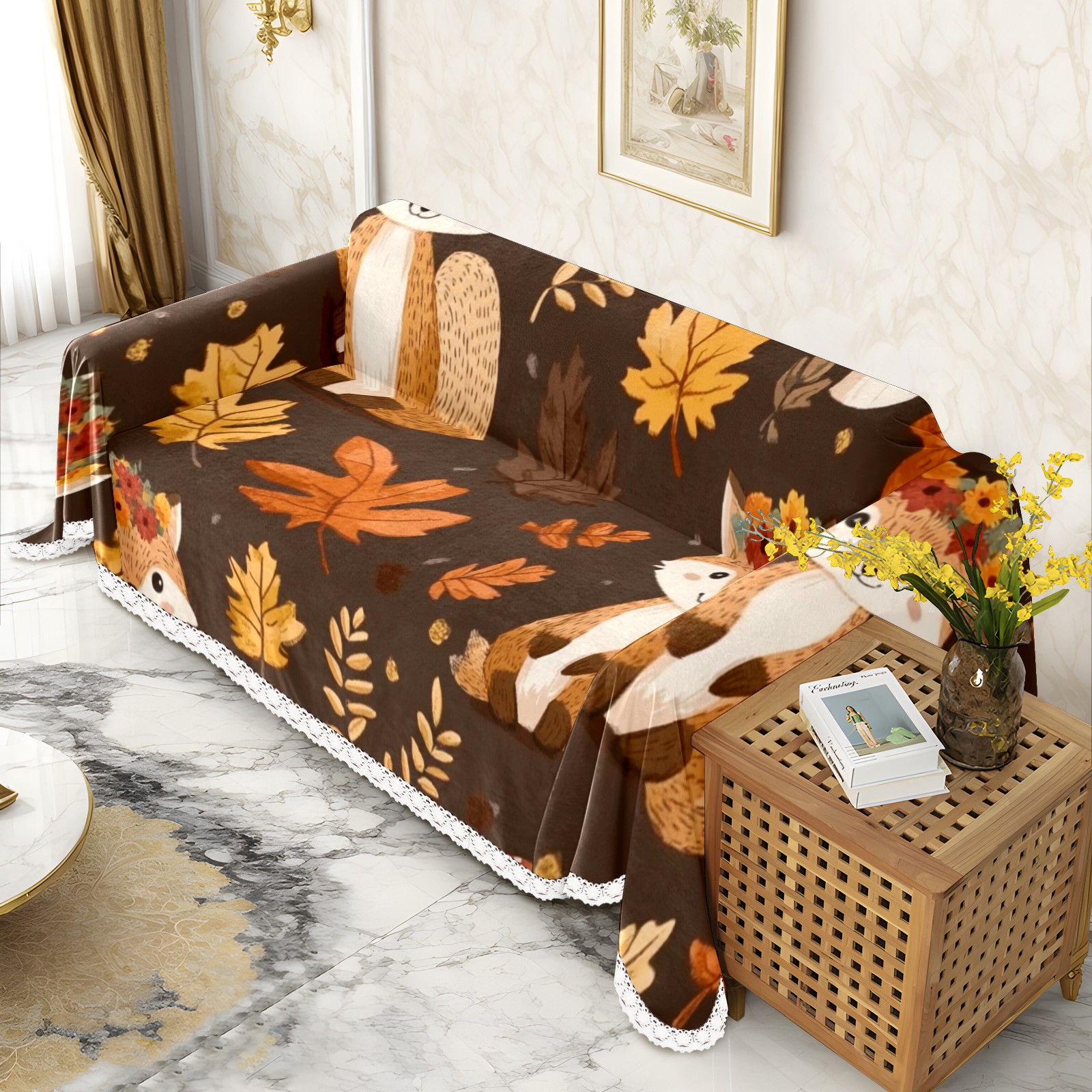 Woodland Animal Sofa Cover-Soft Poly-Cotton Blend, Machine Washable Couch Protector for Home Decor - 71x91 in Couch Covers