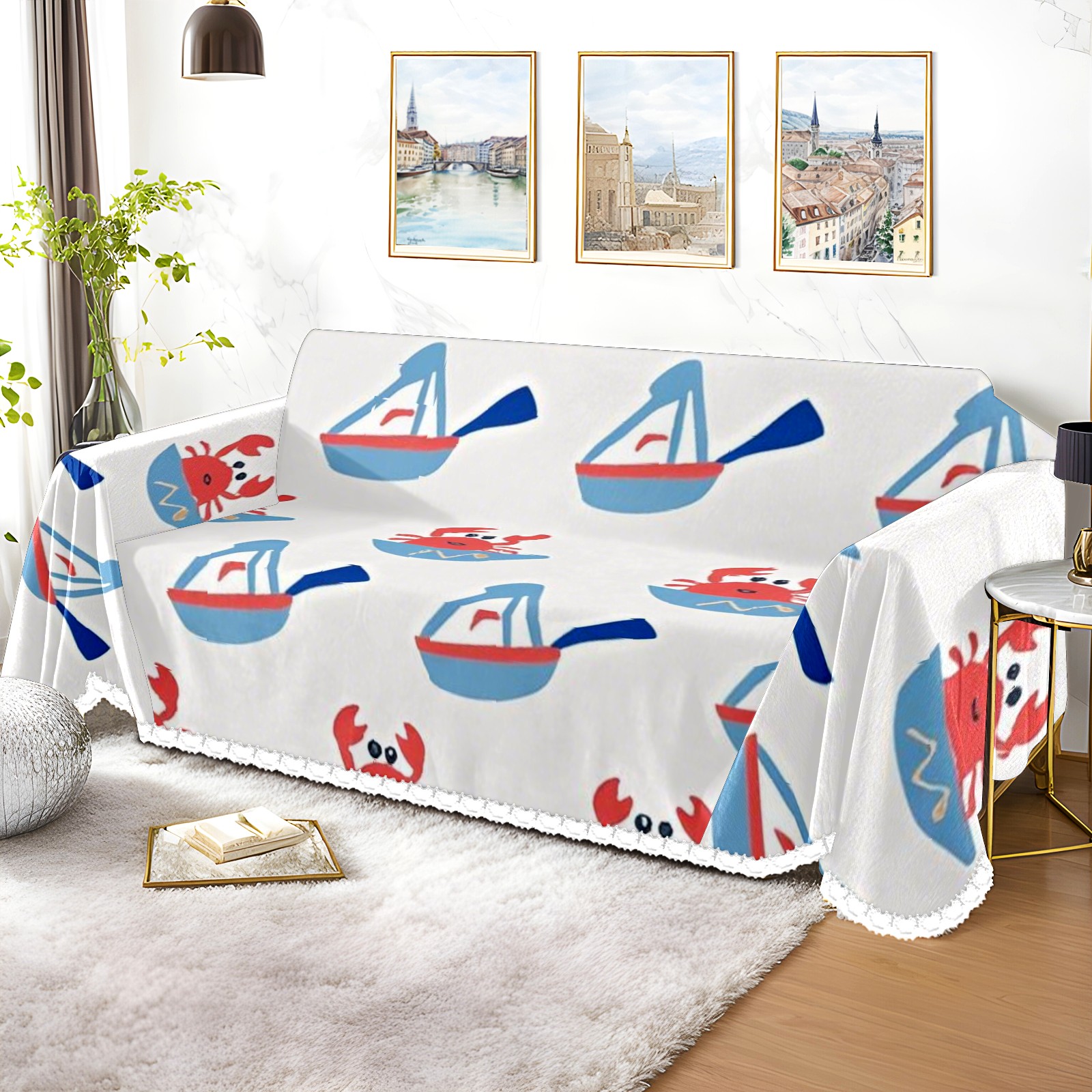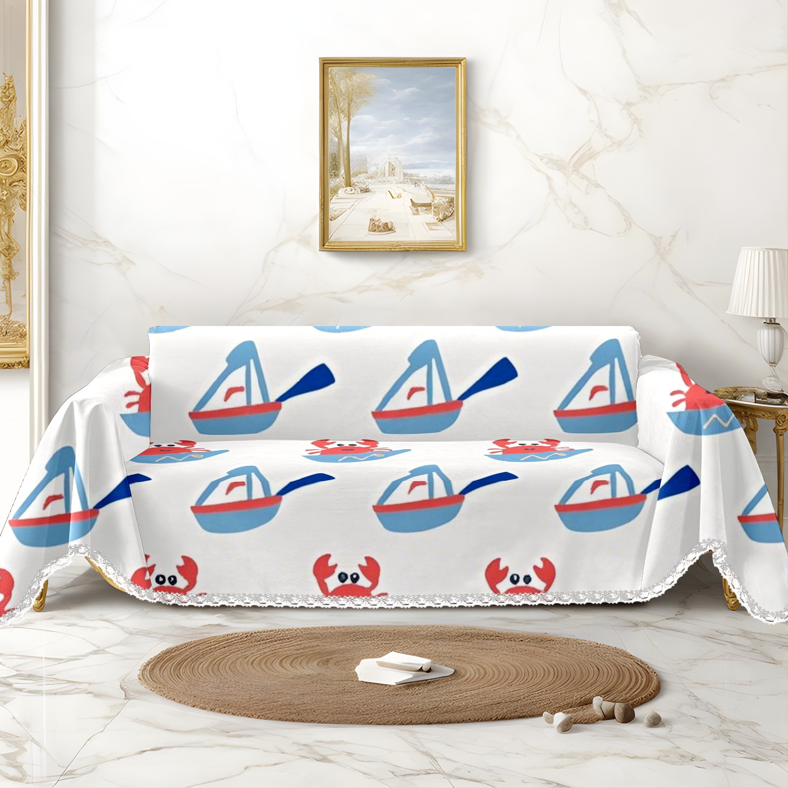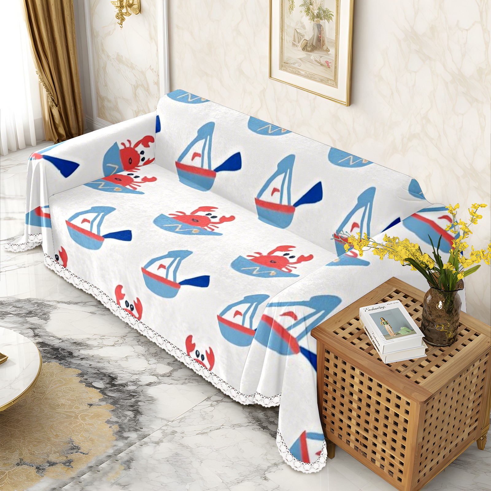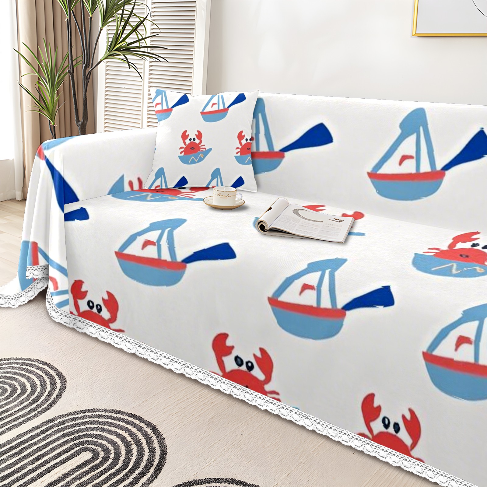 Marine Life Sofa Cover-Soft Poly-Cotton Blend, Machine Washable Couch Protector for Home Decor - 71x91 in Couch Covers
