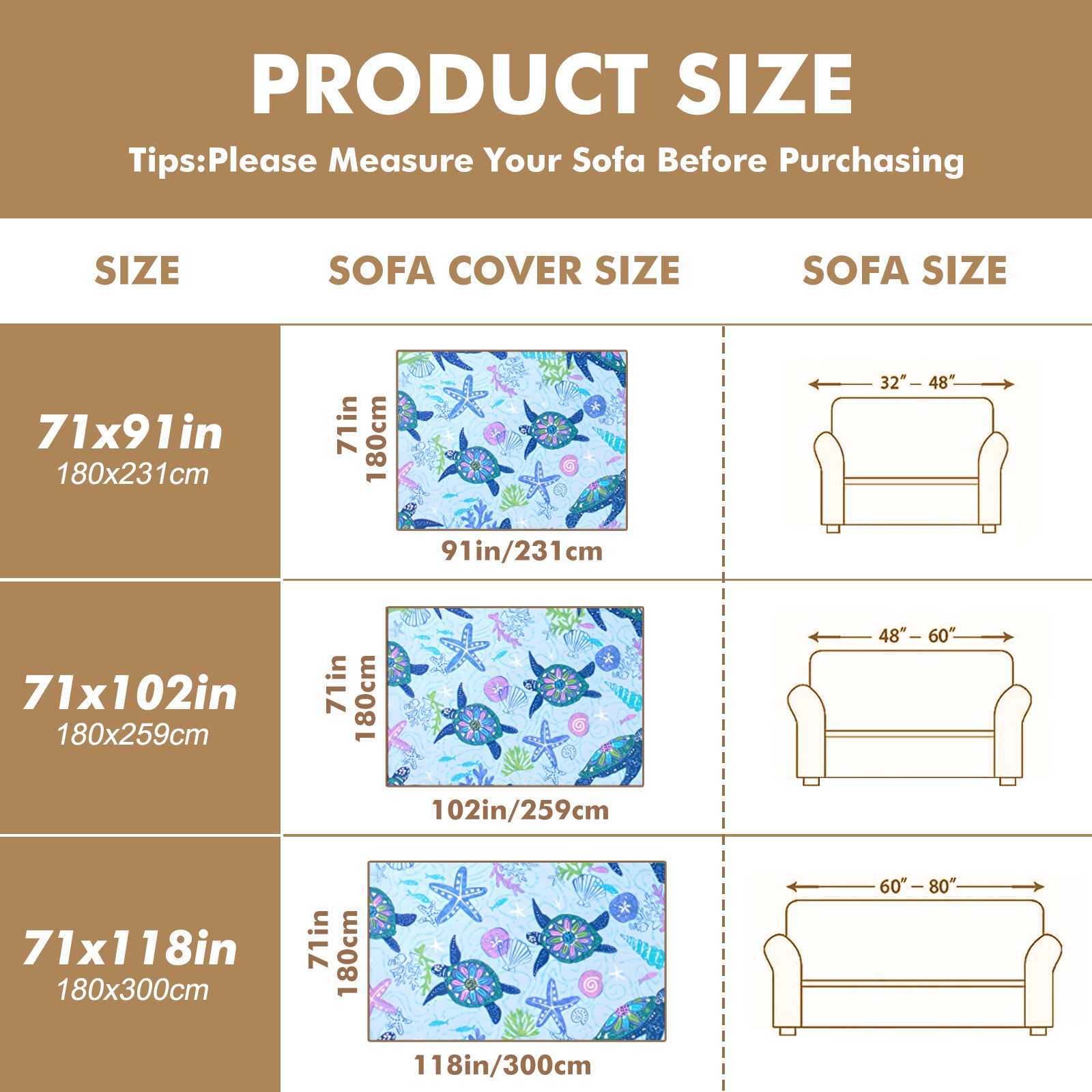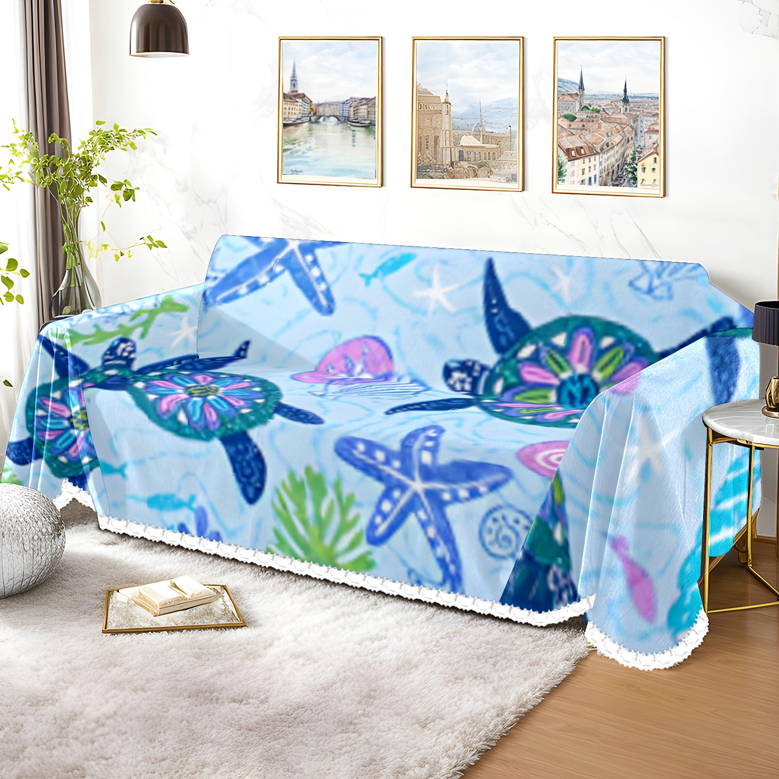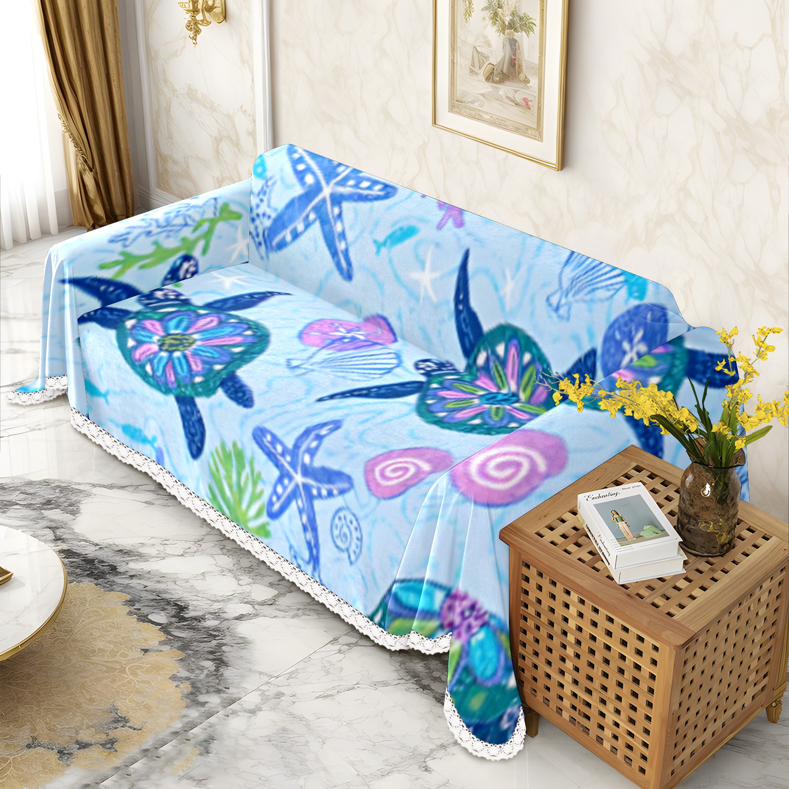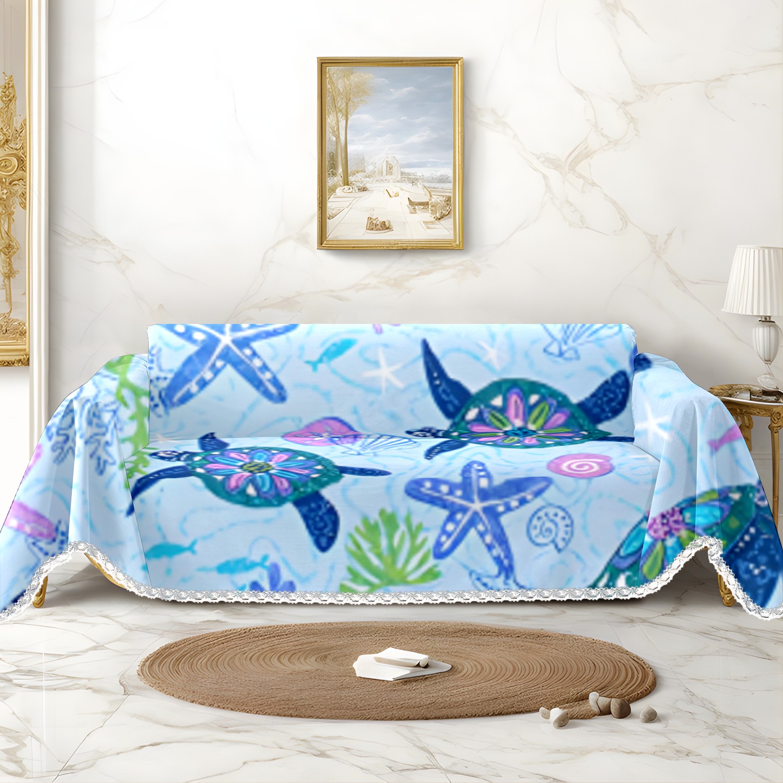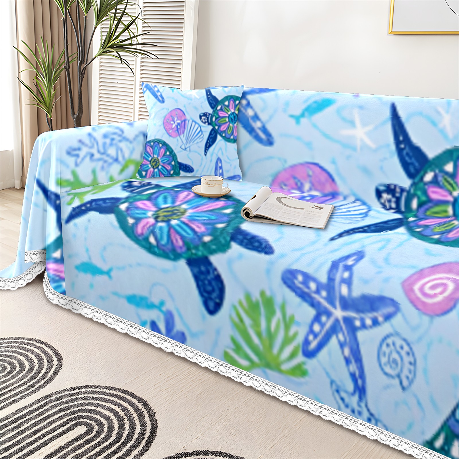 Turtle Sofa Cover-Soft Poly-Cotton Blend, Machine Washable Couch Protector for Home Decor - 71x91 in Couch Covers
