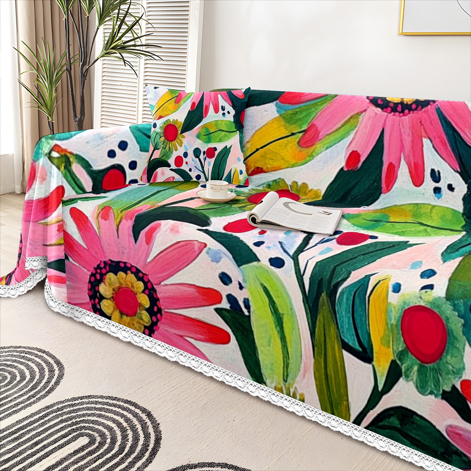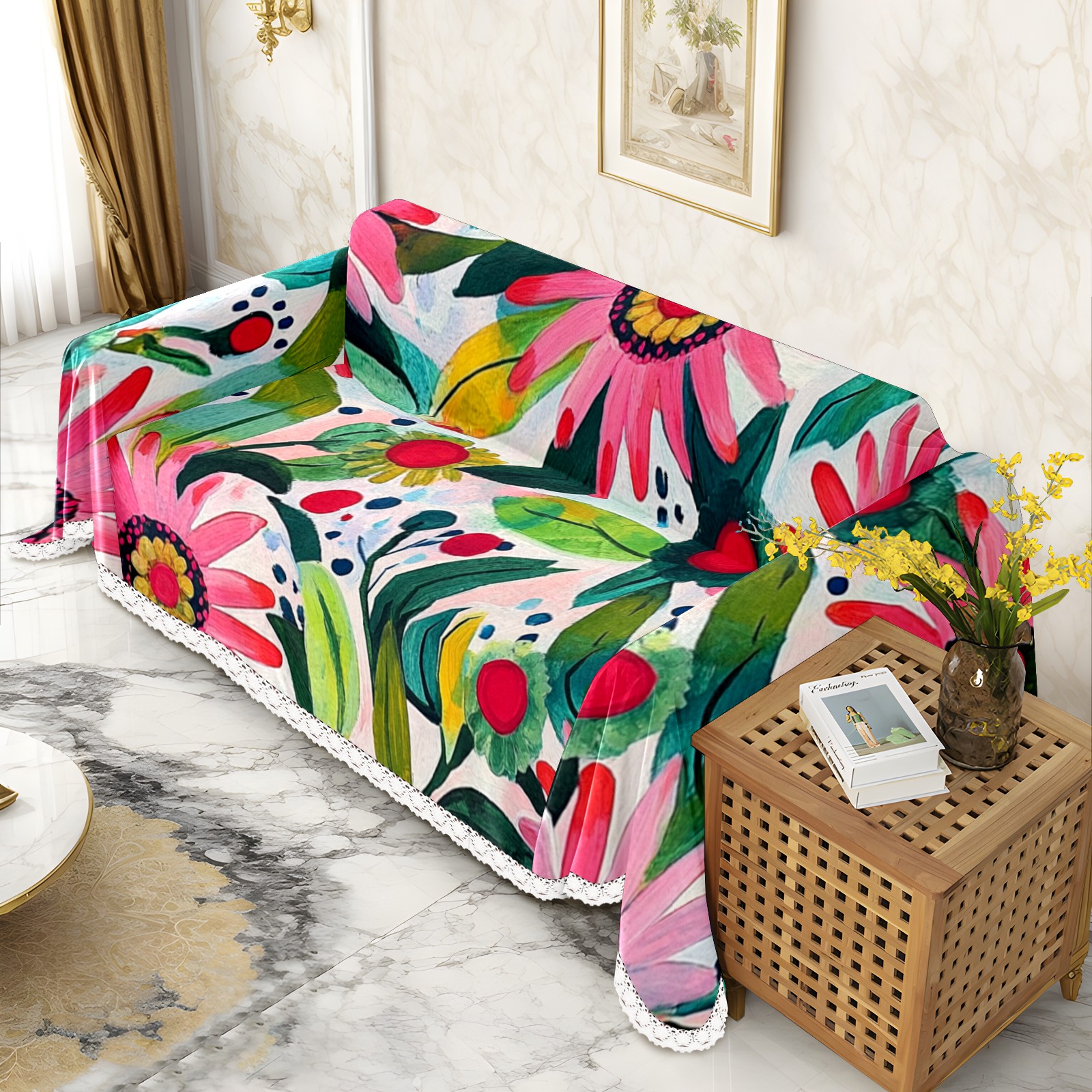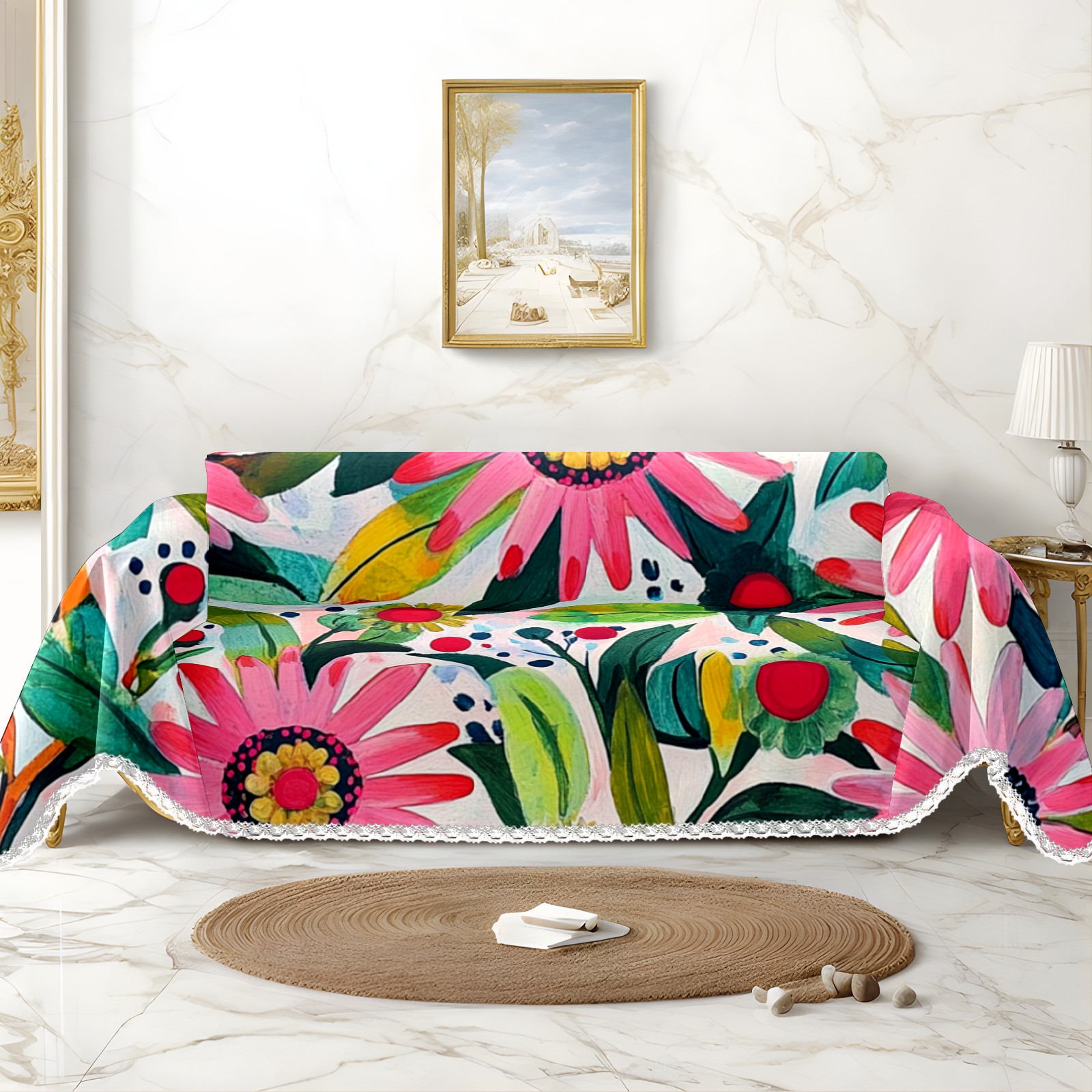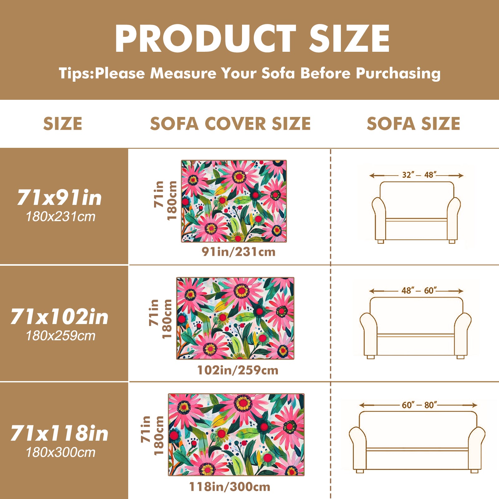 Flowers6 Sofa Cover-Soft Poly-Cotton Blend, Machine Washable Couch Protector for Home Decor - 71x91 in Couch Covers