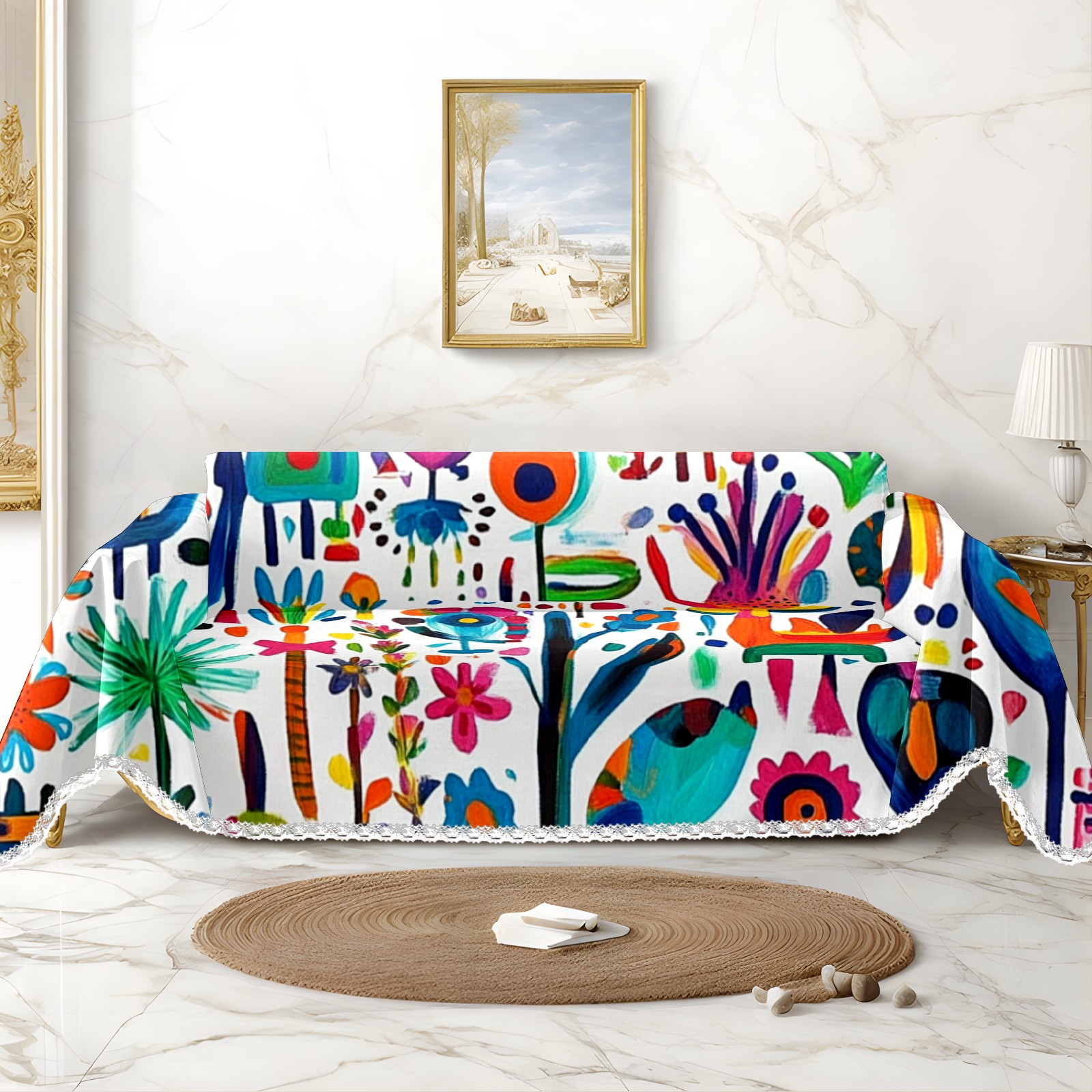 Flowers9 Sofa Cover-Soft Poly-Cotton Blend, Machine Washable Couch Protector for Home Decor - 71x91 in Couch Covers