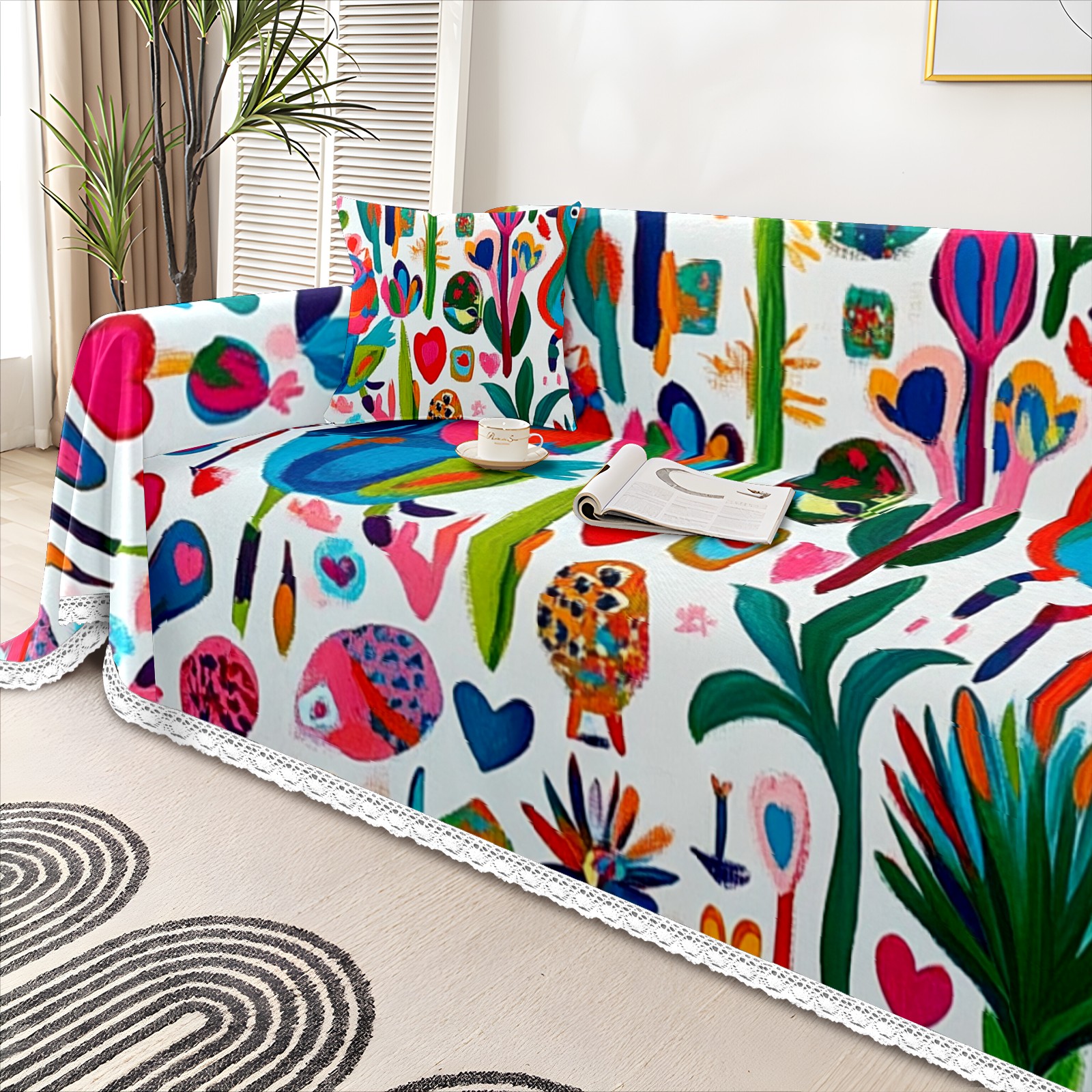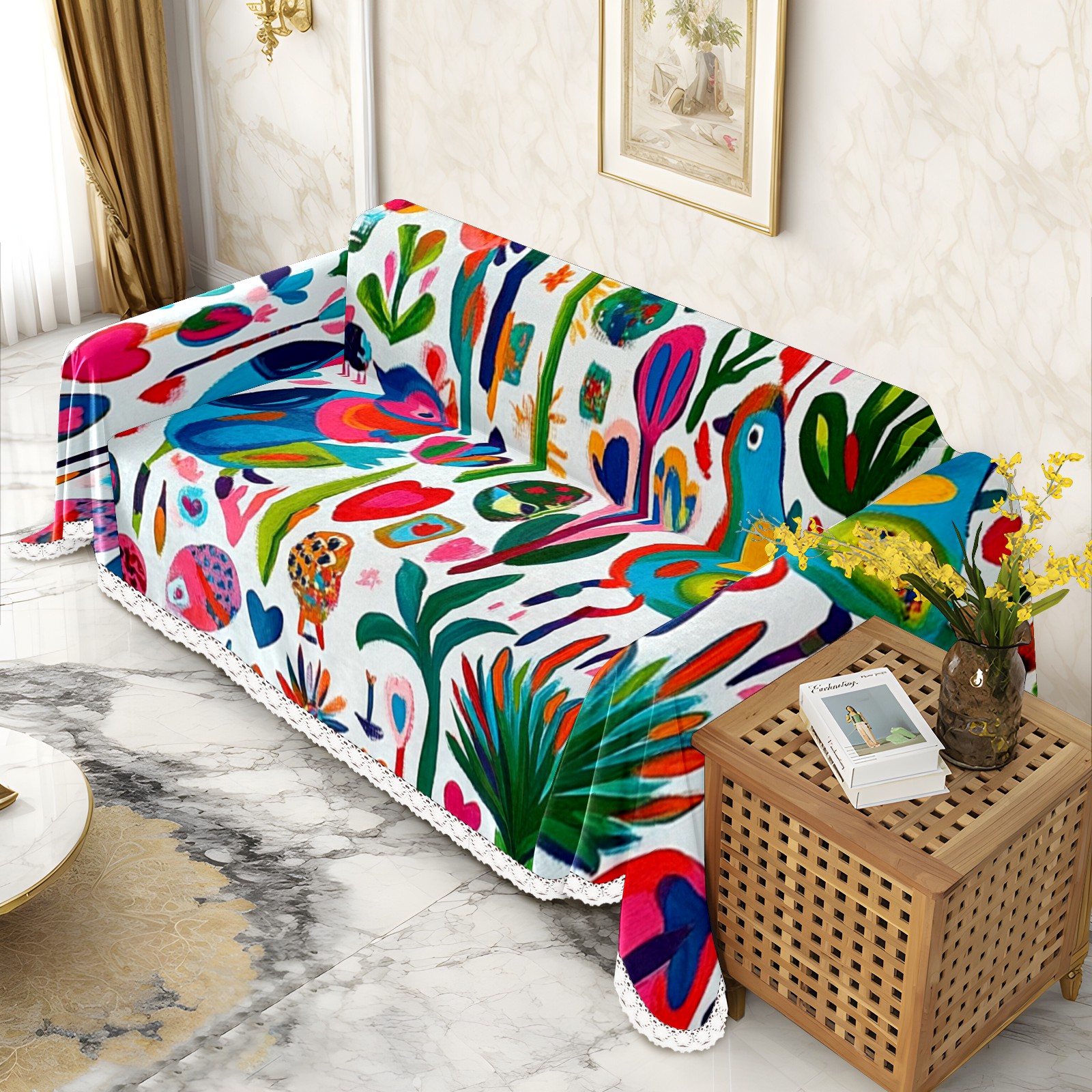 Flowers11 Sofa Cover-Soft Poly-Cotton Blend, Machine Washable Couch Protector for Home Decor - 71x91 in Couch Covers