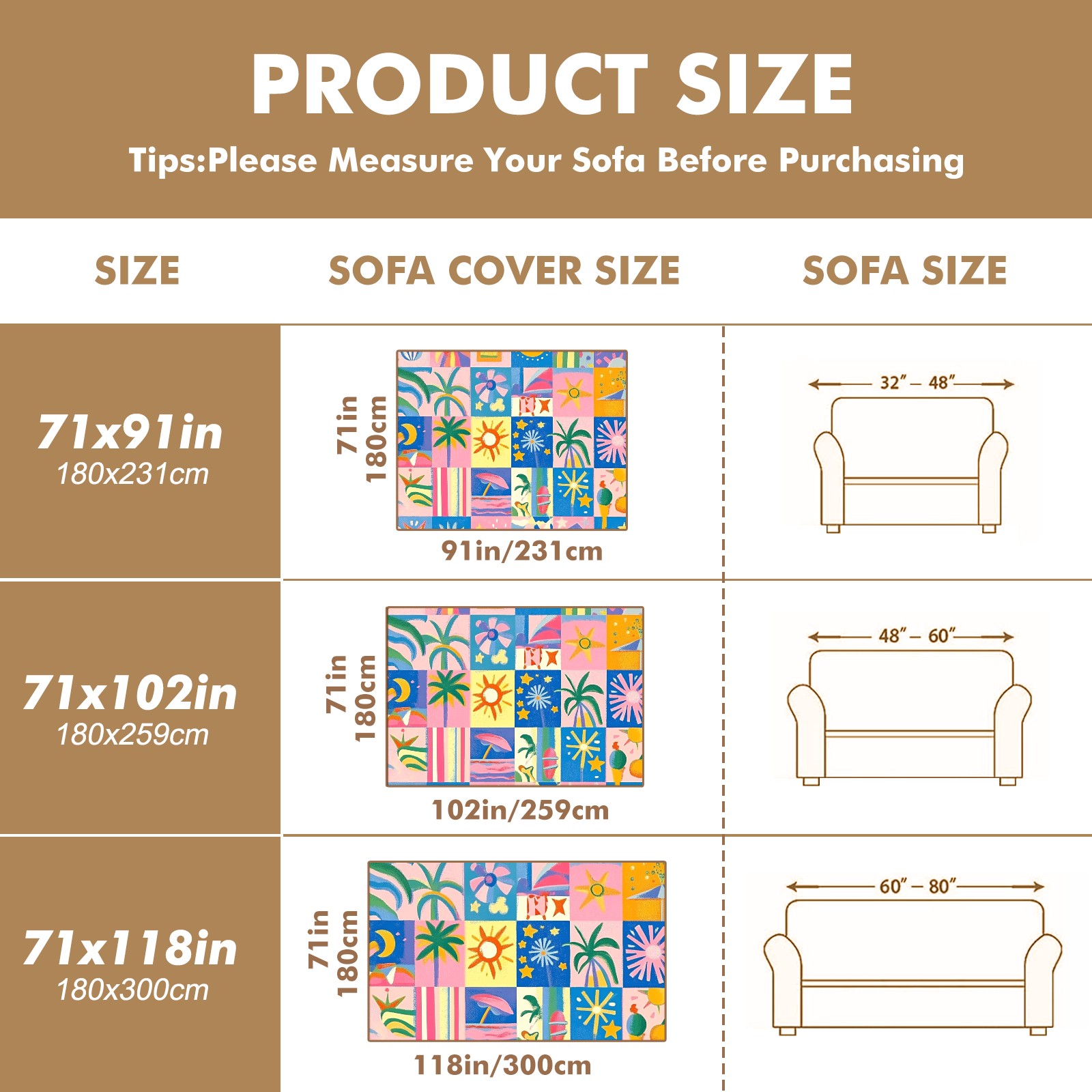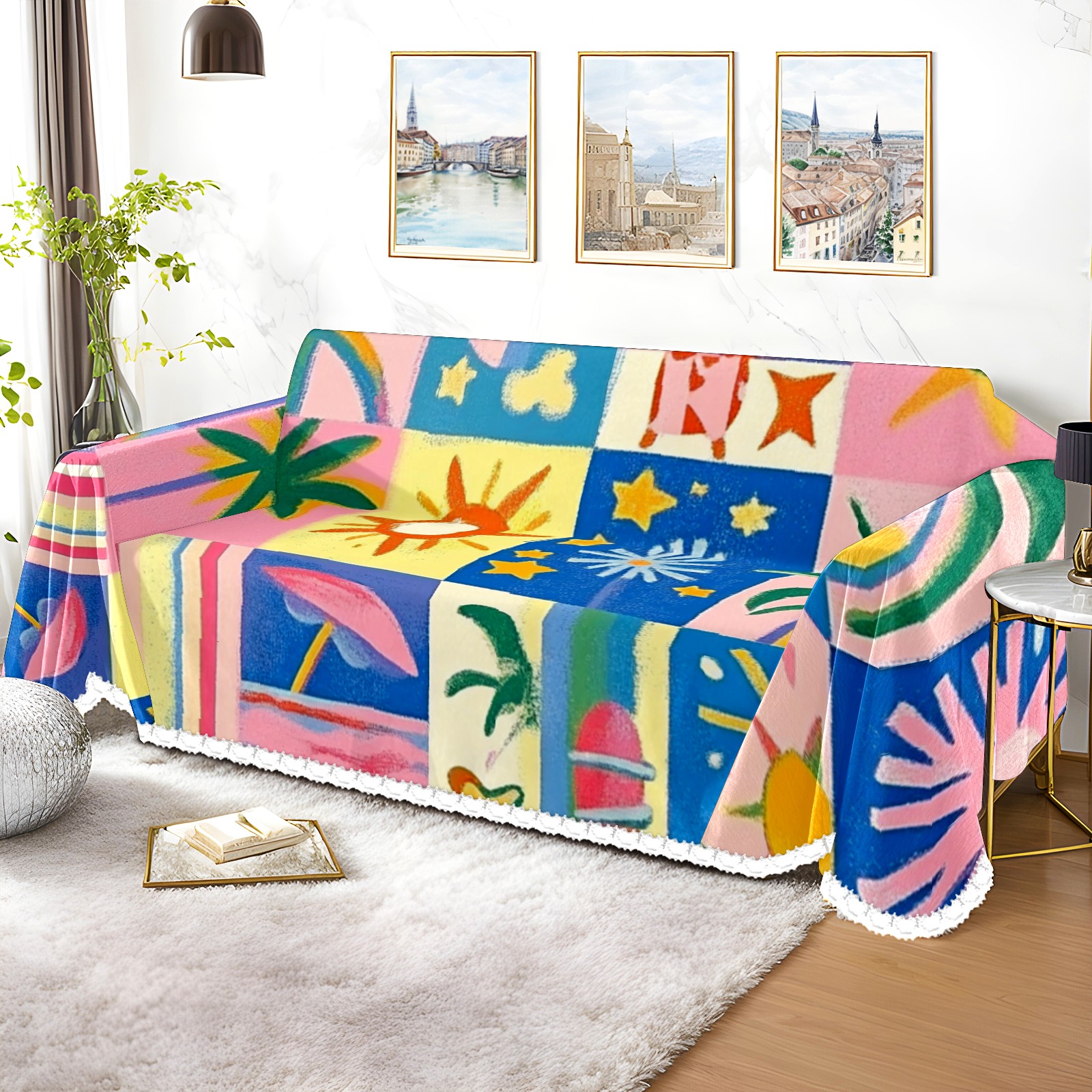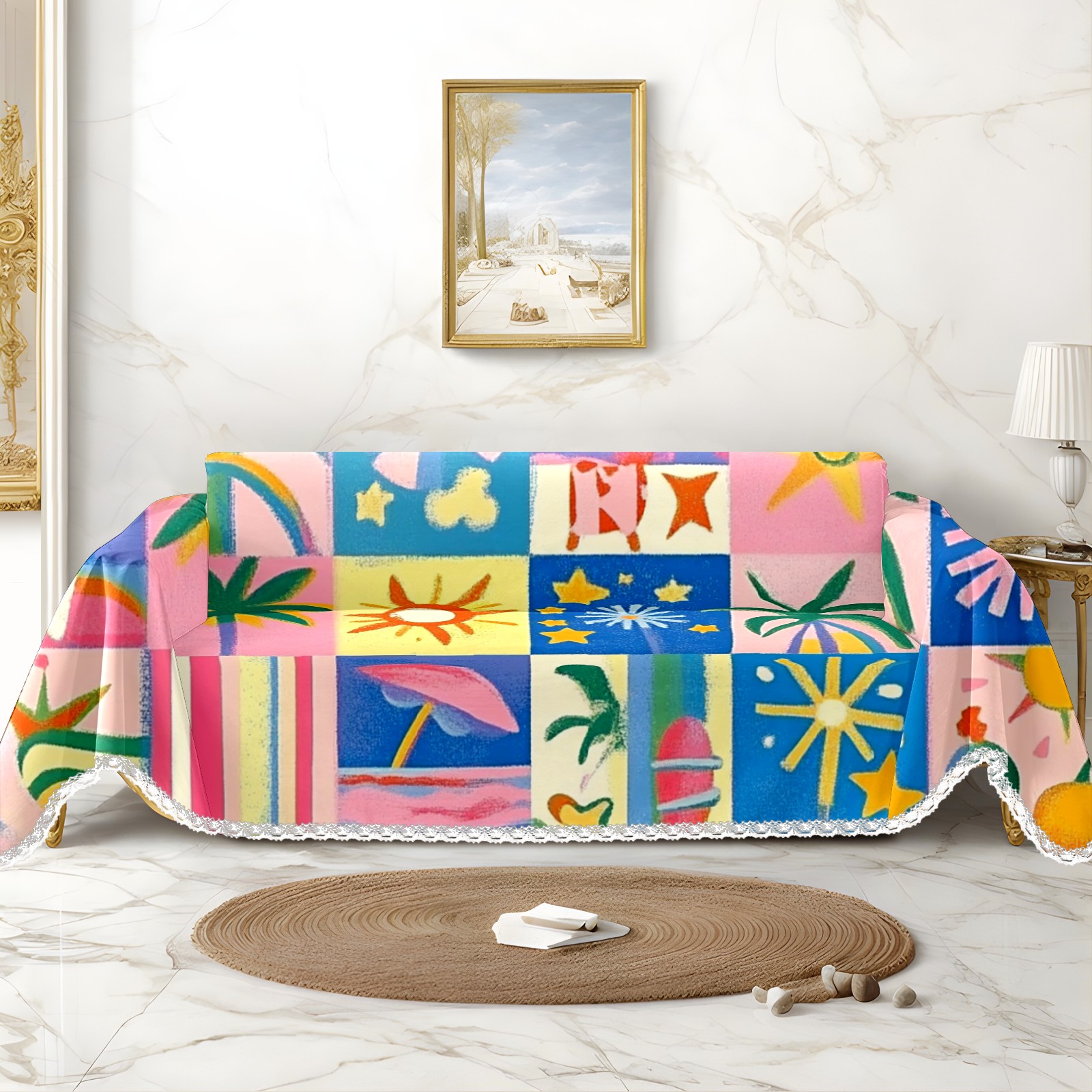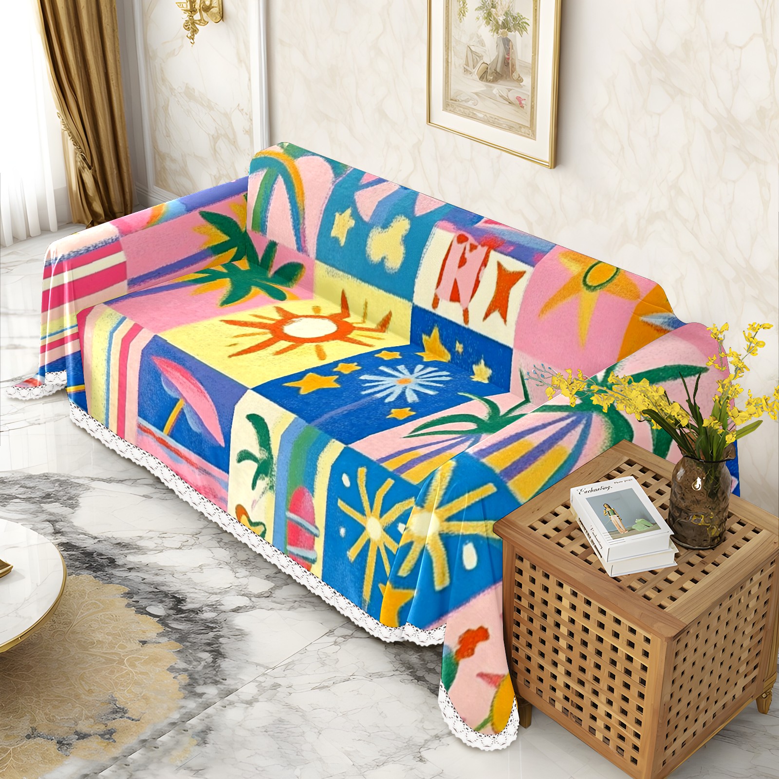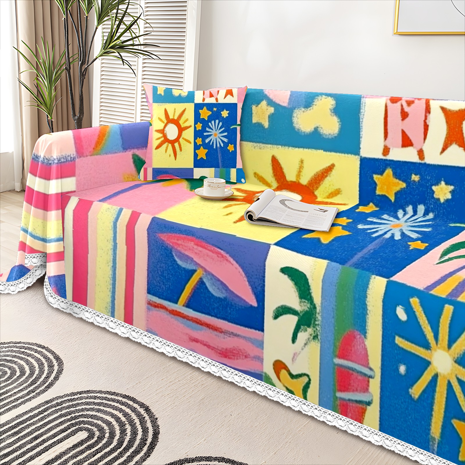 Vibrant And Colorful Sofa Cover-Soft Poly-Cotton Blend, Machine Washable Couch Protector for Home Decor - 71x91 in Couch Covers