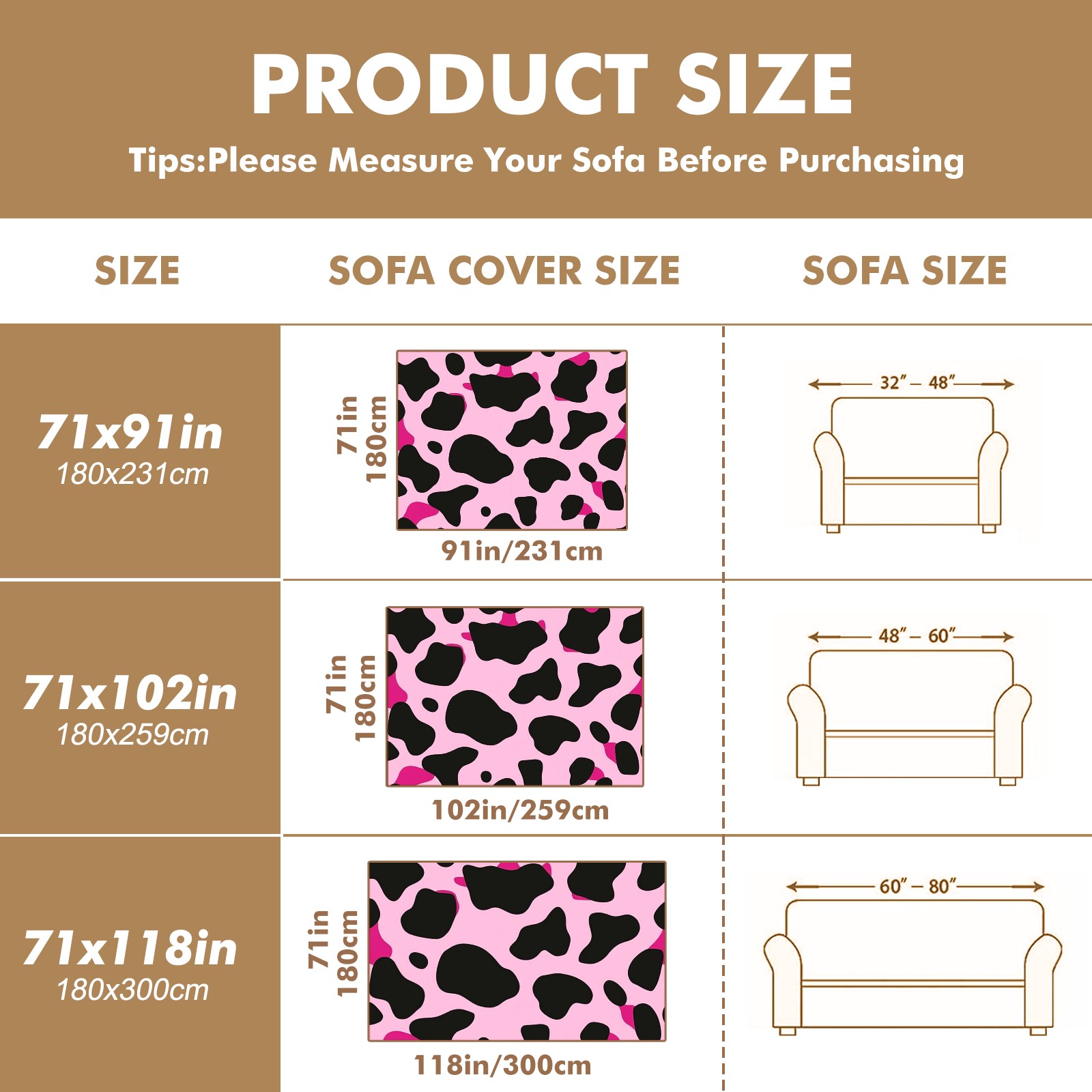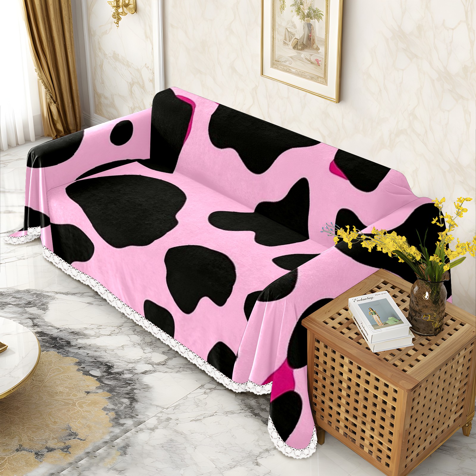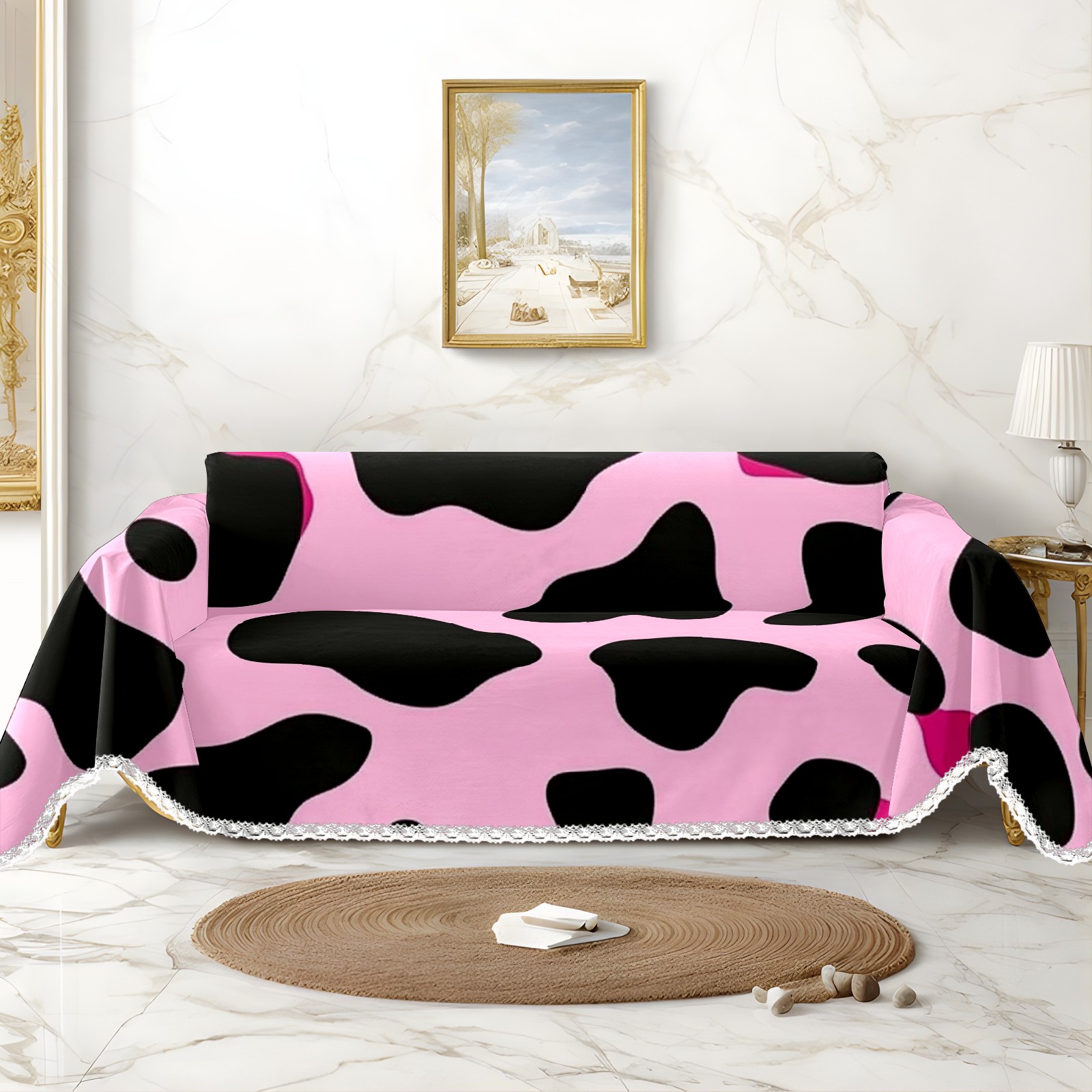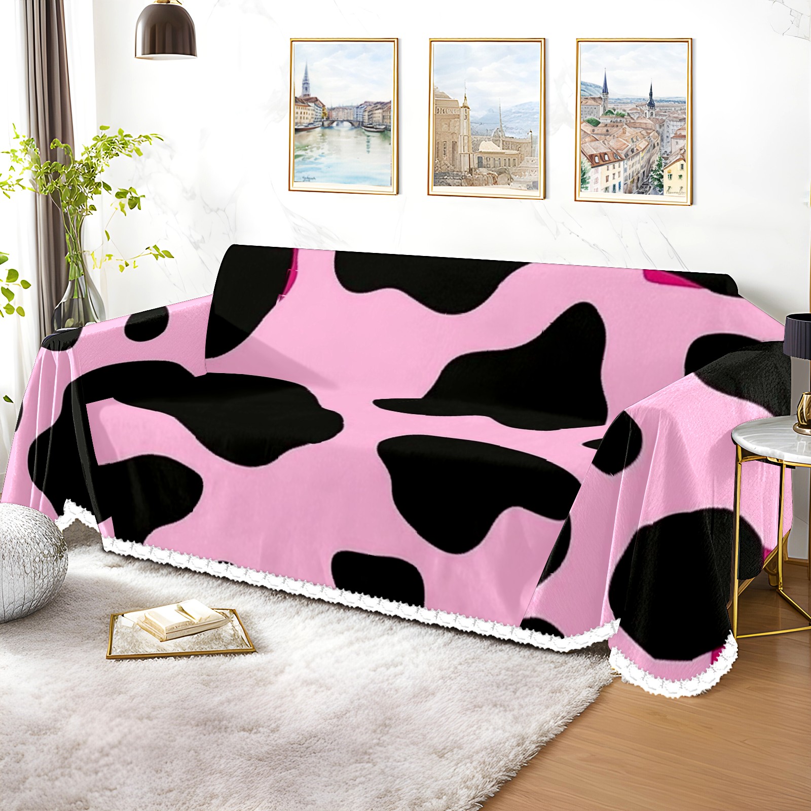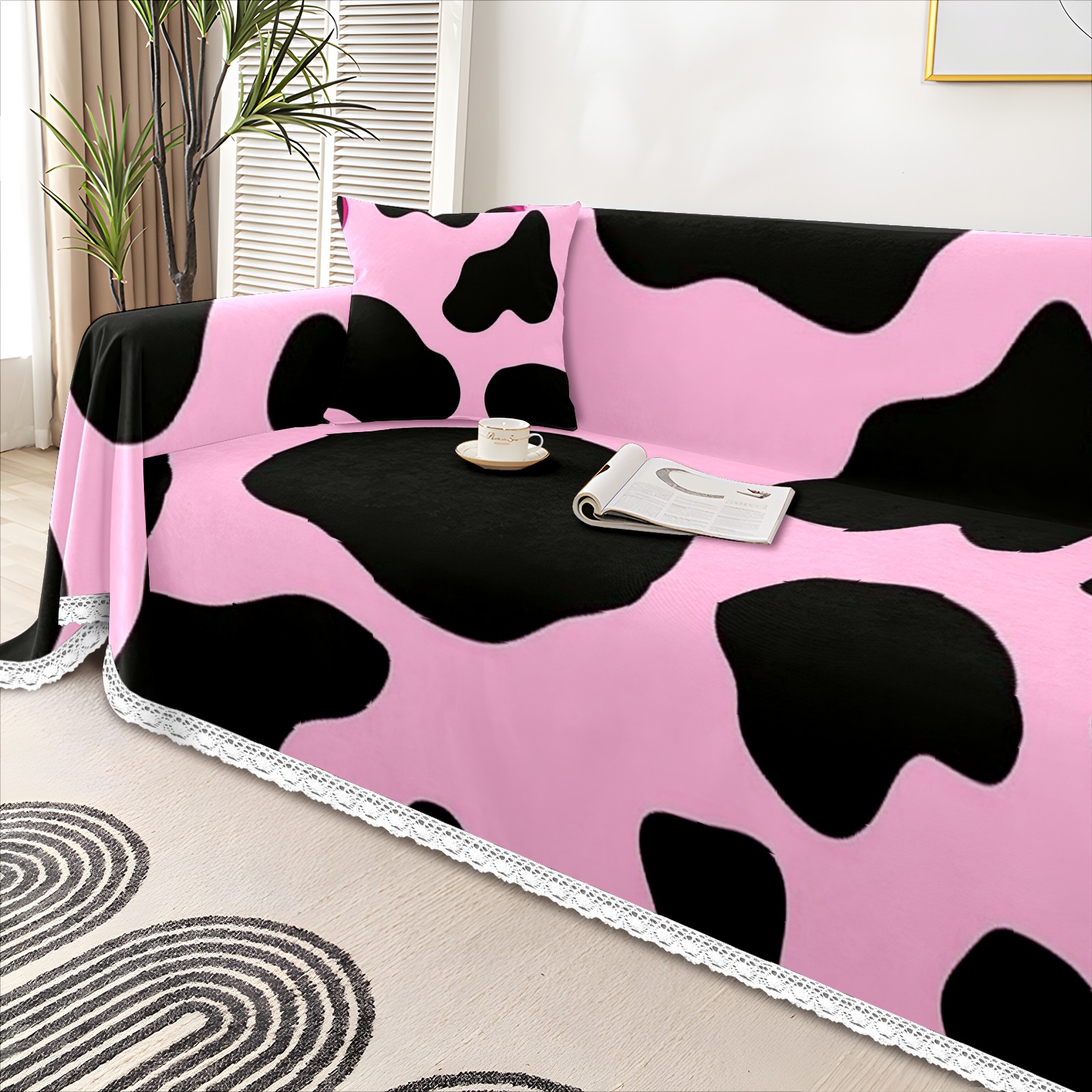 Pink And Black Cow Print Pattern Sofa Cover-Soft Poly-Cotton Blend, Machine Washable Couch Protector for Home Decor - 71x91 in Couch Covers