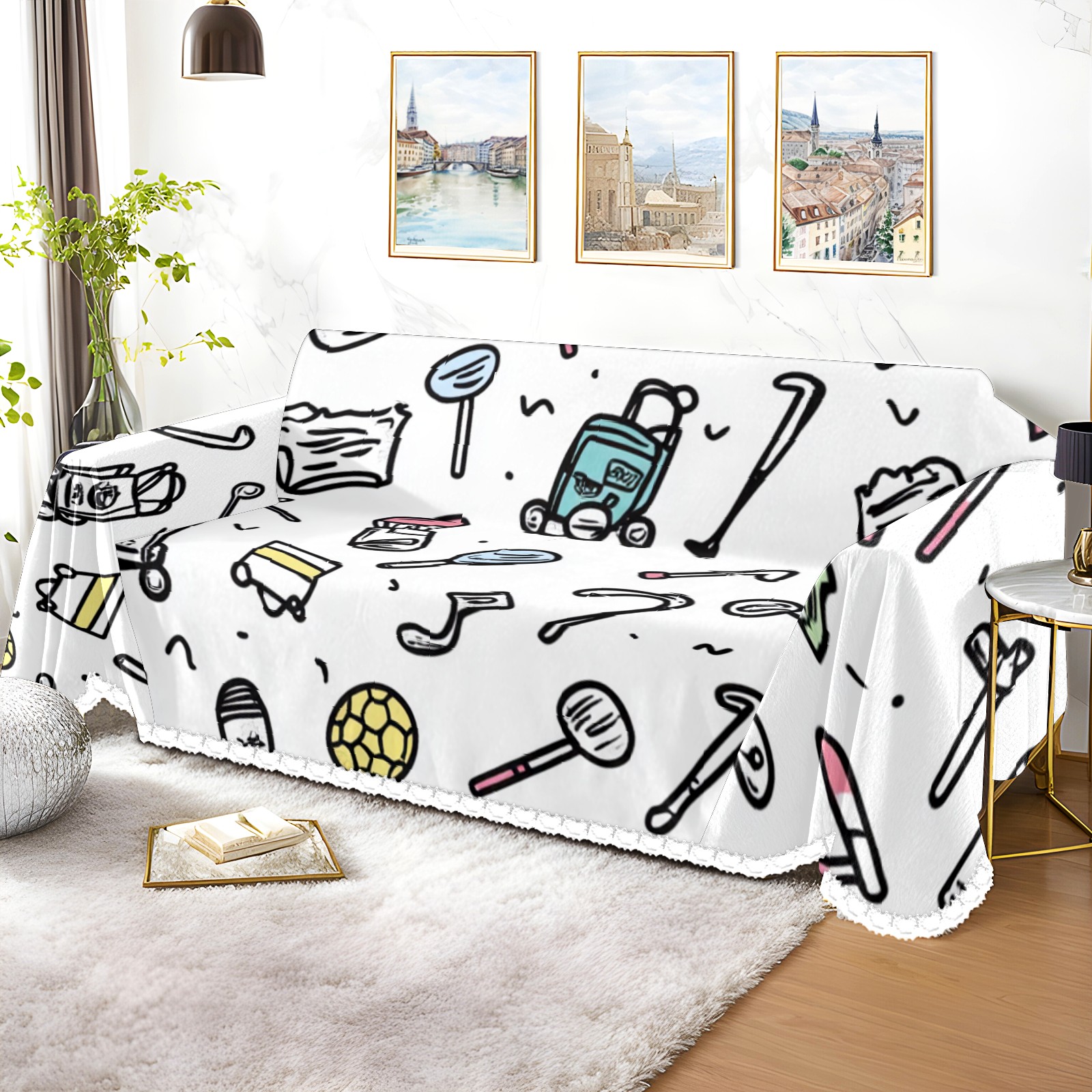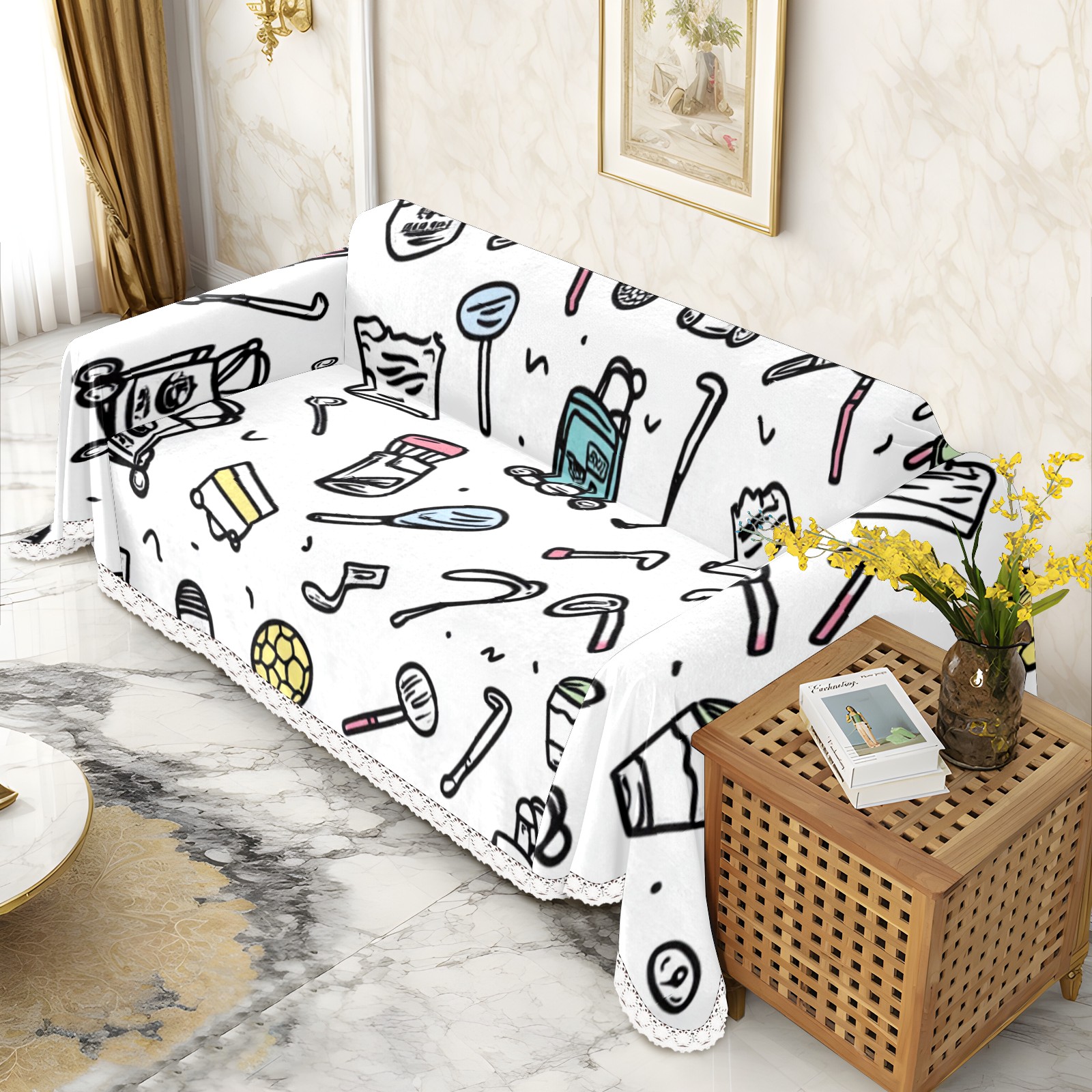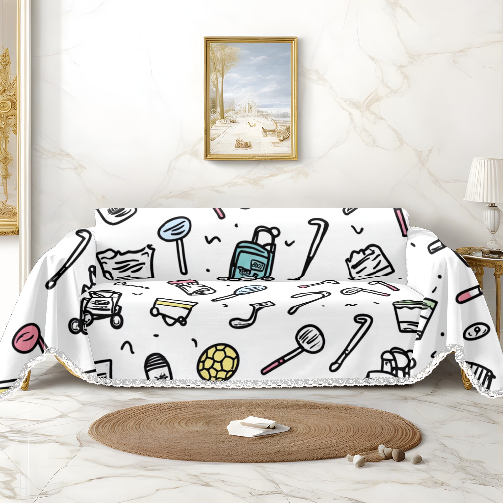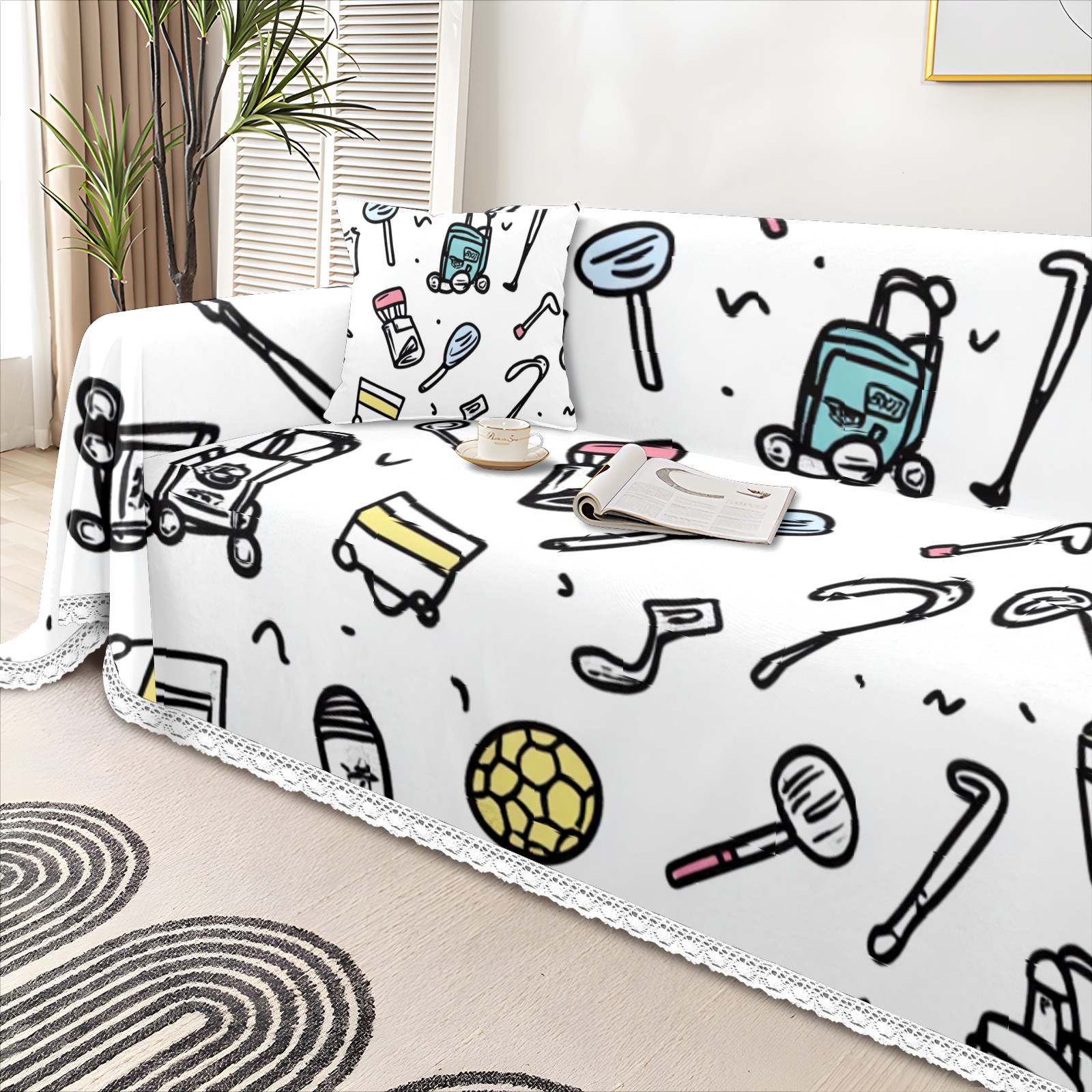 Golf-themed Pattern Sofa Cover-Soft Poly-Cotton Blend, Machine Washable Couch Protector for Home Decor - 71x91 in Couch Covers