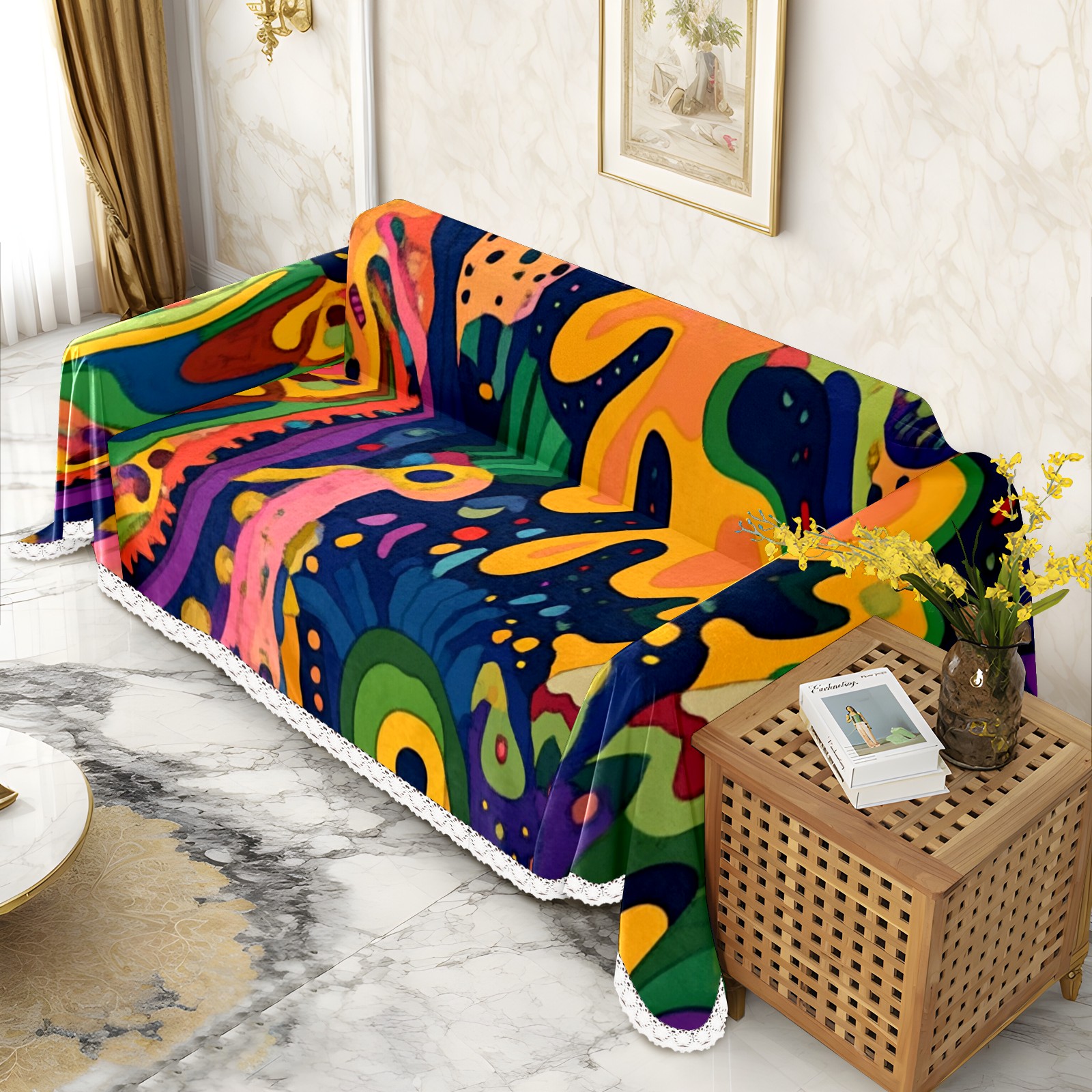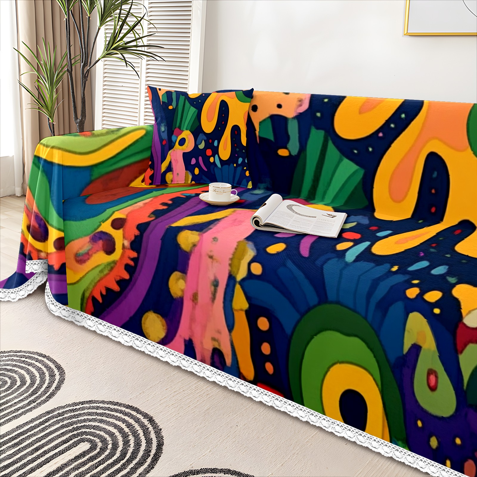 Abstract Doodle Pattern Sofa Cover-Soft Poly-Cotton Blend, Machine Washable Couch Protector for Home Decor - 71x91 in Couch Covers