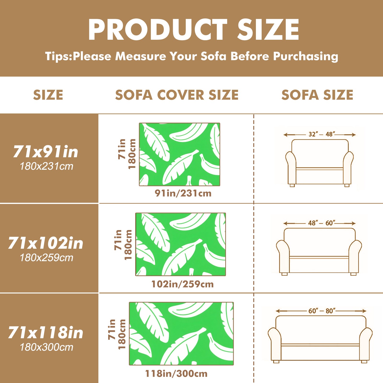 Leaf Sofa Cover-Soft Poly-Cotton Blend, Machine Washable Couch Protector for Home Decor - 71x91 in Couch Covers