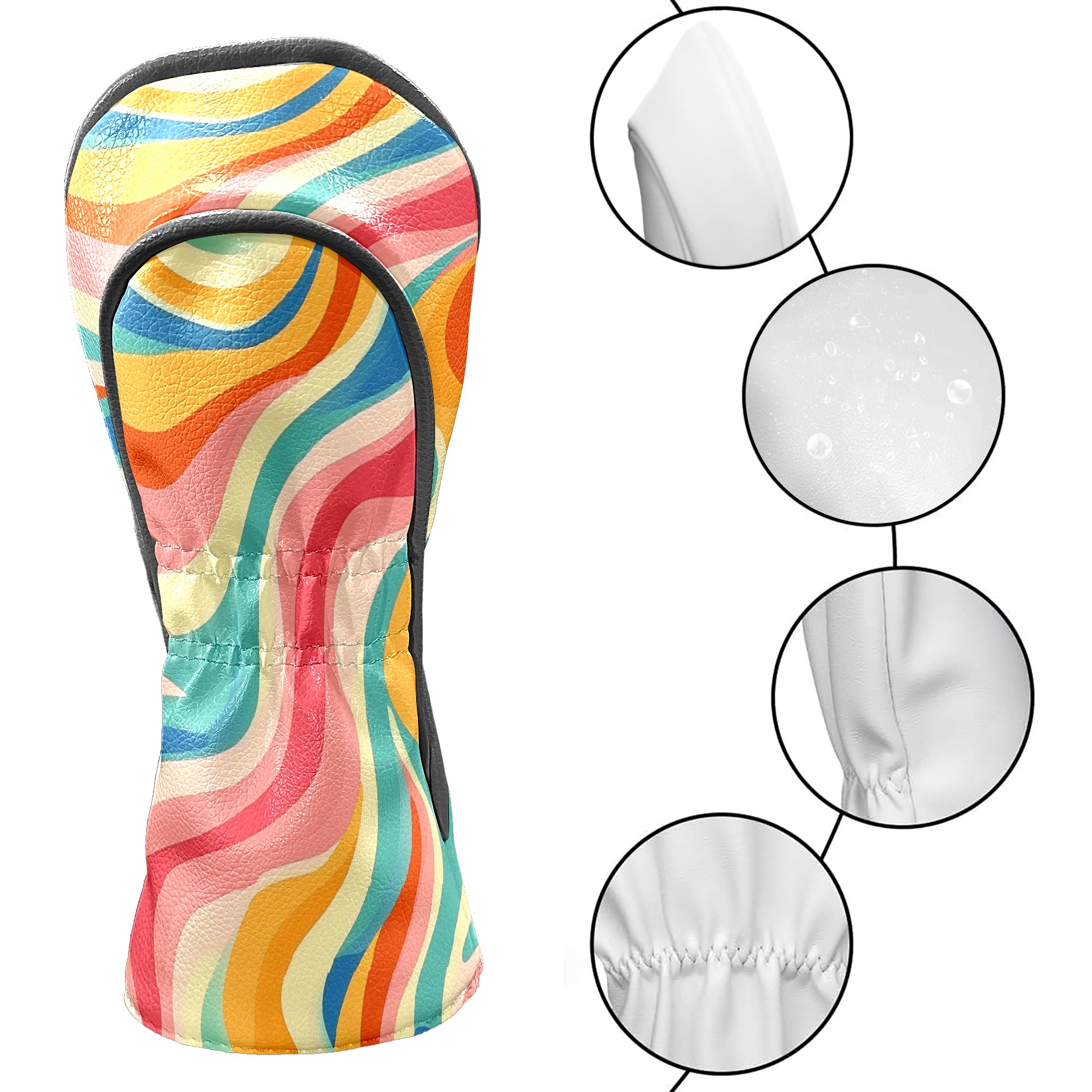Professional Golf Club Head Covers Set for Fairway Woods and Hybrid - Waterproof Design with Stretchable Fit, Universal Club Protection for Men & Women (Colorful Wavy Patterns)