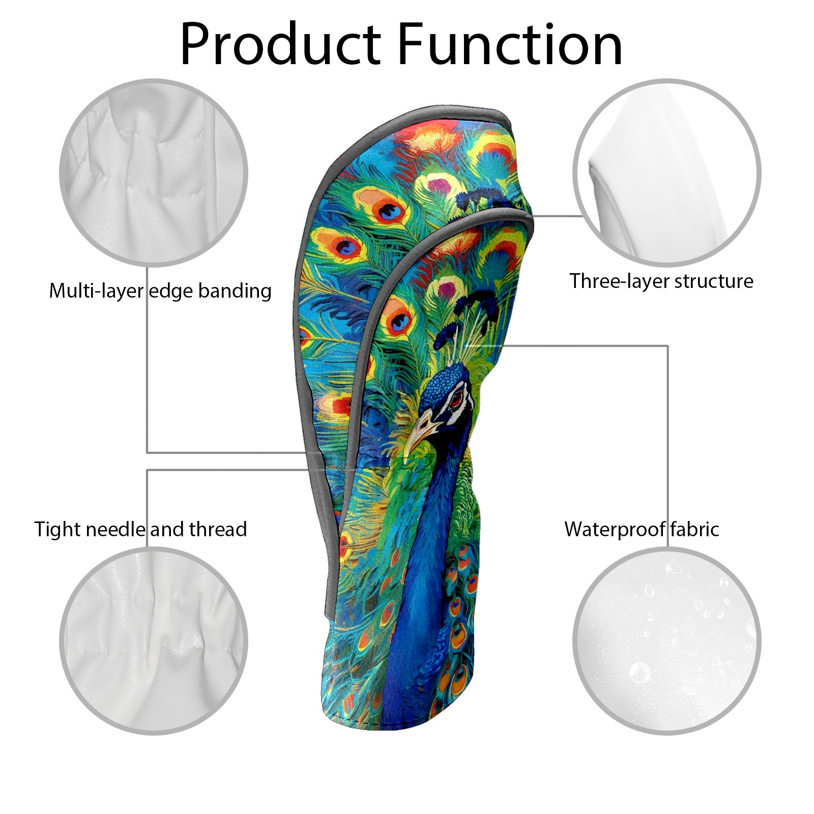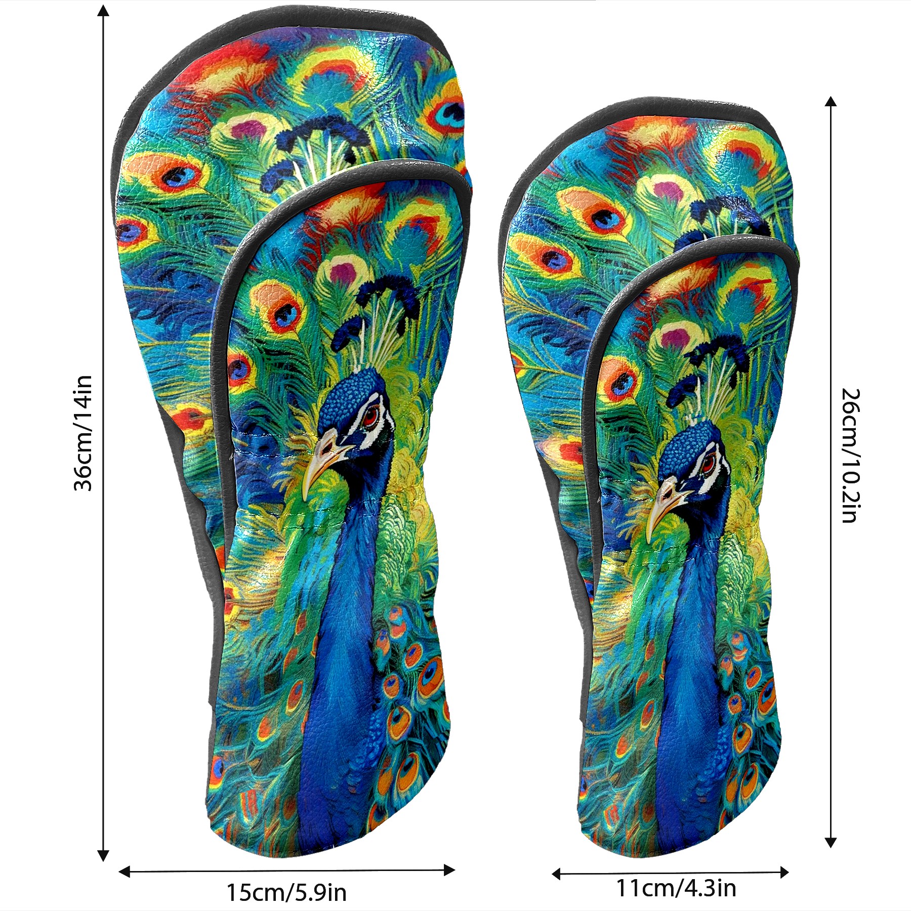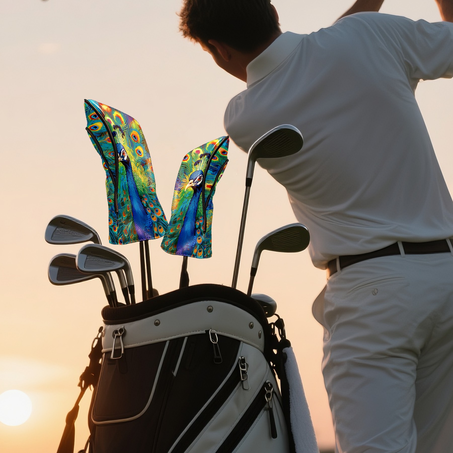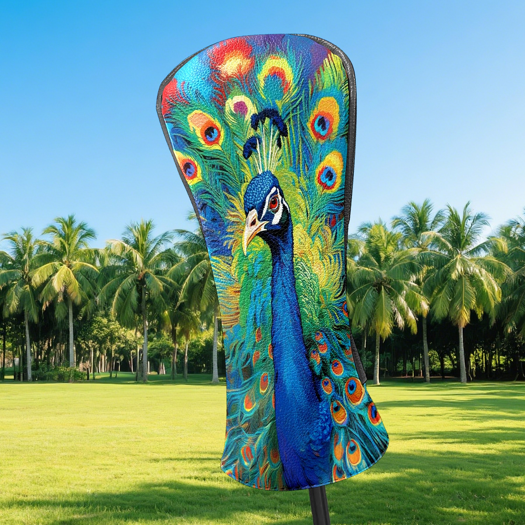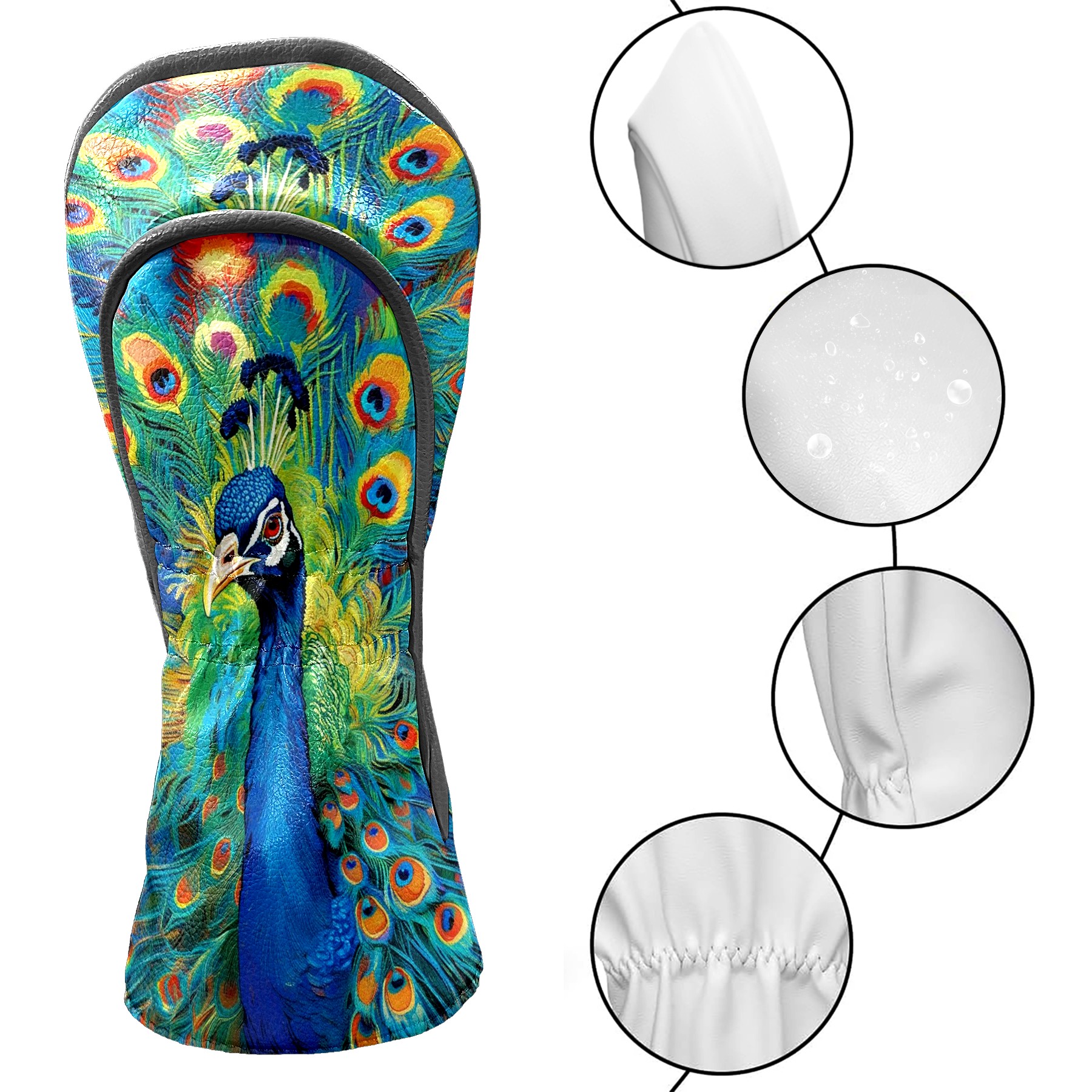Golf Club Head Cover Premium Leather Driver Headcover, Golf Head Covers for Woods and Driver Waterproof Golf Headcovers with Anti-Scratch Lining for Men Women (孔雀2)