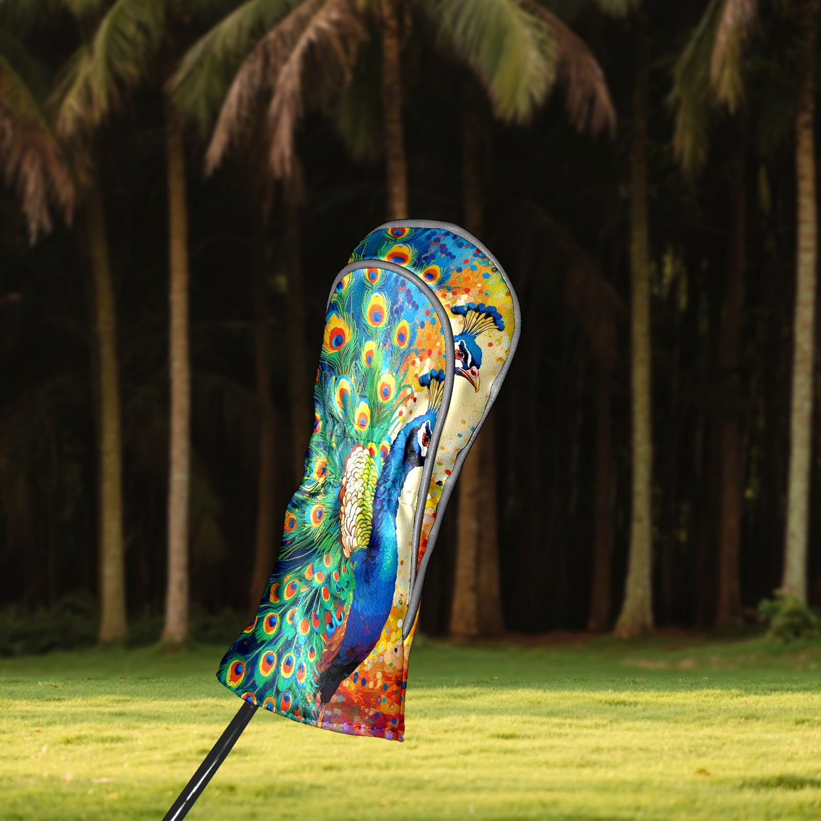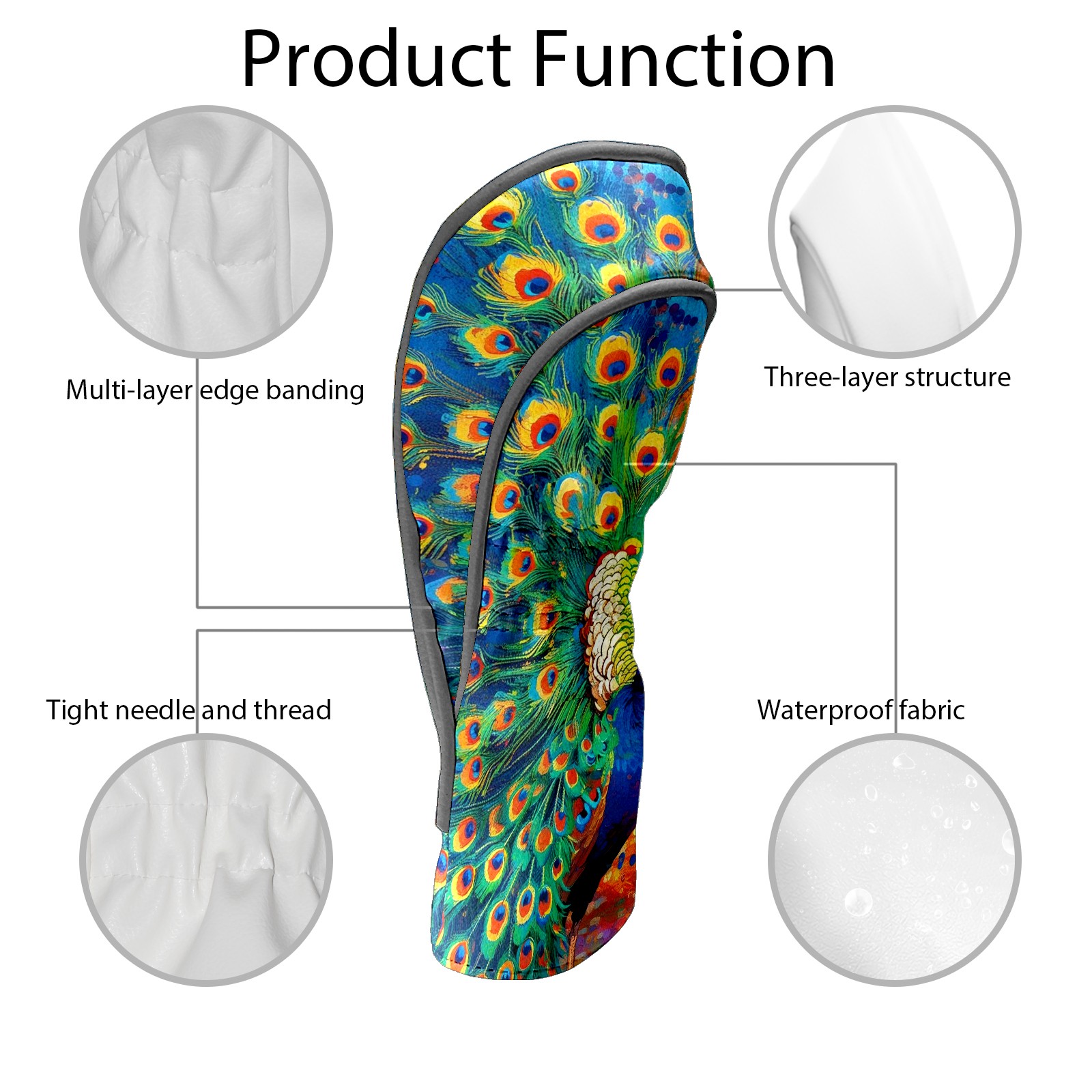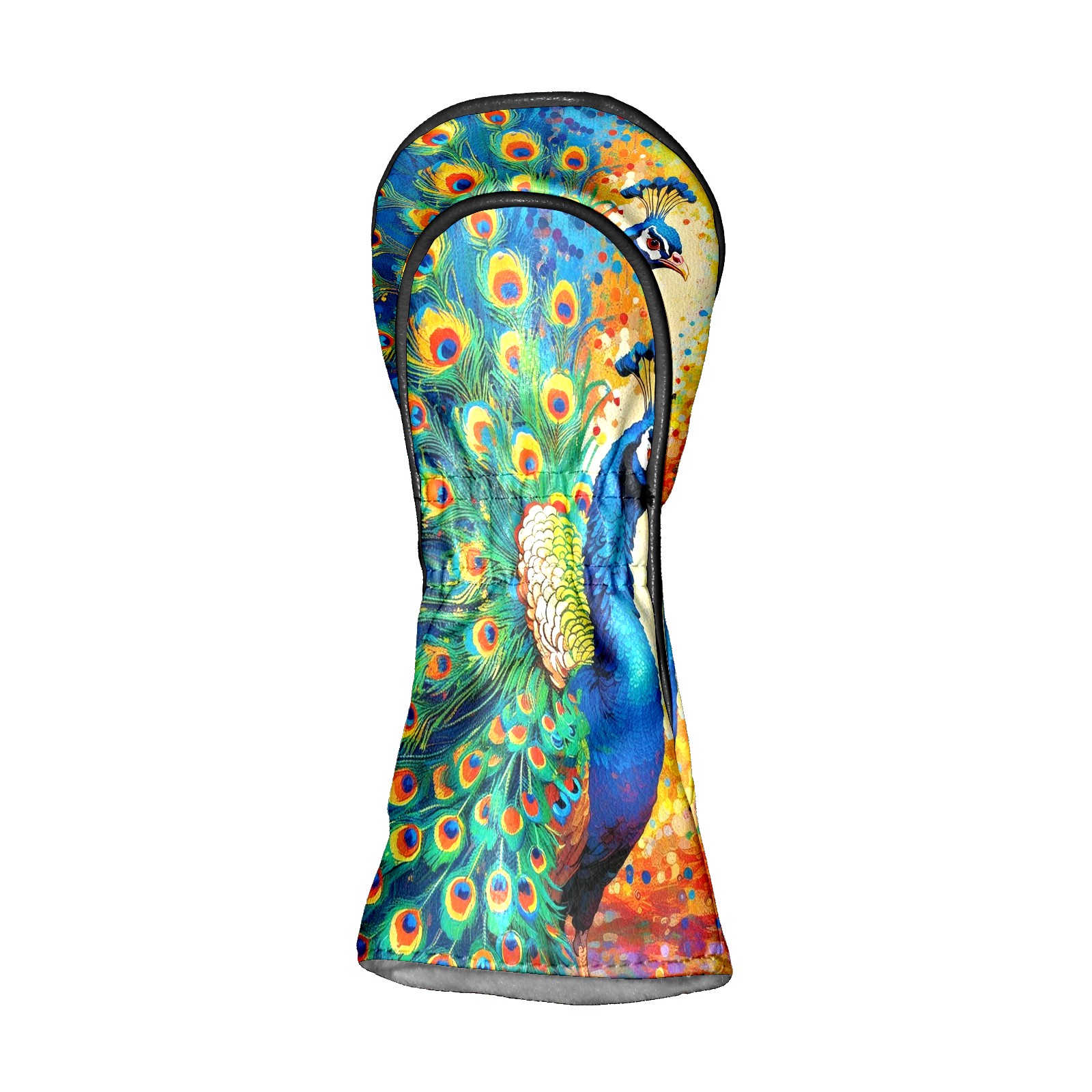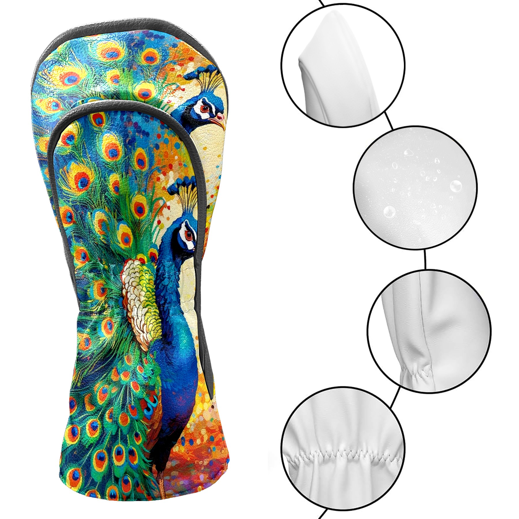Golf Club Head Cover Premium Leather Driver Headcover, Golf Head Covers for Woods and Driver Waterproof Golf Headcovers with Anti-Scratch Lining for Men Women (孔雀1)