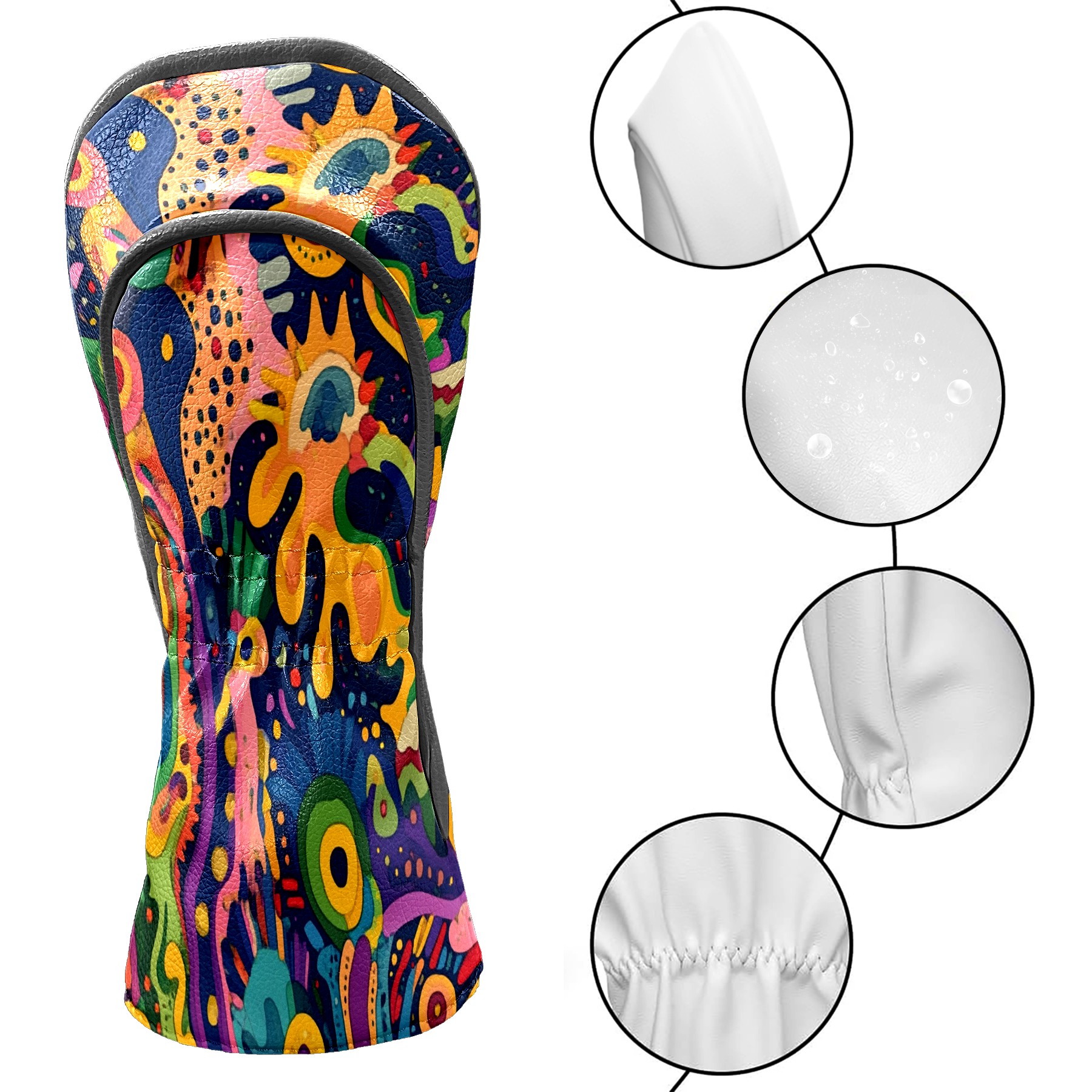 Professional Golf Club Head Covers Set for Fairway Woods and Hybrid - Waterproof Design with Stretchable Fit, Universal Club Protection for Men & Women (Abstract Doodle Pattern)