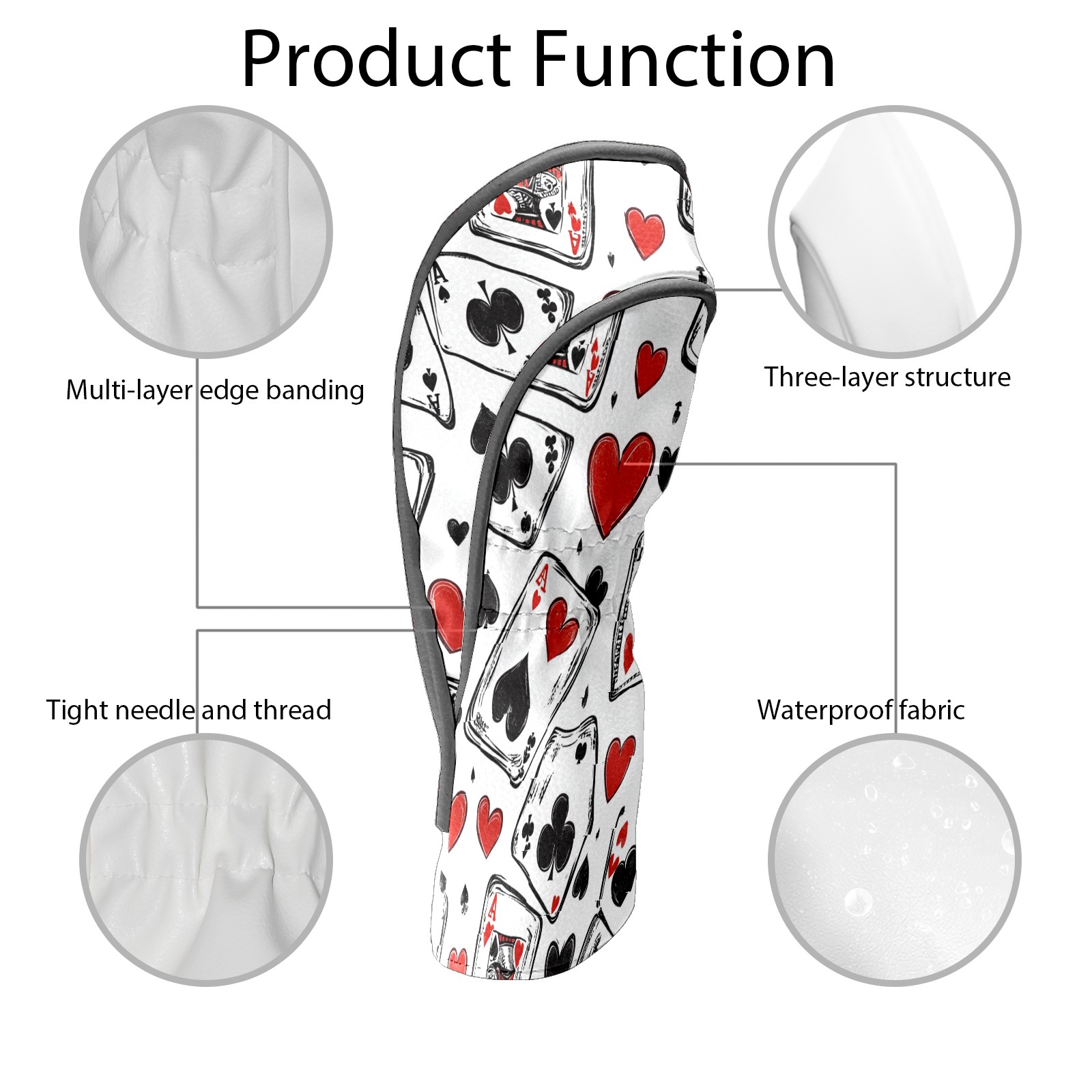 Professional Golf Club Head Covers Set for Fairway Woods and Hybrid - Waterproof Design with Stretchable Fit, Universal Club Protection for Men & Women (Hand-drawn Poker Cards)