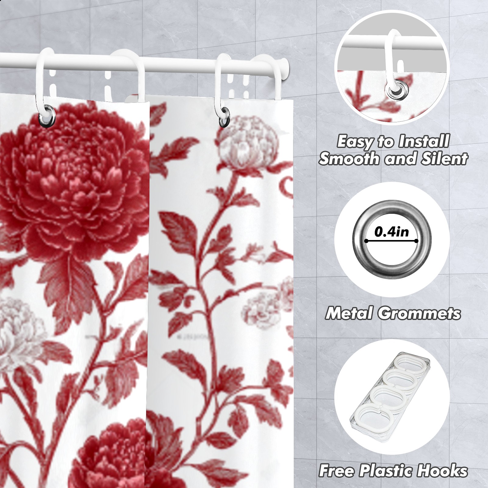 <b>Upgrade Your Bathroom Decor with Our Stylish and Functional Waterproof Polyester Custom Shower Curtain! Our personalized shower curtain features a robust water-resistant quality that guarantees maximum protection against water splashes.</b><br> <b>●Premium Material </b><br> Made of polyester fabric that resists abrasion and maintains good drapability. Use sturdy metal grommets that ensure a smooth glide and long life for your curtain.<br> <b>●Perfect Bathroom Decor </b><br> Long-Lasting Quality & Fade-Resistant Print.The curtain is printed on a single side using advanced dye-sublimation technology, ensuring vibrant colors that resist fading over time.Various styles of picture design,like rustic shower curtain, farmhouse shower curtain, boho shower curtain, modern shower curtain ,cute shower curtain and more. Create a comfortable and visually appealing environment for your daily routine.