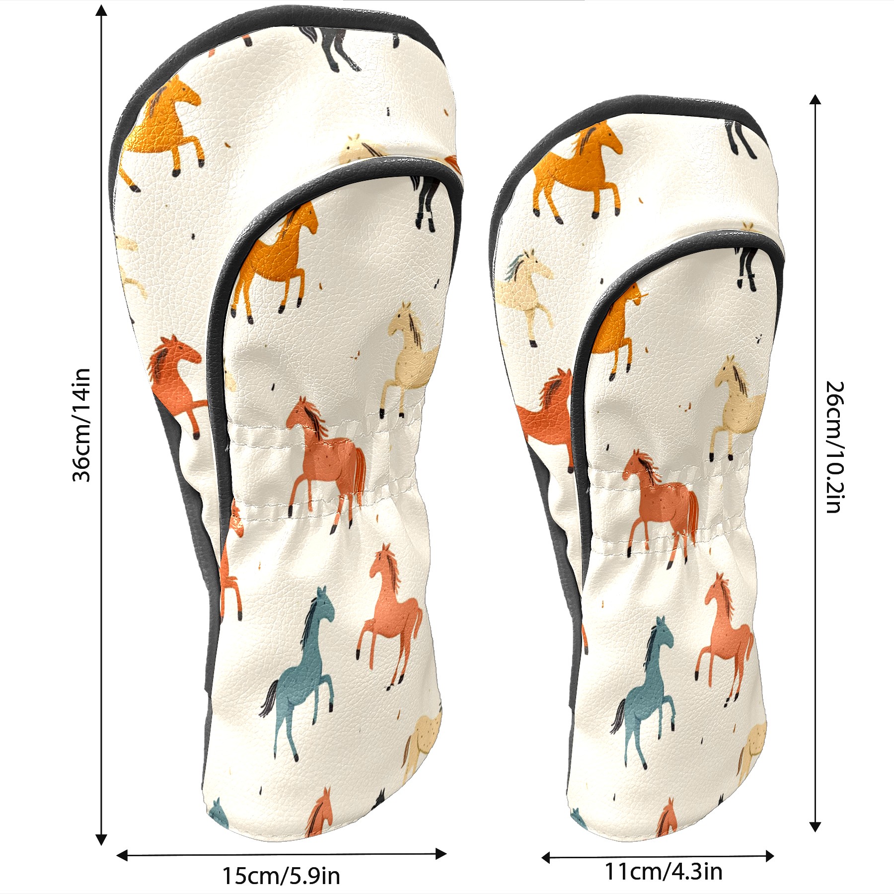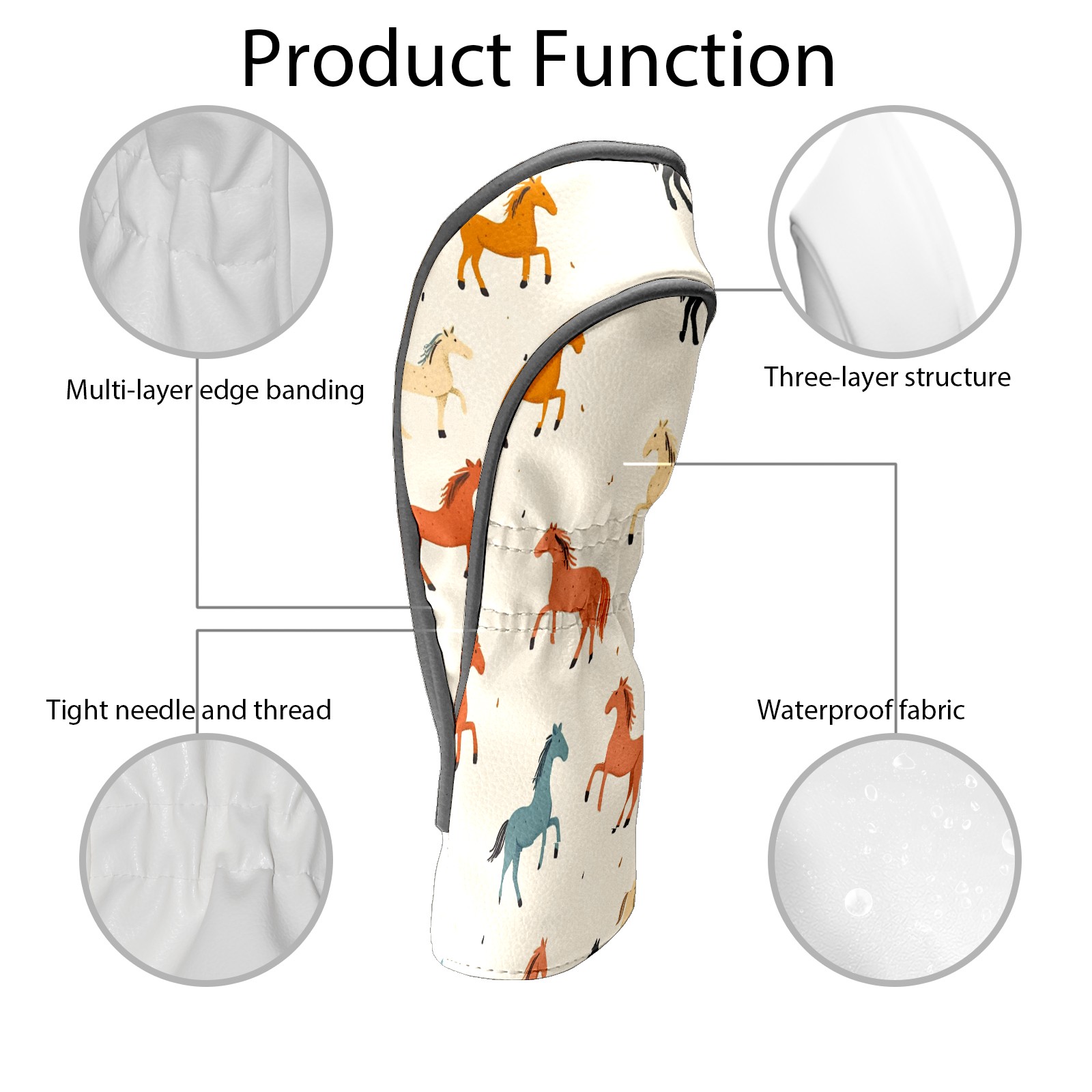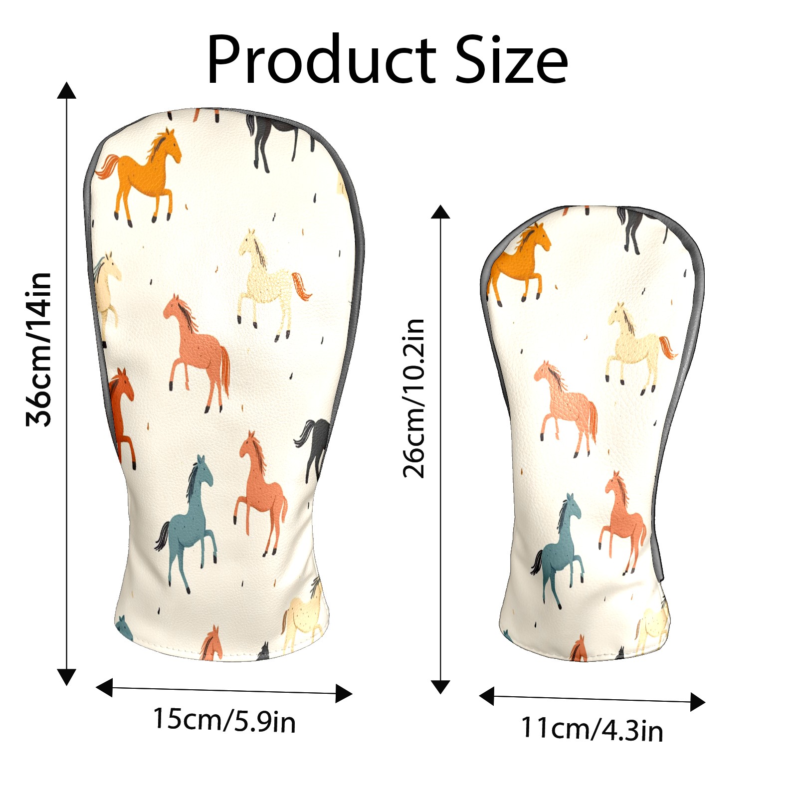 Professional Golf Club Head Covers Set for Fairway Woods and Hybrid - Waterproof Design with Stretchable Fit, Universal Club Protection for Men & Women (Horses)