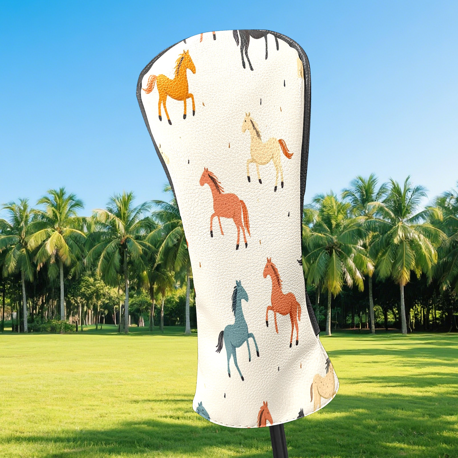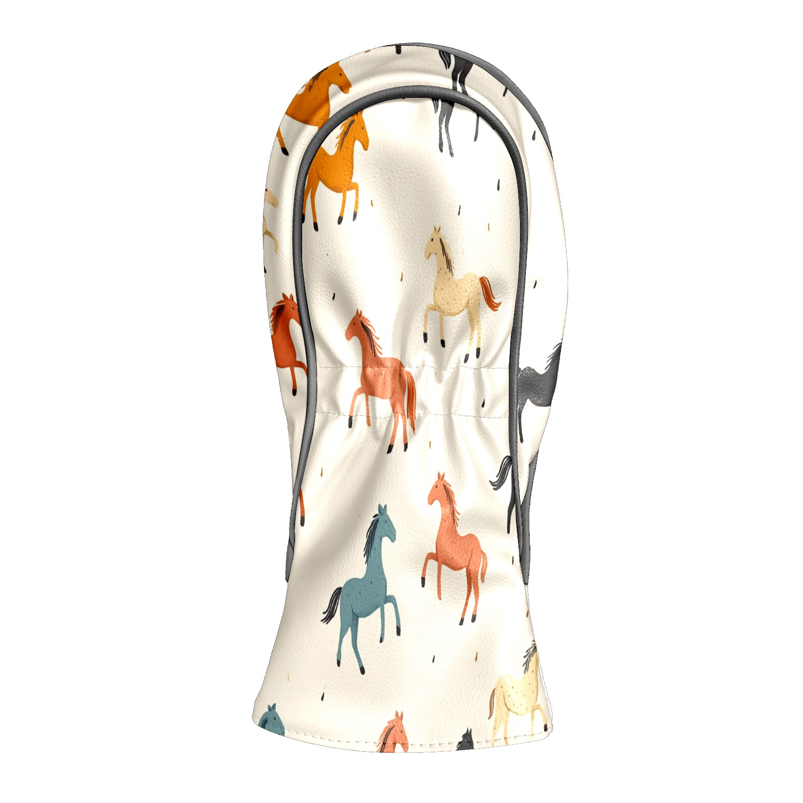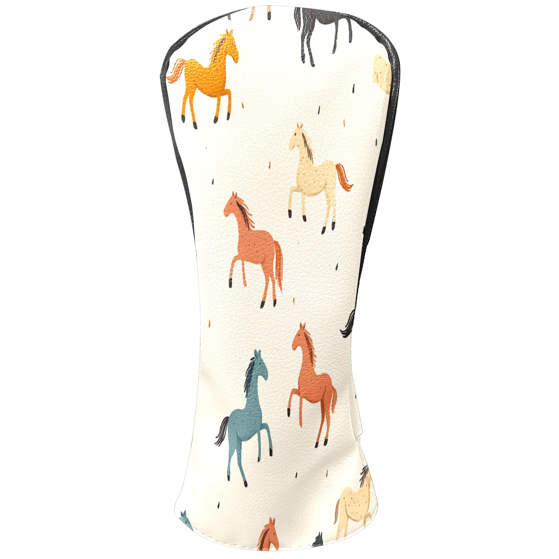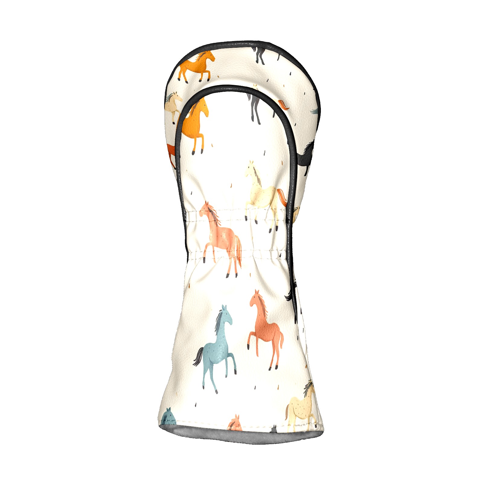 Professional Golf Club Head Covers Set for Fairway Woods and Hybrid - Waterproof Design with Stretchable Fit, Universal Club Protection for Men & Women (Horses)