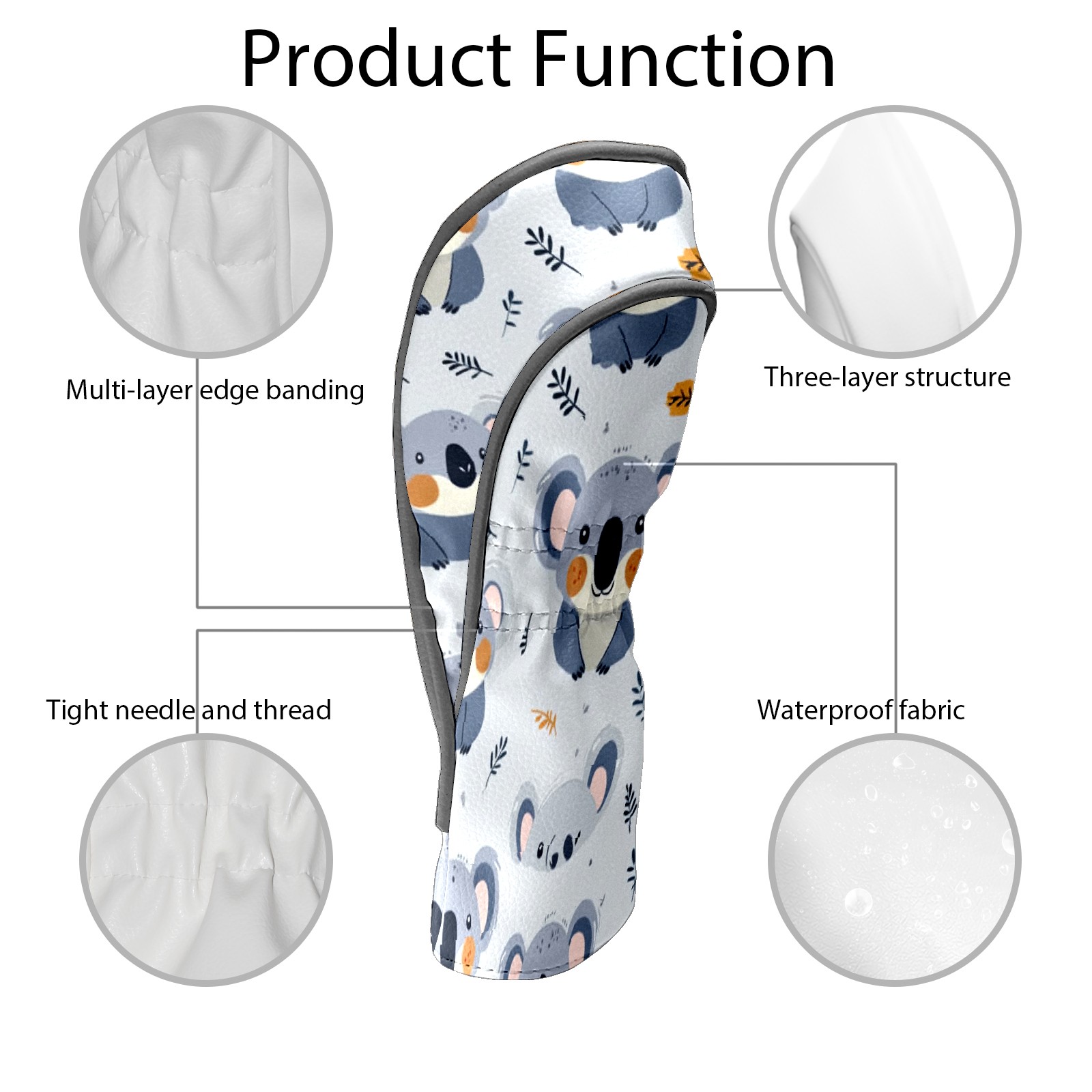 Professional Golf Club Head Covers Set for Fairway Woods and Hybrid - Waterproof Design with Stretchable Fit, Universal Club Protection for Men & Women (Koala)