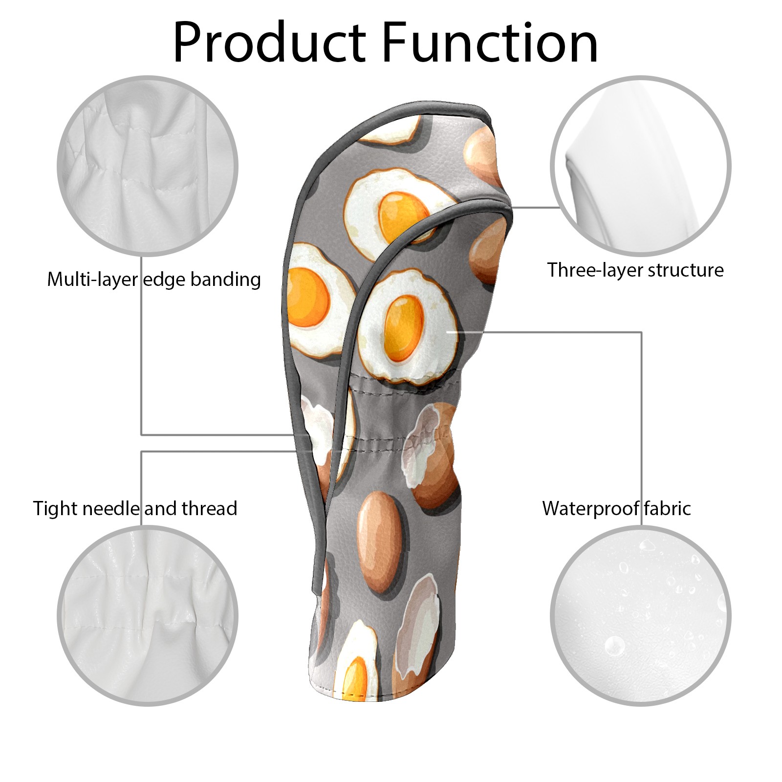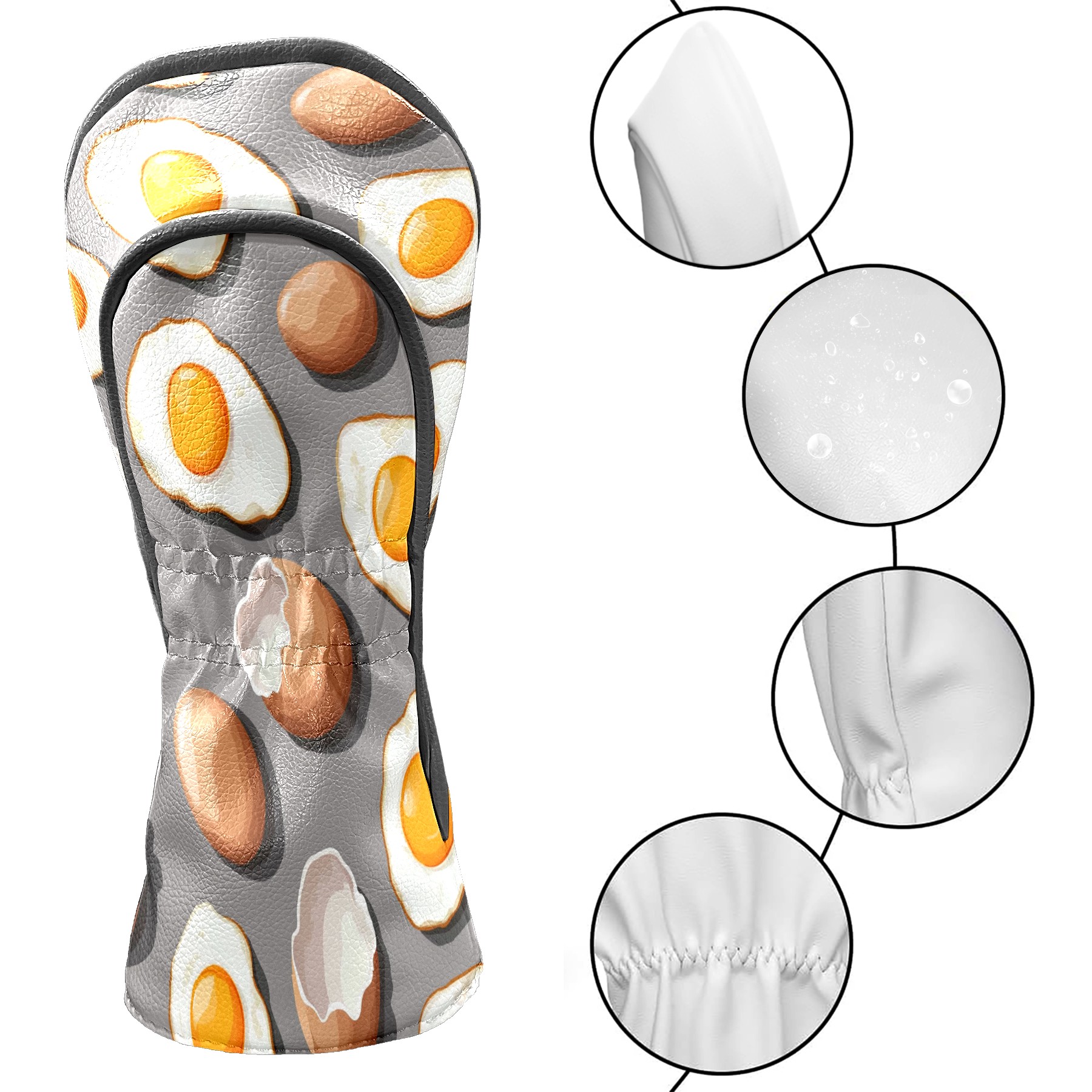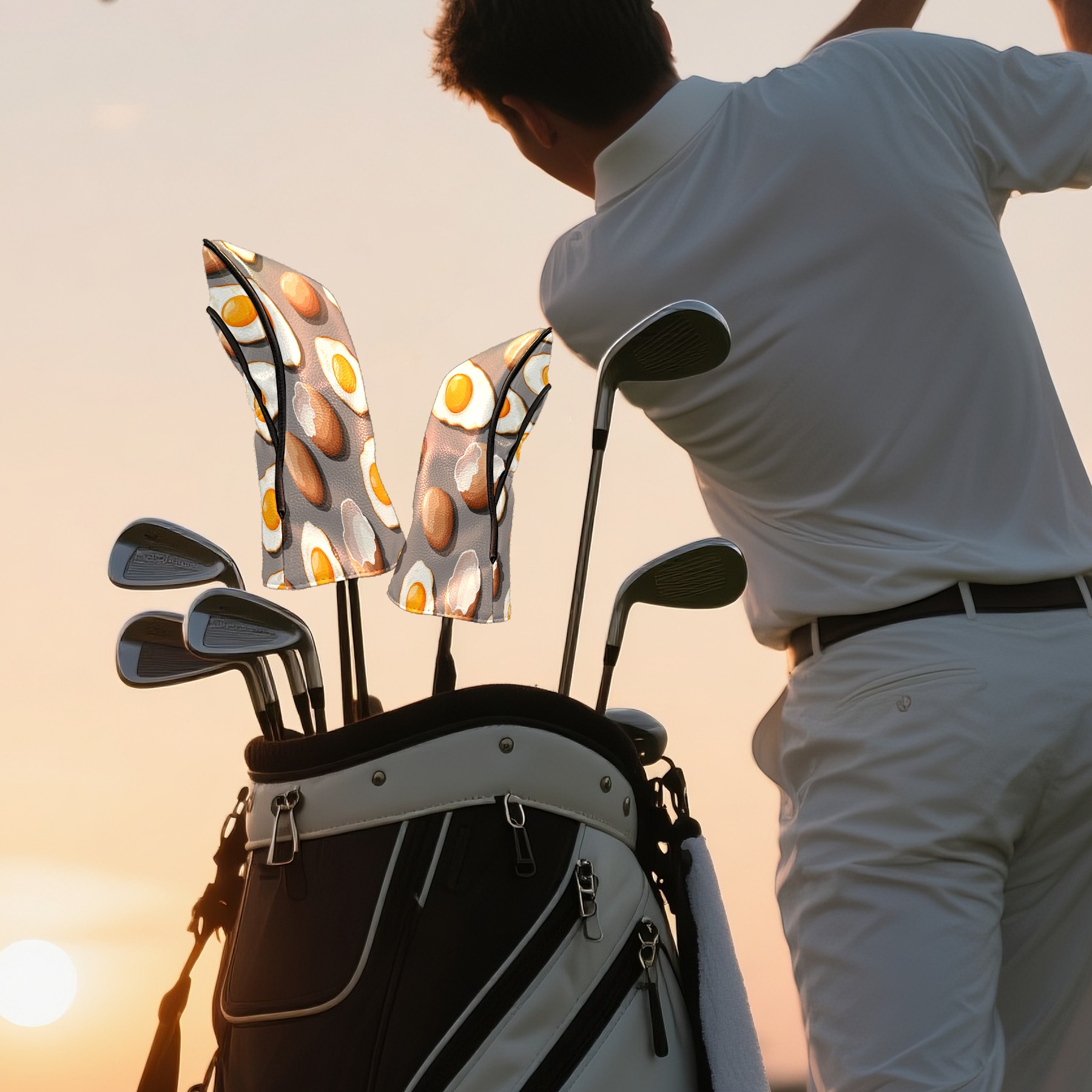 Professional Golf Club Head Covers Set for Fairway Woods and Hybrid - Waterproof Design with Stretchable Fit, Universal Club Protection for Men & Women (Fried Eggs And Eggshells)