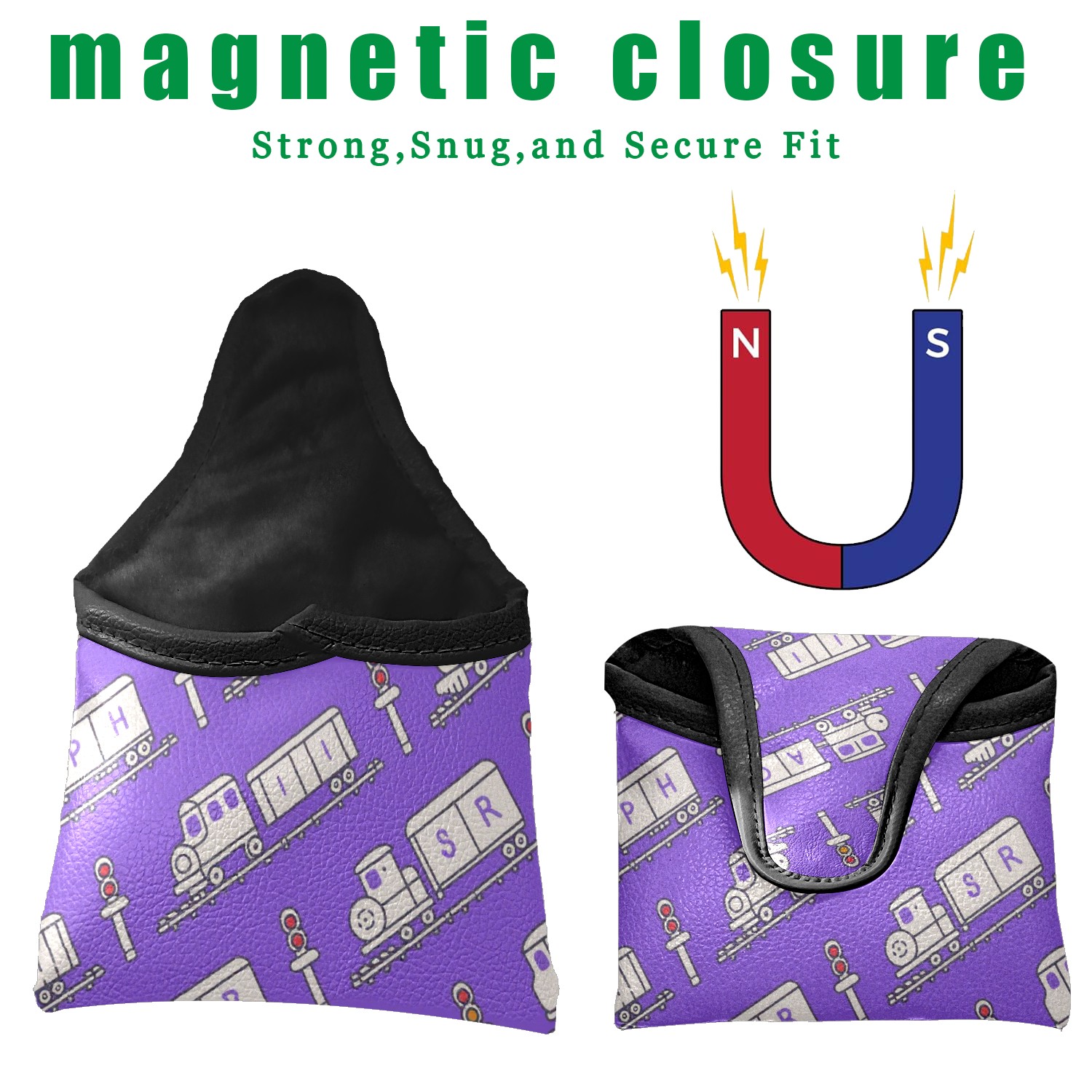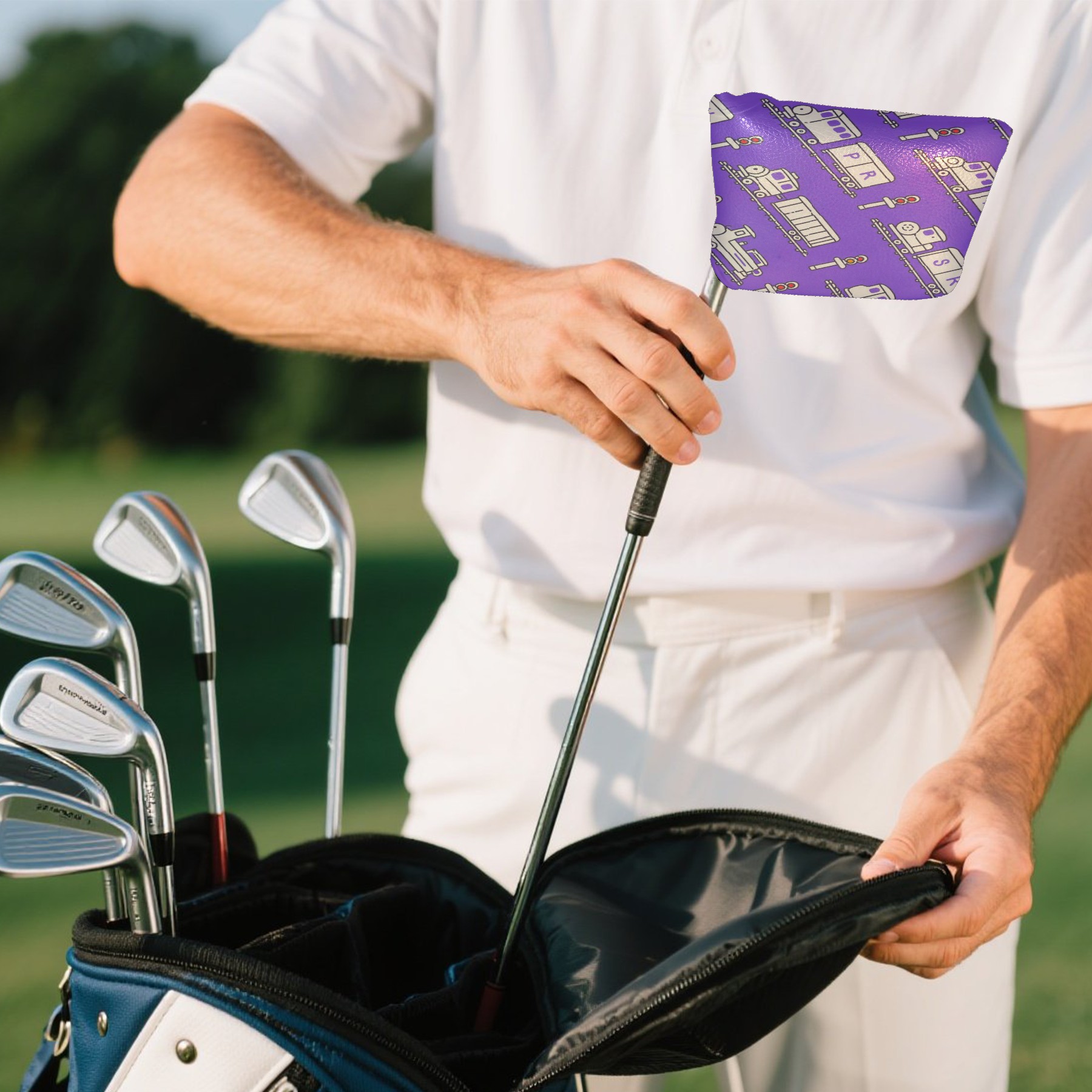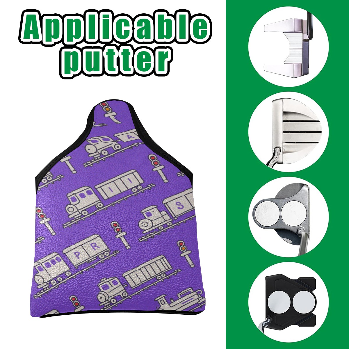 Golf Club Head Cover Golf Club Covers For driver club cover waterproof Head covers Fairway Wood Head Covers Golf Blade Mallet Putter CoverPurple Train Pattern