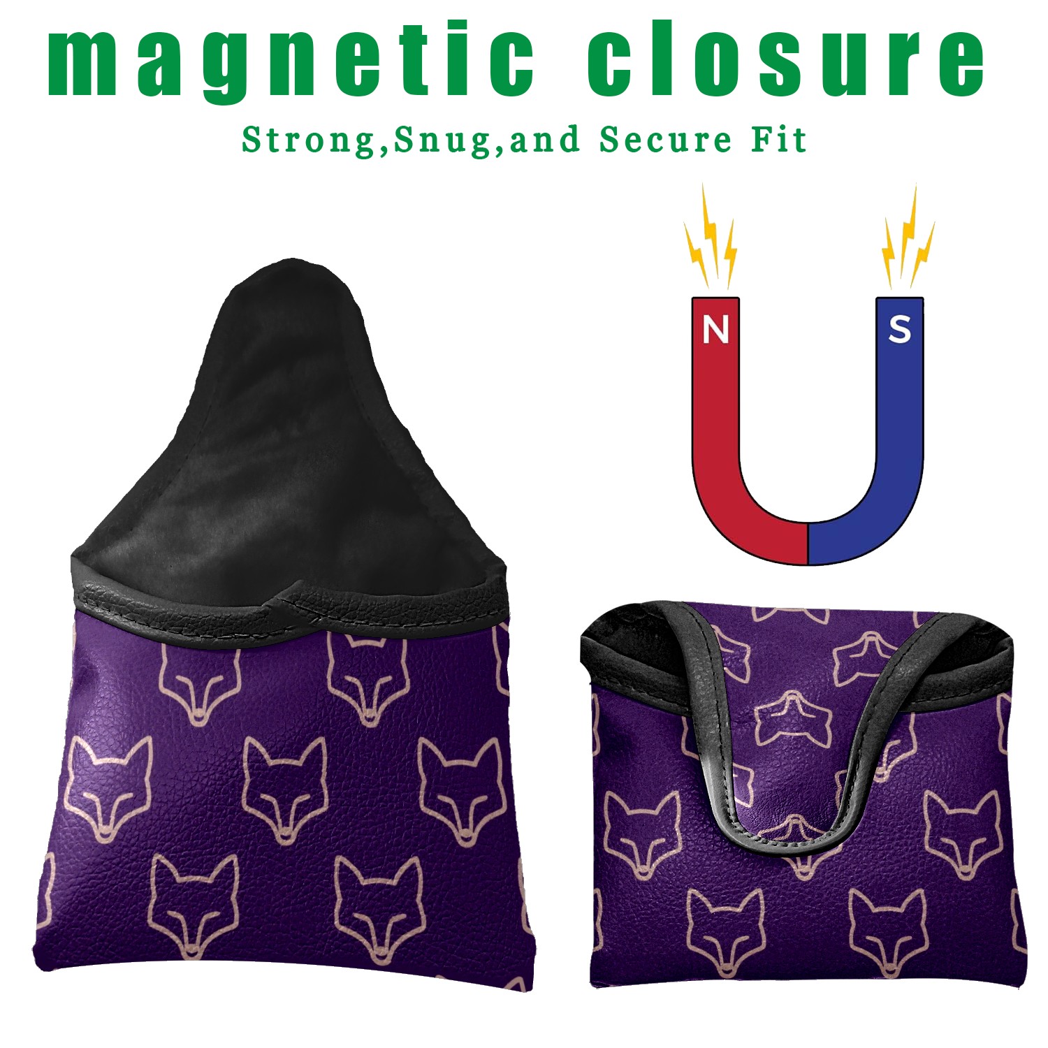 Golf Club Head Cover Golf Club Covers For driver club cover waterproof Head covers Fairway Wood Head Covers Golf Blade Mallet Putter CoverPurple Fox Pattern