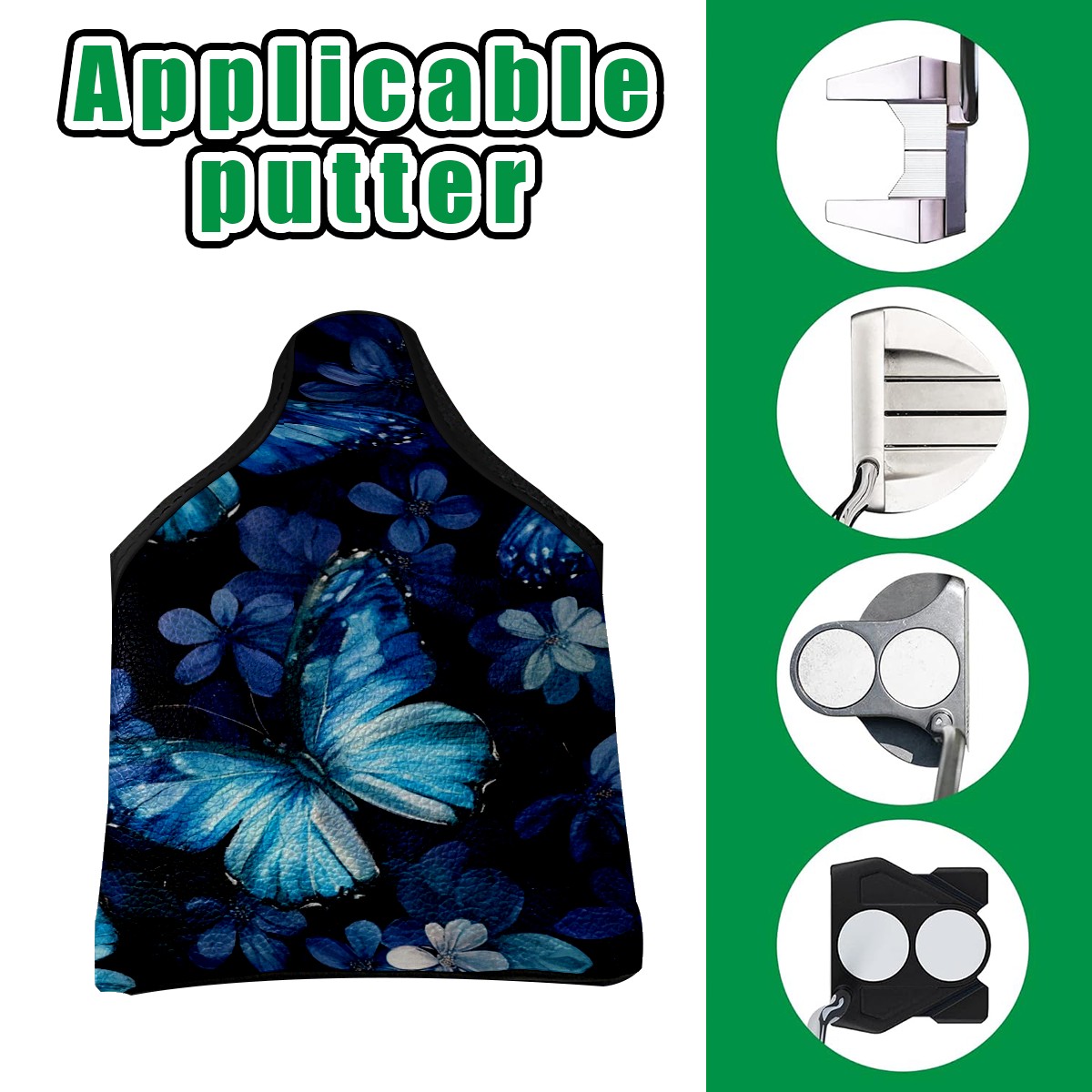 Golf Club Head Cover Golf Club Covers For driver club cover waterproof Head covers Fairway Wood Head Covers Golf Blade Mallet Putter CoverTurquoise Butterflies